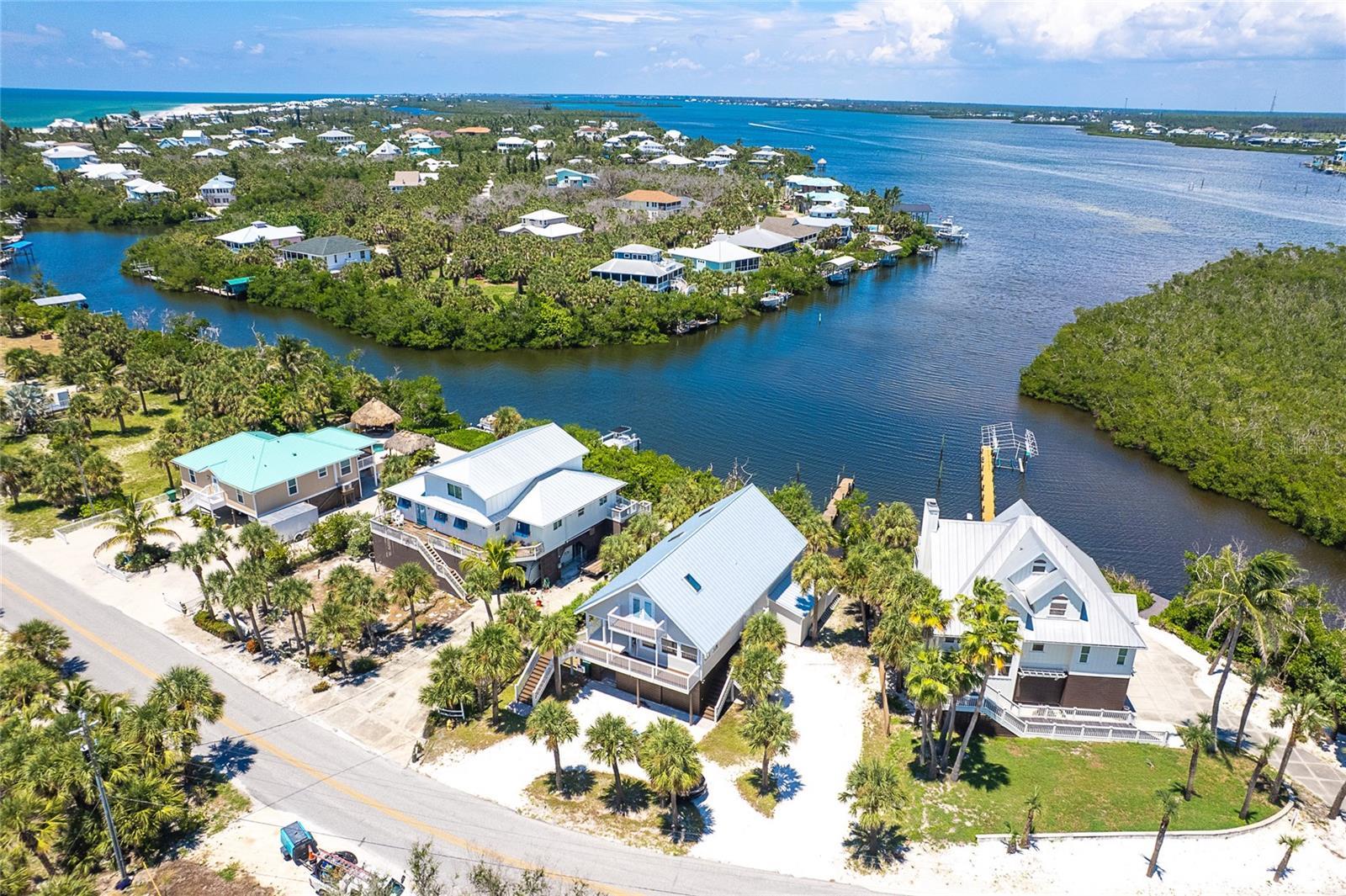 Totally renovated 3 bedroom 2 and 1/2 bath home with a spectacular water view and 3 minute access to the Intracoastal Waterway!!! Dock will allow a good size vessel and there is a boat ramp for launching a kayak. The updates include: new metal roof, flooring throughout, kitchen and bathrooms, air conditioning units, exterior paint, exterior decking and stairs, impact windows and doors, new appliances, fixtures and ceiling fans, ground level decks and storage areas......it is like a new home! There are decks off the front and rear of the home, where you can enjoy glorious sunsets. There are two primary bedrooms, one of each floor. Floor plan allows many areas for privacy and would be an excellent rental should you decide to rent. Located on Don Pedro-Knight-Palm island, a bridgeless barrier island situated between Ft. Myers/Naples to the south and Sarasota/Tampa to the north. Pristine and uncrowded beaches are the highlight, however, there are many other things to capture your attention; shelling and searching for shark's teeth, boating, paddle boarding, kayaking, fishing, observing the abundant wildlife, swimming and "golf carting" around the island. Buy your piece of paradise today to experience the peaceful island life!!!