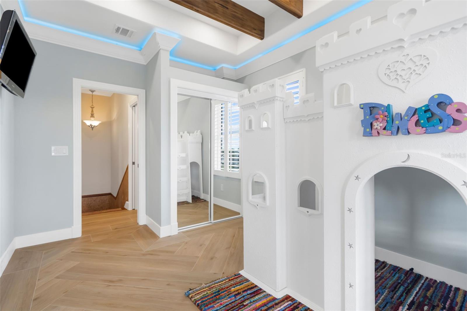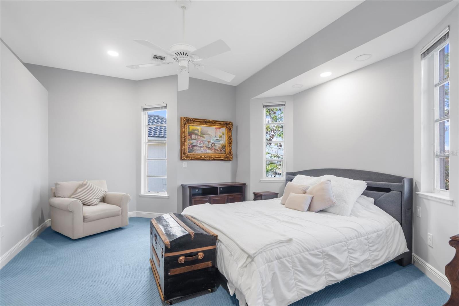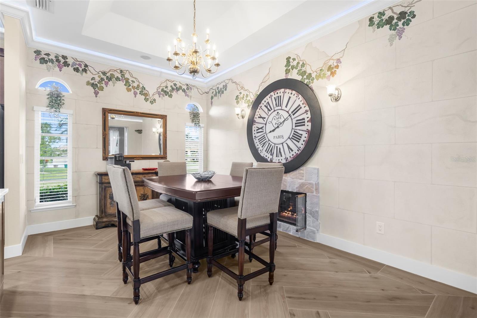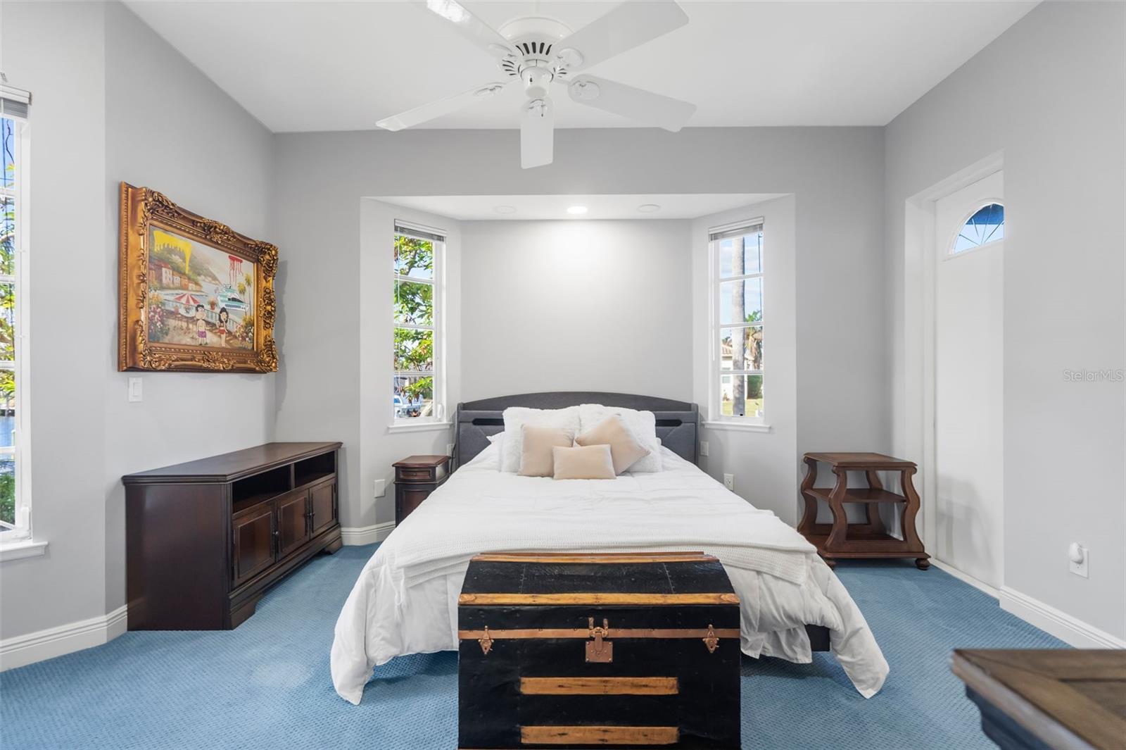 - Ceiling Fans(s), Central Vaccum, Chair Rail, Coffered Ceiling(s), Crown Molding, Eat-in Kitchen, High Ceilings, Kitchen/Family Room Combo, Living Room/Dining Room Combo, Open Floorplan, Primary Bedroom Main Floor, Solid Wood Cabinets, Stone Counters, Thermostat, Vaulted Ceiling(s), Walk-In Closet(s), Wet Bar