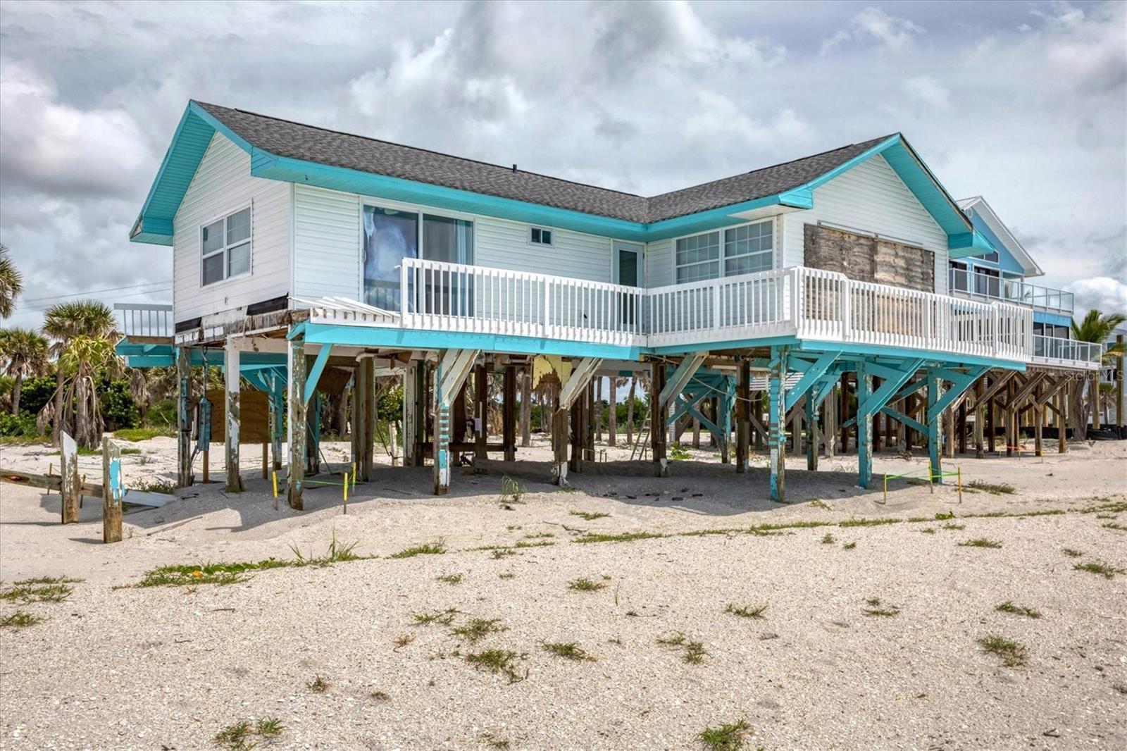 Gulf-to-Bay Opportunity on Don Pedro Island – Priced at Lot Value! Discover a rare Gulf-to-Bay property on the exclusive Don Pedro Island, a bridgeless barrier island nestled between Sarasota and Fort Myers. Accessible only by a short car ferry ride, this serene location offers the ultimate escape—where quiet beaches, unspoiled nature, and laid-back island living define your everyday. This unique property offers the best of both worlds: beachfront living on the Gulf of Mexico and a boater’s paradise on the bay side, with just two bridges to the Intracoastal Waterway and Gulf access beyond. The home sustained damage during the 2024 summer hurricanes and will require repairs. There is currently no electricity to the structure, and stairs need to be rebuilt. Buyer is responsible for determining the extent of restoration required. This is a lot value sale, making it an incredible opportunity for someone with vision to build or restore in a one-of-a-kind location. Whether you're looking to create a stunning new island retreat or restore a piece of Old Florida charm, this property is your chance to own a slice of paradise in one of the most peaceful and picturesque corners of Florida.