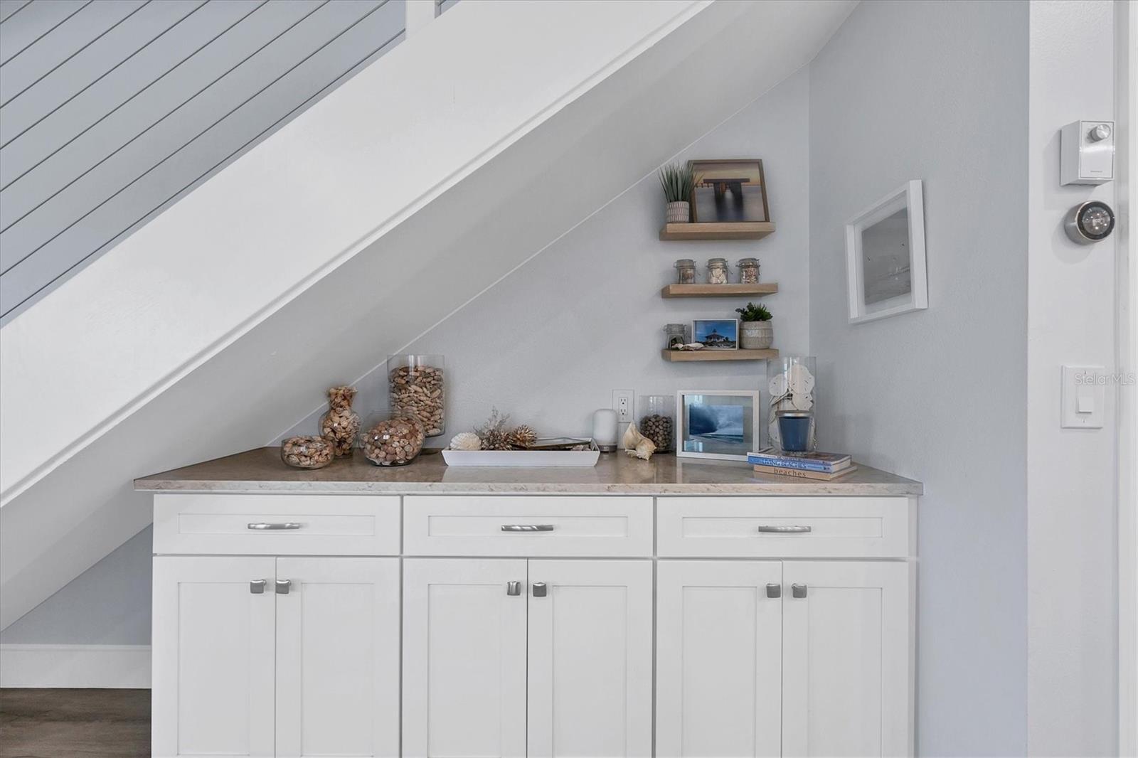 - Ceiling Fans(s), Dry Bar, Living Room/Dining Room Combo, Open Floorplan, PrimaryBedroom Upstairs, Solid Surface Counters, Thermostat, Walk-In Closet(s), Window Treatments