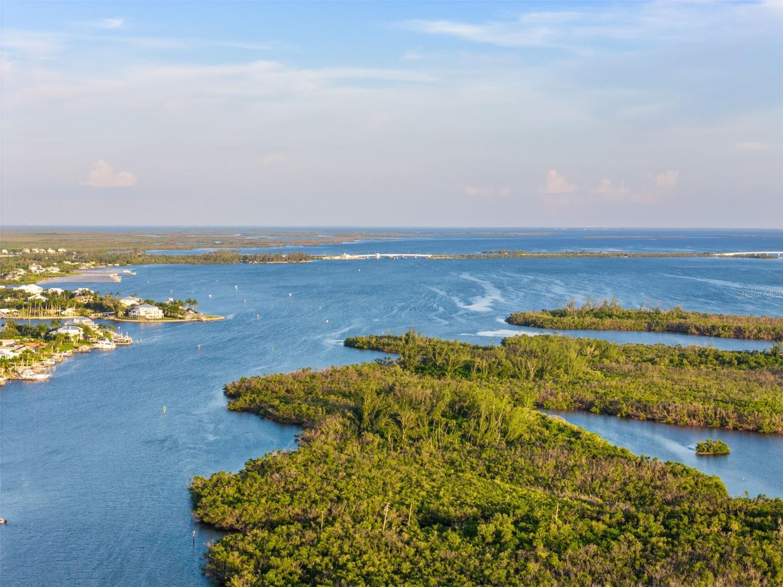 Built in 2020, this superbly crafted, luxury waterfront residence is perfectly positioned on 126 feet of prime Intracoastal Waterway frontage. Set on about .6 acres of impeccably landscaped grounds in the quiet Vanderbilt developed neighborhood of Cape Haze, with streets lined with towering banyan trees, the property enjoys a secluded old Florida setting. The residence offers the best of both worlds, with large vessel dockage at your back door and absolutely spectacular bay views, stretching to the Boca Grande bridge, Little Gasparilla Island and beyond. The nearly new home was built by an elite local builder, Jeb Bergeron Custom Homes. Designed and constructed to the highest coastal construction standards, with concrete tapered pilings, poured concrete beams, concrete block, thoroughly elevated, high-impact resistant windows and sliders, metal roofing, and a whole house generator provides lasting quality and more peace of mind. Inside the 4,241 total square foot home there's 3 bedrooms and 3.5 baths, each with a private en-suite, a grand open and elegant layout with light filled spaces, tall 11-foot+ vaulted beamed ceilings, that fully opens up and savors the mesmerizing nautical views. The chef's kitchen combines luxury and function with custom cabinetry, stone counter tops, a Wolf gas range, Sub-Zero refrigerator, and a beautifully crafted island. Other custom features include crown molding, case windows, solid core doors, beautifully tiled bathrooms, tankless gas water heater, premium plumbing and lighting fixtures. Outdoor living is equally impressive, with an immense screened second floor porch and ground level patio that run the entire length of the home. A stunning swimming pool and spa, paver patio and walkways, a large outdoor kitchen and bar, complete with a built-in gas grill, perfect for waterfront lounging and entertaining. An absolute boater's and fisherman's dream with world-class fishing waters and legendary boat destinations at your fingertips. Just a few steps to step onto your boat and within minutes be fishing for tarpon, back country or be in the Gulf headed for an offshore catch. Or take the guests on relaxing day trip adventures to an endless number of destinations including Boca Grande, Cabbage Key, Useppa, Captiva, Bokeelia, and Sanibel. The Cape Haze Property Owner's Association private dock and beach along with the Don Pedro Island State Park are just across the Waterway where gorgeous uninhabited beaches await.