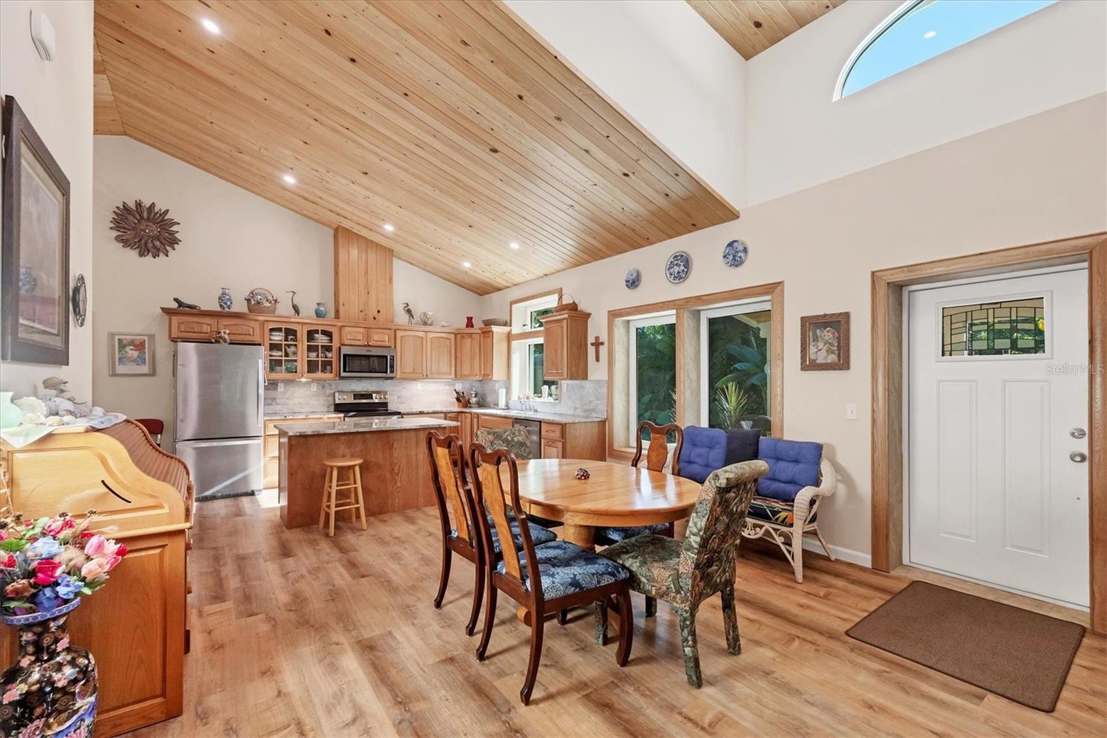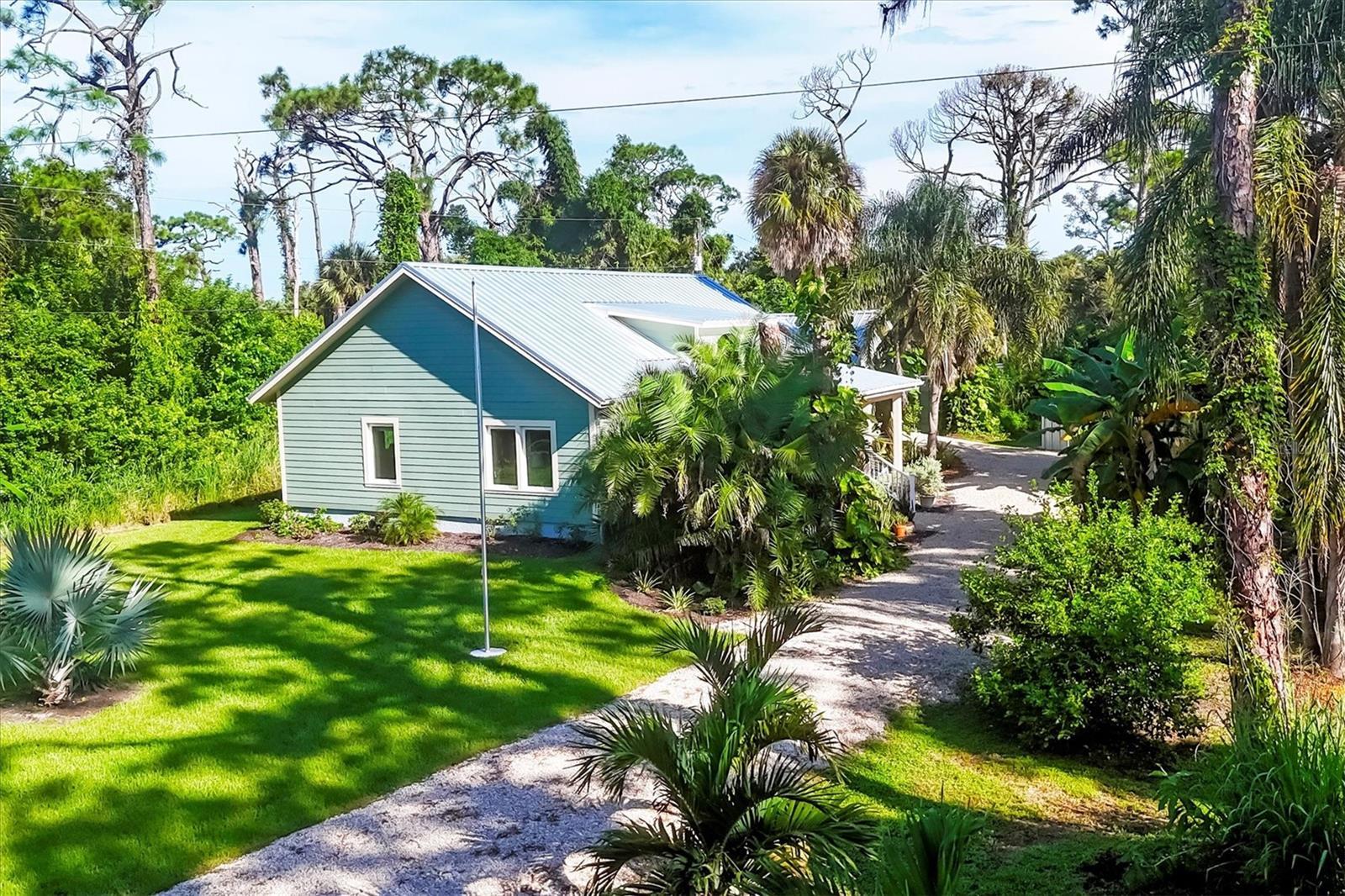 Modern Coastal Retreat in Artist Acres – Built 2023 on Oversized Lot with Deep Water Dock Access! Welcome to your private oasis in the heart of Englewood’s charming Artist Acres, just moments from Historic Dearborn Street, area beaches, golf, shopping, and top-rated dining. Built in 2023 on an oversized .37-acre lot, this stunning custom home offers modern design, Florida-resilient construction, and lush landscaping filled with tropical and edible plants. Deeded, private dock approx. 1 mile away, covered boat/RV parking and plenty of storage. Designed to withstand the elements, the home features ICF (Insulated Concrete Form) construction, Hardie cement siding, solid composite soffits/fascia and decking, a commercial-grade metal roof, and aluminum hurricane-rated impact windows and doors. Built on a stem wall and above base flood elevation, it offers peace of mind and low insurance premiums. Inside, enjoy a bright and open floor plan with luxury vinyl plank flooring throughout, high ceilings, and thoughtful custom details. The kitchen flows effortlessly into the living and dining areas, while a built-in office nook and a spacious laundry room add functionality. Ample storage (decorative shipping containers & pole barn) and smart design make this home as practical as it is beautiful. With no HOA and a peaceful, central location, this home is the perfect blend of Old Florida charm and modern luxury.