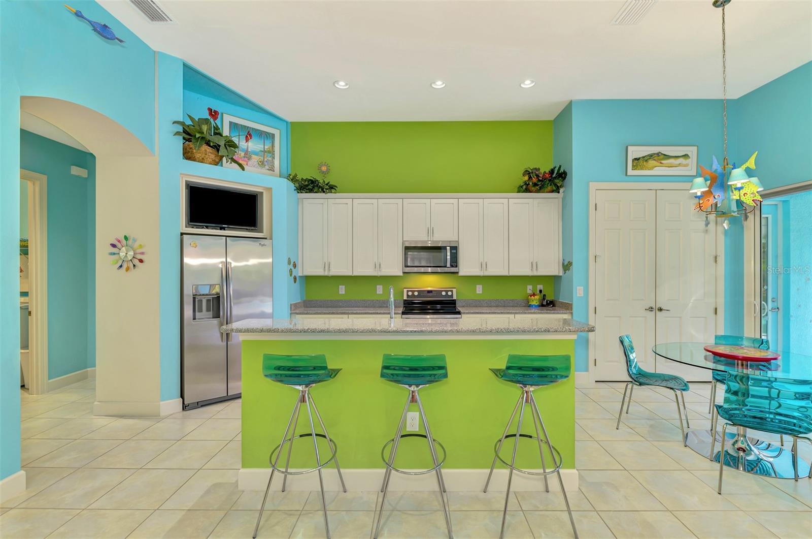 Welcome to Your Tropical Oasis! Step into a world of vibrant charm and perpetual vacation vibes with this stunning 4-bedroom, 3-bathroom Florida retreat. Perfectly blending fun and sophistication, this home is a one-of-a-kind masterpiece with unique Key West-inspired décor. Bright neon and coastal beachy colors create a joyful atmosphere, making every day feel like a getaway. Additionally, what truly sets this home apart is the peace of mind it provides—no storm shutters needed! The home is fully outfitted with certified, energy-efficient IMPACT WINDOWS throughout, offering superior protection, quieter interiors, and long-term value. The property also boasts a desirable extended 3-car garage, offering ample space for vehicles, storage, or even a workshop. Outside, lush, tropical landscaping envelops the home, providing unparalleled privacy and the ambiance of a secluded paradise. The meticulously designed gardens lead to an expansive screened lanai where you'll find the centerpiece of the outdoor living space: a heated pool and spa. Relax on the in-pool lounge chair platform and enjoy the soothing sounds of the cascading fountain and unwind in your own tropical haven. Inside, the home is as functional as it is stylish, offering a large great room open to the kitchen and motorized blinds. Recent valuable upgrades include a brand-new 2024 tile roof, and replaced air conditioner, water heater, dishwasher, and bedroom carpets. Designer furnishings, available for purchase, elevate the refined yet playful vibe, ensuring this home is move-in ready and ideal for entertaining. Whether hosting guests or seeking your own slice of happiness, this home is a perfect blend of relaxation and style—a true “happy place” sure to bring smiles and cherished memories for years to come. Call today to schedule your private showing and explore all the exceptional features of this estate home and the reputable Riverwood community!