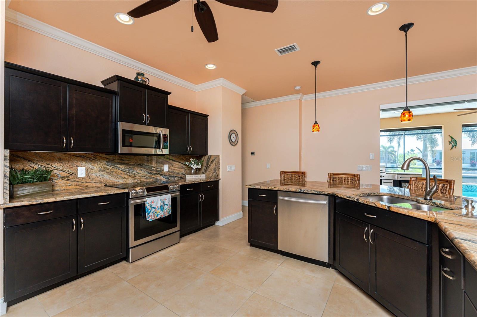 Motivated Seller.......Step into unparalleled luxury with this Gulf-access waterfront pool home in South Gulf Cove. Enter thru beautiful custom glass French doors to breathtaking south-facing canal and pool views with direct boating access to Charlotte Harbor and the Gulf of Mexico. The opulent interior truly captivates and offers a great entertaining space. Blue Stream high-speed fiber and transferable low-cost flood insurance are available. Offered partially furnished, the home features an open split floor plan with 3 bedrooms, 3 full bathrooms, including one with pool access, and a flex office/den with French doors. High tray ceilings, crown molding, abundant natural light, and Low-E hurricane-impact windows enhance the spacious feel. The chef’s kitchen with additional coffee/wet bar is designed for both function and elegance. It boasts Samsung stainless steel appliances, a massive angled island, granite countertops, solid wood soft-close cabinetry with Rev-A-Shelf swing-outs, copper prep sink, and a swing-up stand mixer shelf with outlet. A convection oven, fast-boil cooktop, dual timers, touch faucet, and 2024 refrigerator add convenience. The kitchen and living area flows seamlessly thru 4-panel sliding doors to the dual lania. The primary suite is a serene retreat with oversized slider to the pool, tray ceiling, and spa-inspired ensuite. The bathroom showcases dual vanities, a walk-through porcelain tile shower with dual showerheads and full-length granite bench, and a 6-foot light therapy spa tub with jets, bubbles, heater, Bluetooth, and chroma therapy. Enormous walk-in closet designed by Tailored Living with cabinetry, shelving, and drawers. Guest accommodations are equally impressive. Both large rooms provide walk-in closets and are separated by a full bath! One guest bedroom includes its own 3rd ensuite bath with pool access and slider to the lanai creating a private retreat. Outdoor living is a showstopper. A full-length pavered lanai with 2 seating areas, surround sound, recessed lighting, ceiling fans, and outlets overlook the heated pool with waterfall, sun shelf, removable child safety fence, and outdoor shower. The summer kitchen offers granite counters, hot water sink, grill, griddle, burners, refrigerator, freezer with ice maker, beverage cooler, and kegerator. A Fenced yard with pet door and seawall w/water and electric adds convenience. Many value-added upgrade enhancements give comfort and peace of mind: Electric roll-down storm shutters, generator transfer switch, whole-house water treatment with reverse osmosis in the kitchen/bar, new water heater, central vacuum, wood closet shelving, washer and dryer with steam, I-Wave C UV air purifier, surround sound, custom blinds and remote-control shades, Taexx in-wall pest control, Rainbird irrigation, Honeywell WiFi thermostat, and advanced wired security. Exterior enhancements continue the luxury theme with a 2023 designer concrete tile roof with solar vent fans, fresh paint, Simtek rock-face vinyl fencing, custom curbing and mature landscaping. The full 3-car garage offers built-in storage shelving and wash sink. The home is ideally located minutes from Boca Grande, Manasota Key multiple beautiful beaches, golf courses, restaurants, and entertainment. This is more than just a home—it’s luxurious waterfront living, blending indoor elegance with outdoor beauty in one of Florida’s most desirable boating communities.