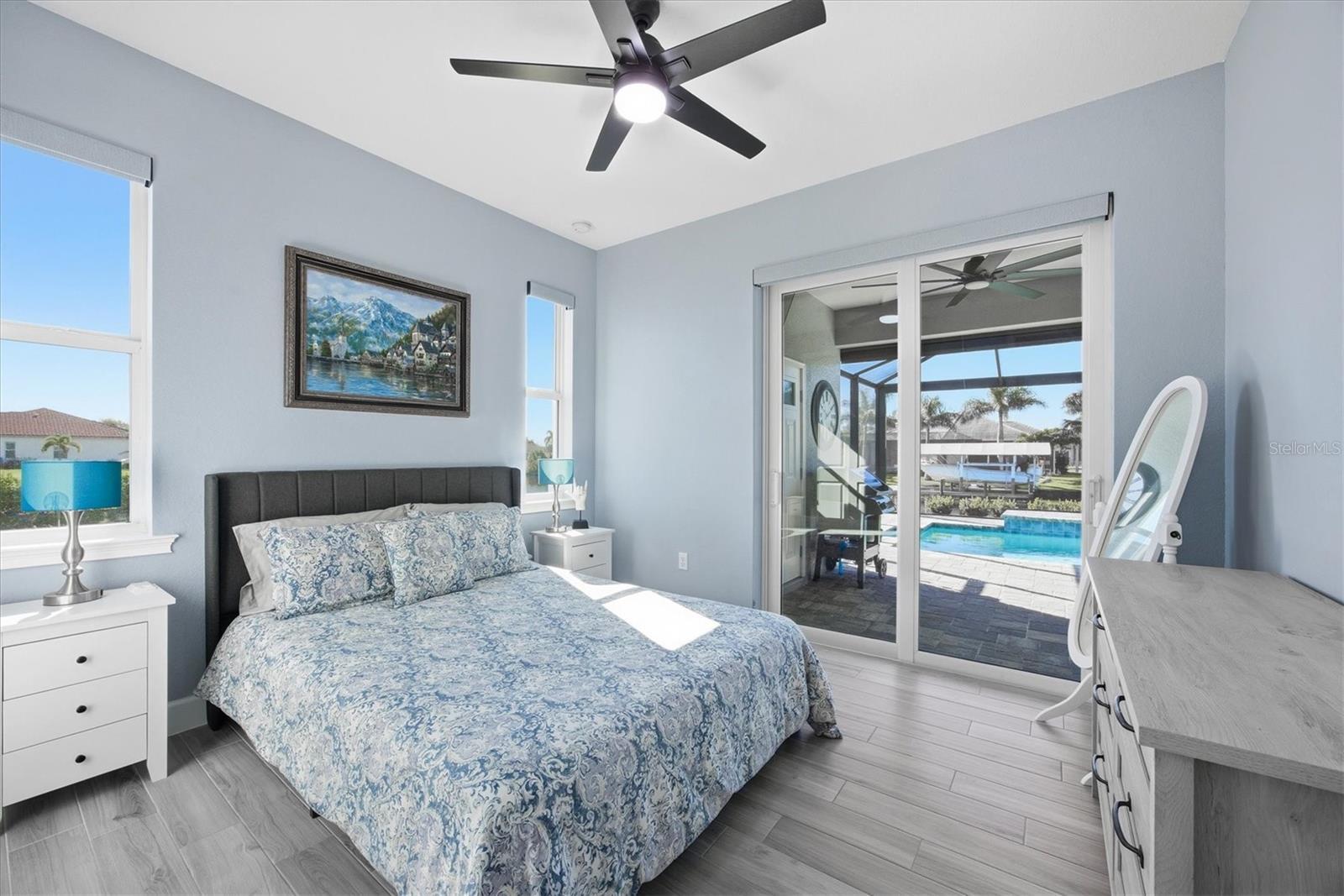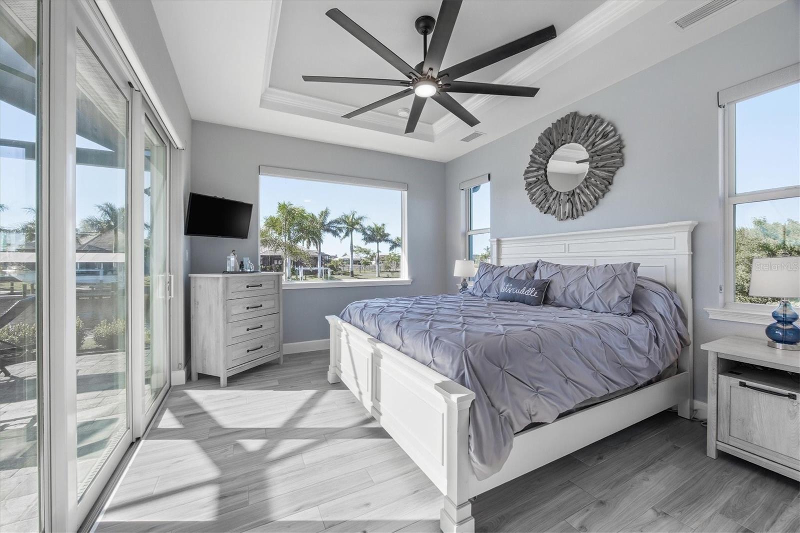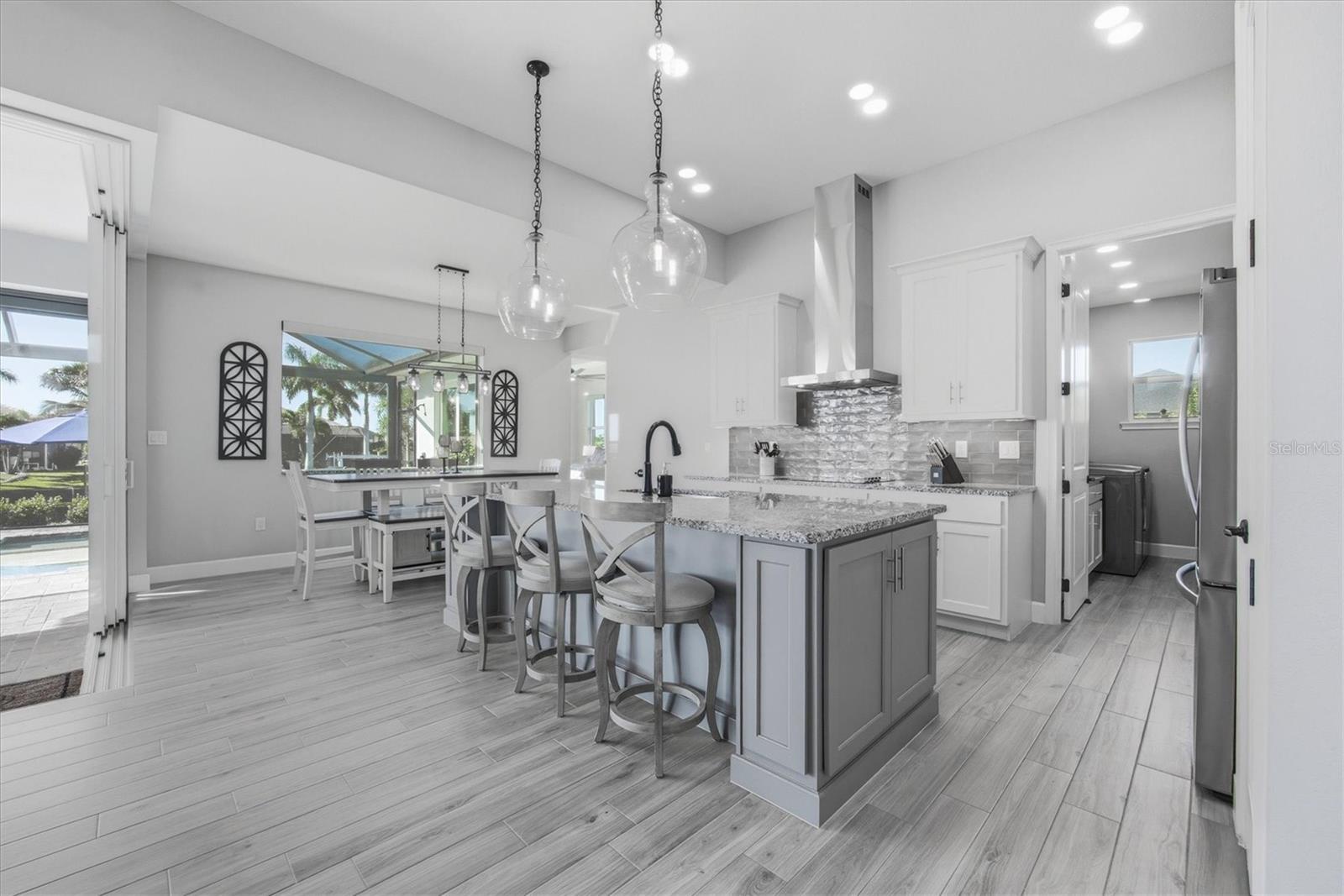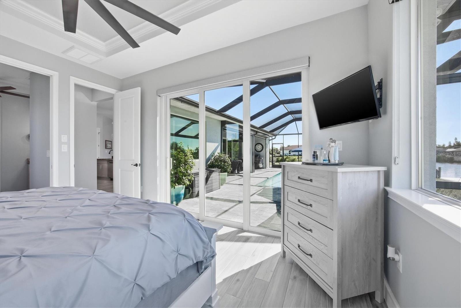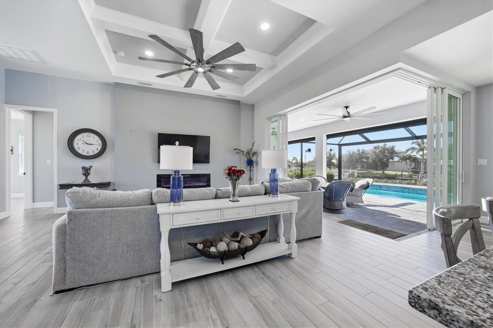 Double Waterfront Lot with 160ft of Seawall, 40ft Composite Dock, 10,000lb Boat Lift, Shed, Heated Pool, Impact Windows/Electric Roll Down Shutters, Custom-Built, and Fully Furnished! Welcome to your dream retreat in the sought-after waterfront community of South Gulf Cove! This fully furnished 3-bedroom + office, 2.5-bathroom home sits on a rare DOUBLE LOT combining elegance, comfort, and functionality. From the moment you arrive, you’re welcomed by lush landscaping and fresh sod that beautifully frame the impressive 160-foot property frontage. Step through the front door and be greeted by vaulted ceilings, stunning taupe plank tile flooring throughout, expansive 9-foot sliding glass doors, and an open living space featuring a cozy fireplace, all set against serene waterfront views. The chef’s kitchen is designed for both beauty and function, offering stone counters, custom soft-close cabinetry, stainless steel appliances, a large island with double-ended cabinetry, and a walk-in pantry. The dining room overlooks grand picture windows and opens seamlessly to the pool area through sliders, making entertaining effortless. The split floor plan ensures privacy for all. The primary suite is a peaceful retreat, featuring a large window overlooking the water, private sliders to the pool, and a spa-like bath with a stunning-tiled walk-in shower, dual vanities, and a spacious walk-in closet. Two additional bedrooms are filled with natural light and share a well-appointed guest bath. A dedicated office, finished laundry room, and oversized garage add convenience to everyday living. Outside, you’ll find a true Florida paradise. The pavered pool deck features a sparkling heated pool with a sun shelf and umbrella stand, a fountain, and ample space for lounging or entertaining. A poolside half bath makes outdoor living even easier. The secondary lot features a spotless 12x16 shed with a ramp, while a private sidewalk leads to the 8x40 dock, complete with water, electric, and a 10,000-pound boat lift. This setup is ideal for enjoying miles of canals with quick access to Charlotte Harbor, the Gulf of Mexico, and beyond. Located just minutes from sidewalks, a park, and beautiful walking paths, this home is within easy reach of world-class fishing, stunning beaches, pristine golf courses, shopping, and dining. Whether as a primary residence, seasonal escape, or turn-key investment, this waterfront home is the perfect blend of luxury and lifestyle.