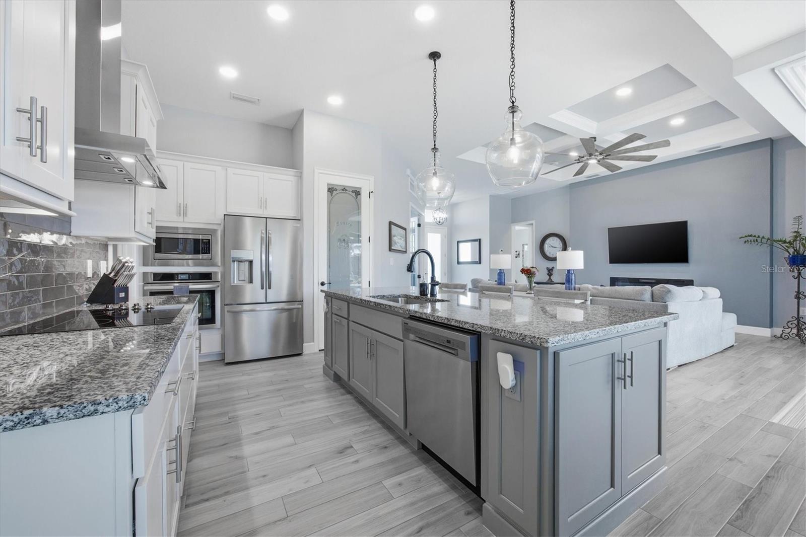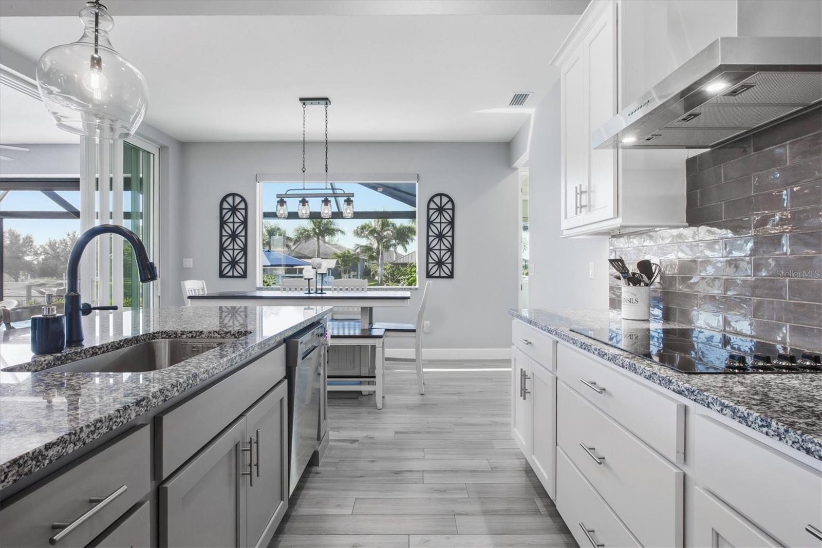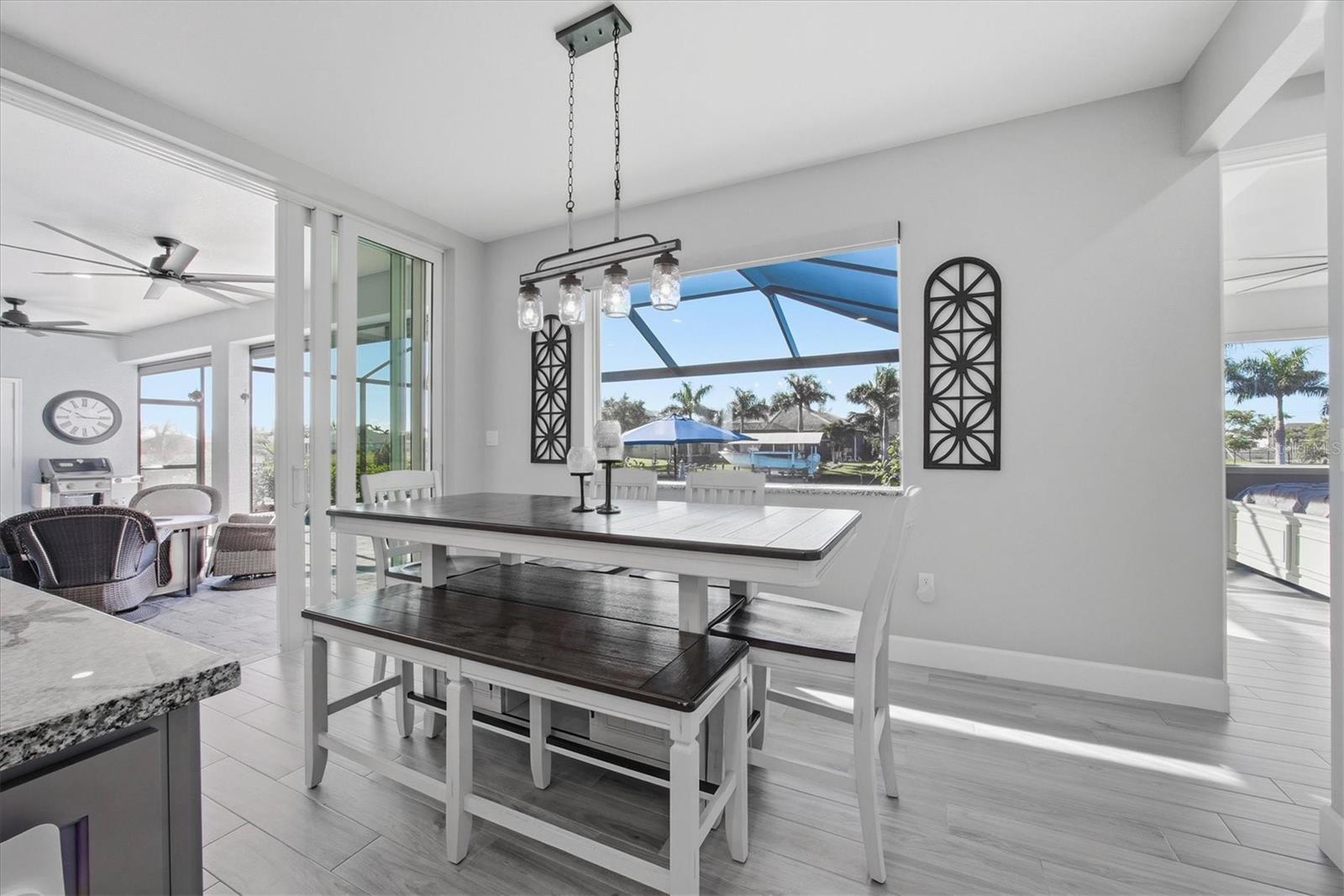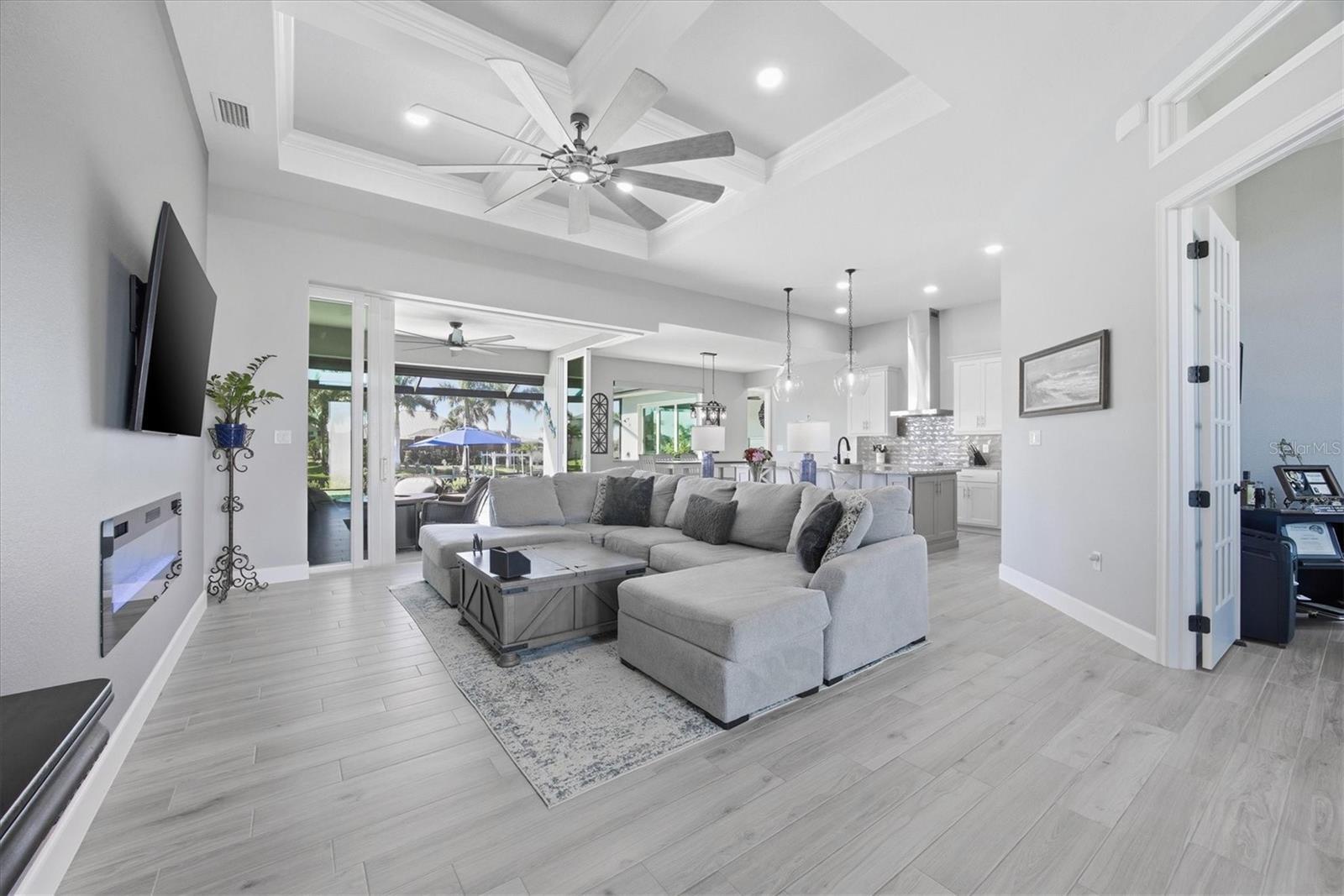 Double Waterfront Lot with 160ft of Seawall, 40ft Composite Dock, 10,000lb Boat Lift, Shed, Heated Pool, Impact Windows/Electric Roll Down Shutters, Custom-Built, and Fully Furnished! Welcome to your dream retreat in the sought-after waterfront community of South Gulf Cove! This fully furnished 3-bedroom + office, 2.5-bathroom home sits on a rare DOUBLE LOT combining elegance, comfort, and functionality. From the moment you arrive, you’re welcomed by lush landscaping and fresh sod that beautifully frame the impressive 160-foot property frontage. Step through the front door and be greeted by vaulted ceilings, stunning taupe plank tile flooring throughout, expansive 9-foot sliding glass doors, and an open living space featuring a cozy fireplace, all set against serene waterfront views. The chef’s kitchen is designed for both beauty and function, offering stone counters, custom soft-close cabinetry, stainless steel appliances, a large island with double-ended cabinetry, and a walk-in pantry. The dining room overlooks grand picture windows and opens seamlessly to the pool area through sliders, making entertaining effortless. The split floor plan ensures privacy for all. The primary suite is a peaceful retreat, featuring a large window overlooking the water, private sliders to the pool, and a spa-like bath with a stunning-tiled walk-in shower, dual vanities, and a spacious walk-in closet. Two additional bedrooms are filled with natural light and share a well-appointed guest bath. A dedicated office, finished laundry room, and oversized garage add convenience to everyday living. Outside, you’ll find a true Florida paradise. The pavered pool deck features a sparkling heated pool with a sun shelf and umbrella stand, a fountain, and ample space for lounging or entertaining. A poolside half bath makes outdoor living even easier. The secondary lot features a spotless 12x16 shed with a ramp, while a private sidewalk leads to the 8x40 dock, complete with water, electric, and a 10,000-pound boat lift. This setup is ideal for enjoying miles of canals with quick access to Charlotte Harbor, the Gulf of Mexico, and beyond. Located just minutes from sidewalks, a park, and beautiful walking paths, this home is within easy reach of world-class fishing, stunning beaches, pristine golf courses, shopping, and dining. Whether as a primary residence, seasonal escape, or turn-key investment, this waterfront home is the perfect blend of luxury and lifestyle.