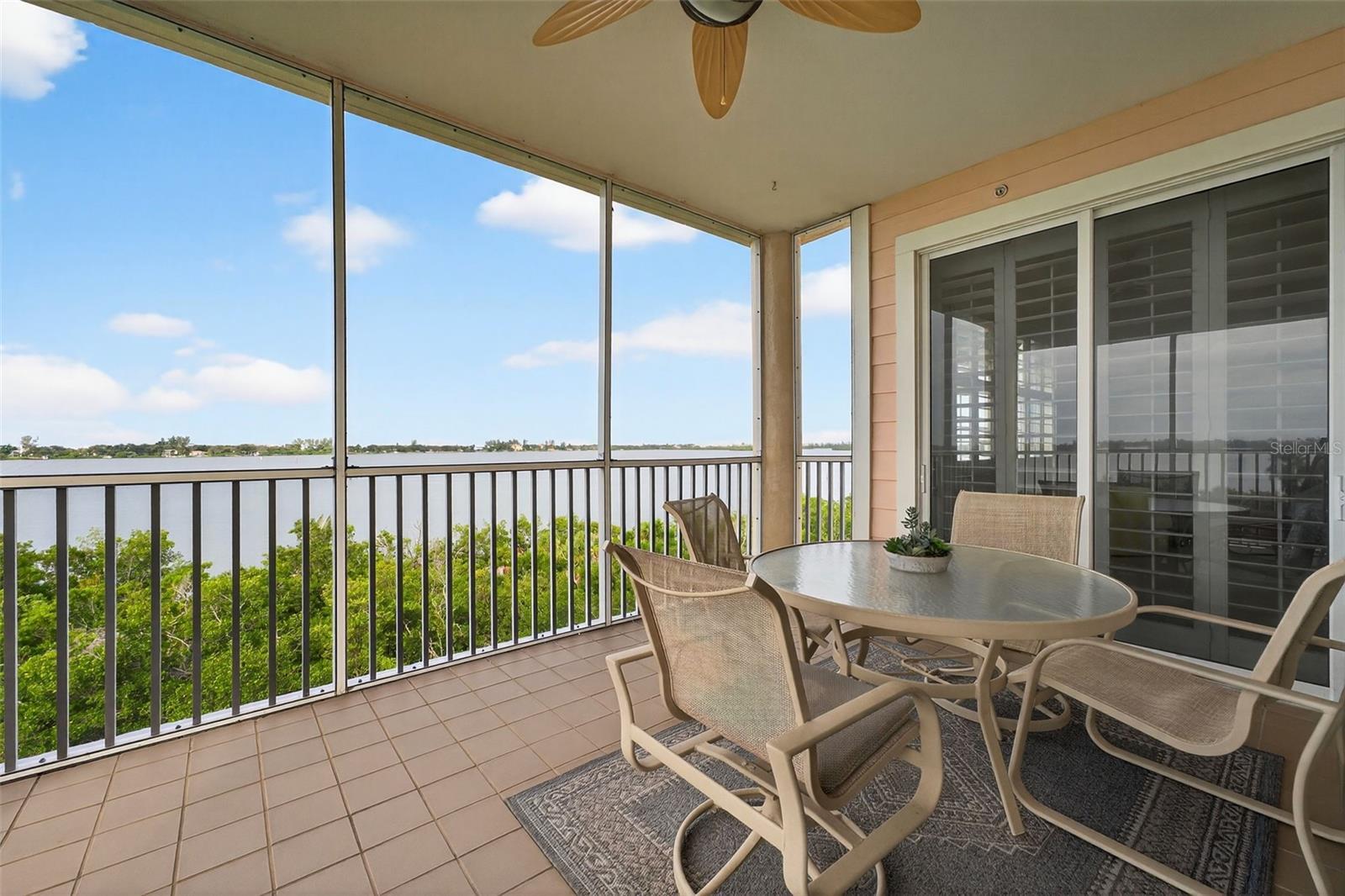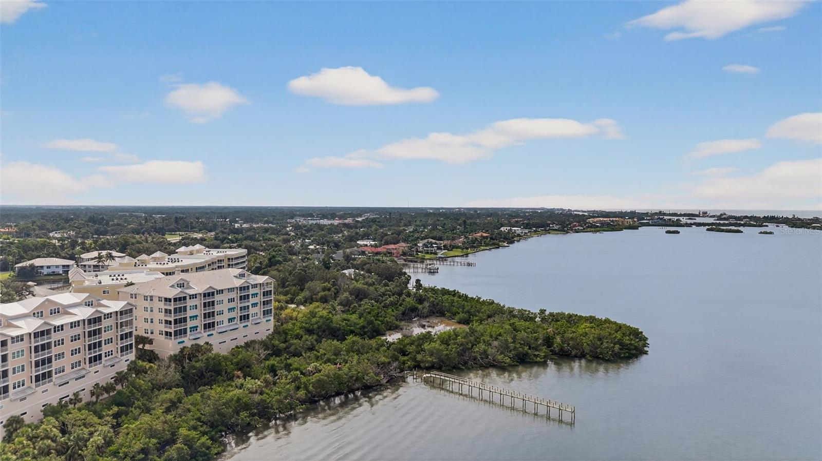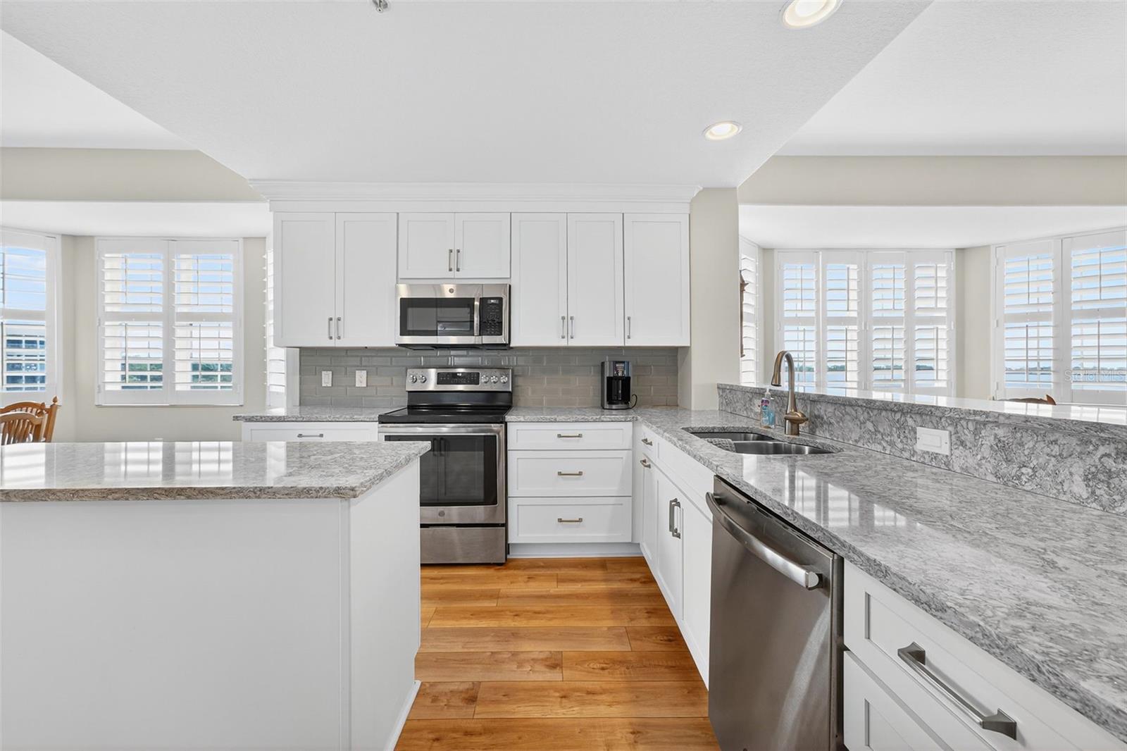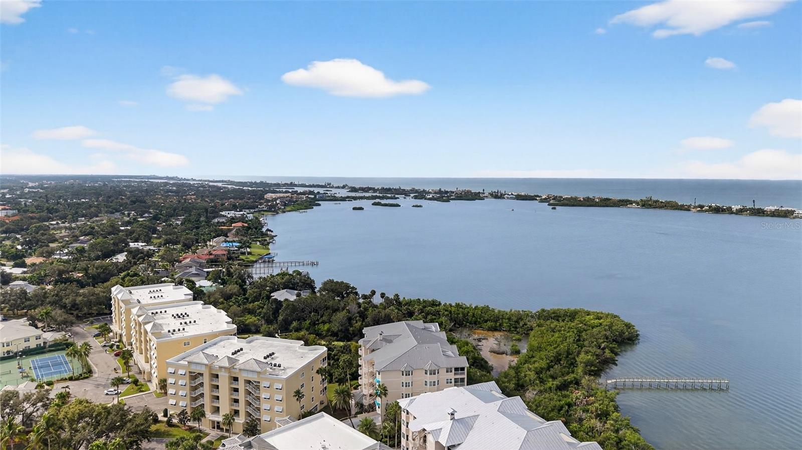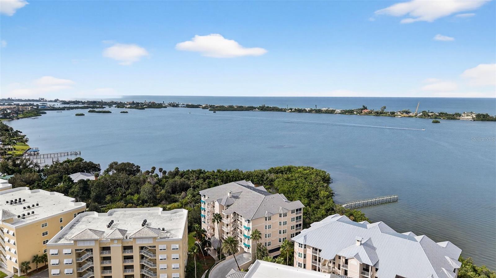 END UNIT with RARE THREE CAR GARAGE, IMPACT WINDOWS AND SLIDERS, and sweeping panoramic views. This beautifully appointed Baypointe Vista condo in Osprey blends comfort, style, and convenience, all set against the backdrop of the Intracoastal Waterway and Little Sarasota Bay. Natural light pours through wide water view windows, while plantation shutters throughout add timeless coastal charm and privacy. The gourmet kitchen offers white cabinetry, granite countertops, stainless steel appliances, and a spacious island perfect for entertaining with the bay as your backdrop. The open floor plan flows into the living and dining areas and onto the enclosed porch, where 180 degree views of Casey Key and the sparkling bay create a breathtaking focal point. Both oversized bedrooms are en suite with generous walk in closets. The primary suite features dual closets, tranquil water views, and a spa inspired bath with jetted tub, double vanity, and makeup counter. The guest suite has its own private entrance, walk in closet, and full bath. This residence is offered turnkey furnished and ready for immediate enjoyment. Additional highlights include luxury laminate floors, recessed lighting, a spacious laundry room with cabinetry and sink, impact windows and sliders, and the oversized three car garage which is a rare and valuable feature. Baypointe Vista is a gated resort style community with a pool, fitness center, tennis and pickleball courts, fishing pier, kayak launch and storage, tiki bar, and an active social calendar. HOA fees cover cable, internet, water, and sewer. Ideally located between Sarasota and Venice, you are just minutes from Gulf beaches, shopping, dining, golf, medical facilities, and Pine View School. Experience turnkey coastal living with panoramic water views, elegant plantation shutters, and the convenience of a rare three car garage and impact windows and sliders. Schedule your private showing today.