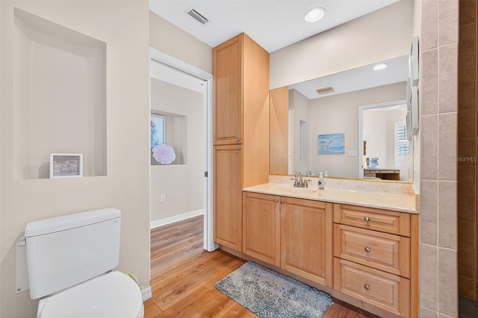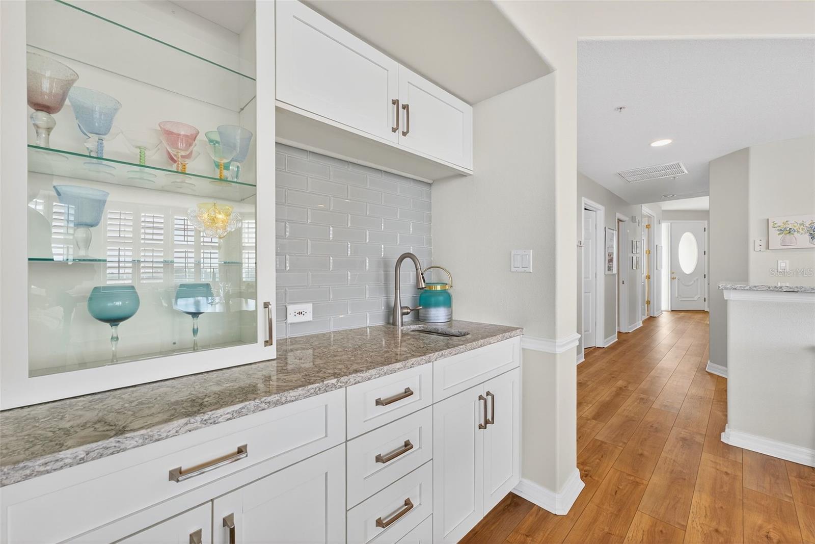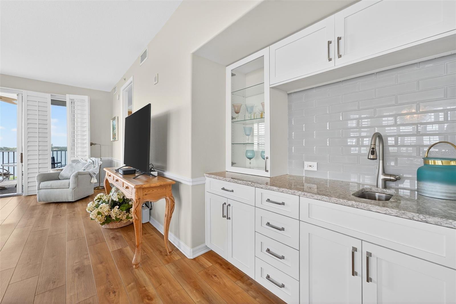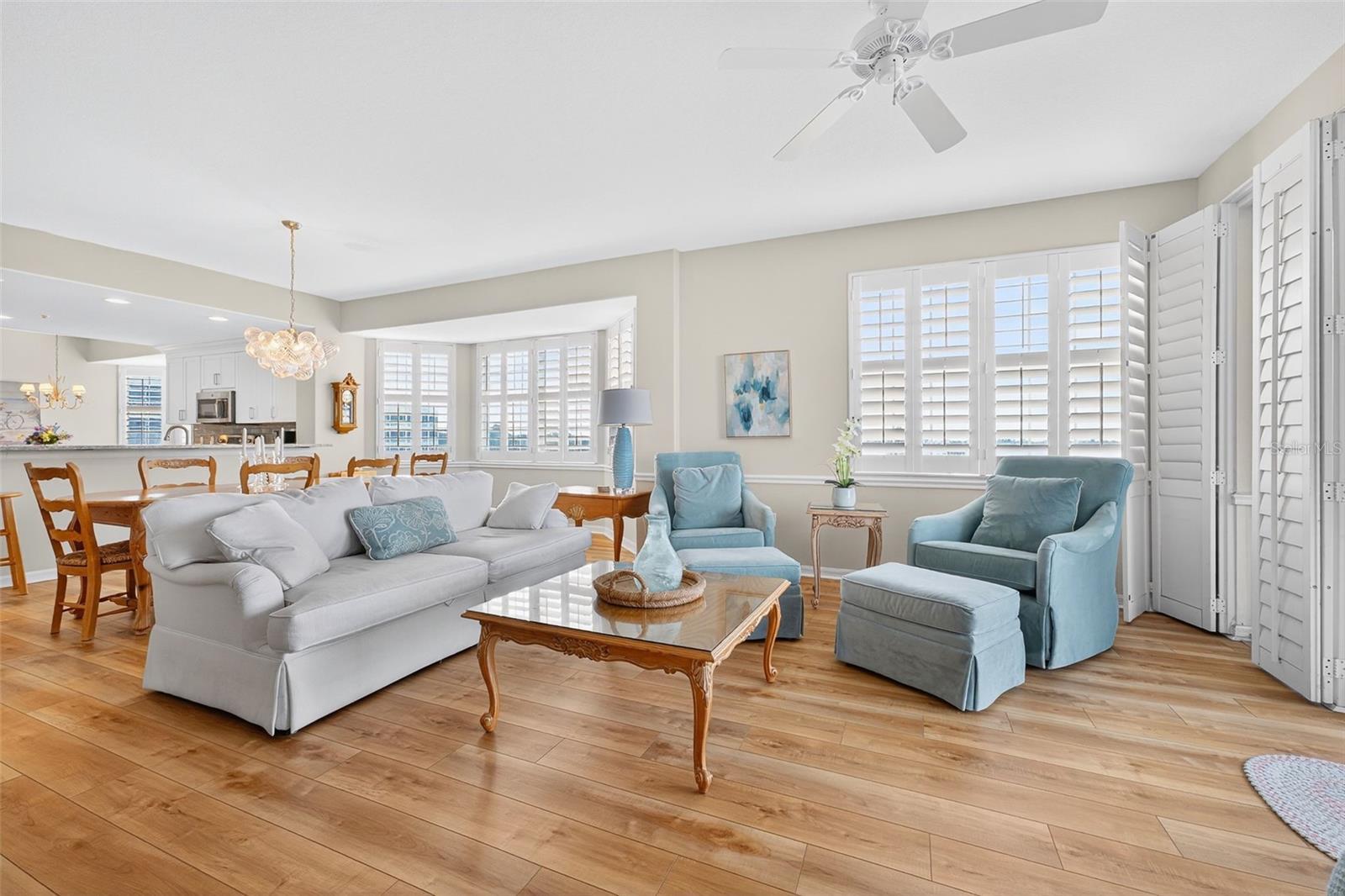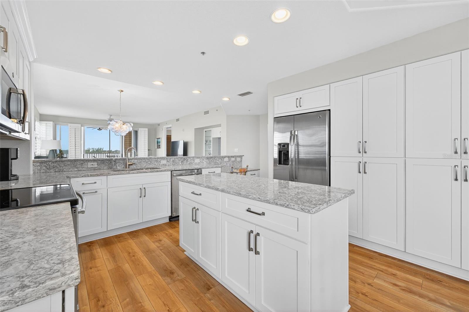 END UNIT with RARE THREE CAR GARAGE, IMPACT WINDOWS AND SLIDERS, and sweeping panoramic views. This beautifully appointed Baypointe Vista condo in Osprey blends comfort, style, and convenience, all set against the backdrop of the Intracoastal Waterway and Little Sarasota Bay. Natural light pours through wide water view windows, while plantation shutters throughout add timeless coastal charm and privacy. The gourmet kitchen offers white cabinetry, granite countertops, stainless steel appliances, and a spacious island perfect for entertaining with the bay as your backdrop. The open floor plan flows into the living and dining areas and onto the enclosed porch, where 180 degree views of Casey Key and the sparkling bay create a breathtaking focal point. Both oversized bedrooms are en suite with generous walk in closets. The primary suite features dual closets, tranquil water views, and a spa inspired bath with jetted tub, double vanity, and makeup counter. The guest suite has its own private entrance, walk in closet, and full bath. This residence is offered turnkey furnished and ready for immediate enjoyment. Additional highlights include luxury laminate floors, recessed lighting, a spacious laundry room with cabinetry and sink, impact windows and sliders, and the oversized three car garage which is a rare and valuable feature. Baypointe Vista is a gated resort style community with a pool, fitness center, tennis and pickleball courts, fishing pier, kayak launch and storage, tiki bar, and an active social calendar. HOA fees cover cable, internet, water, and sewer. Ideally located between Sarasota and Venice, you are just minutes from Gulf beaches, shopping, dining, golf, medical facilities, and Pine View School. Experience turnkey coastal living with panoramic water views, elegant plantation shutters, and the convenience of a rare three car garage and impact windows and sliders. Schedule your private showing today.