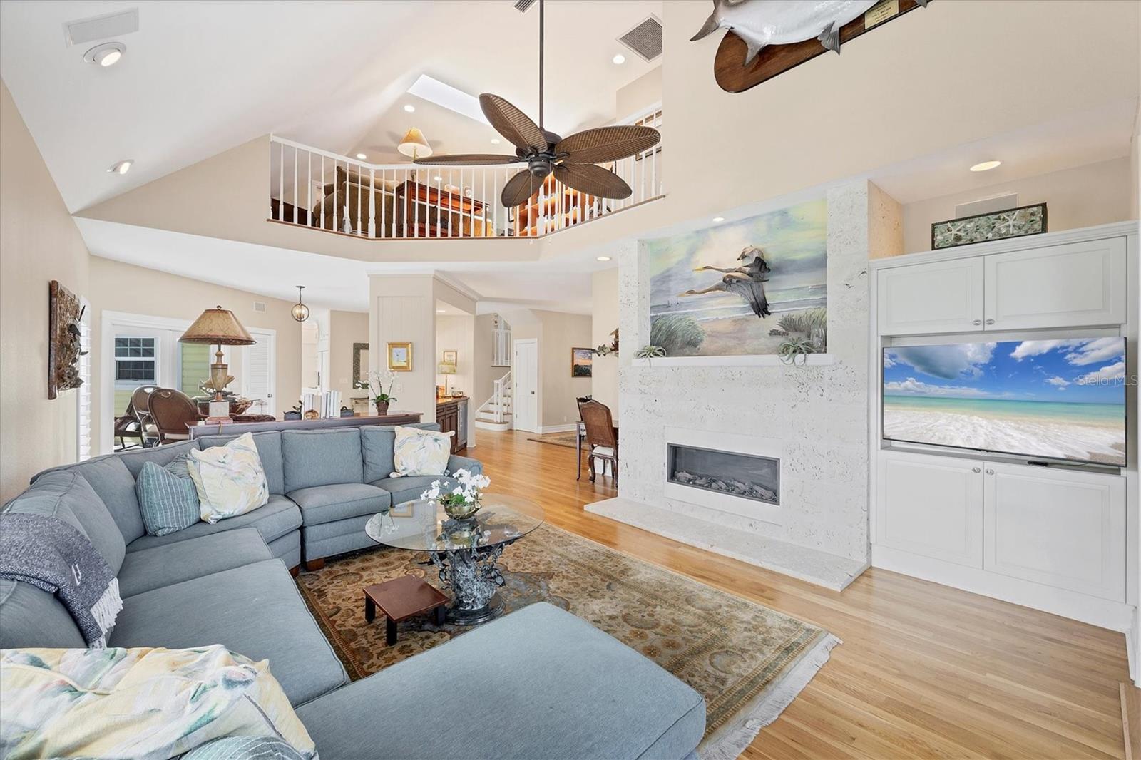 Nestled in the exclusive gated community of Boca Bay's North Village, this stunning 3-bedroom, 3-bathroom home offers over 3,200 square feet of beautifully updated living space with breathtaking lake views. Thoughtfully designed with high-end finishes and modern upgrades, this home is perfect for those seeking both luxury and comfort. The renovated chef’s kitchen is a showpiece, featuring quartz countertops, a shiplap ceiling, Thermador appliances (oven, microwave, and gas stove), a WiFi-enabled Monogram refrigerator, and a built-in ice machine. An eat-in dining area provides a warm and inviting space. The living room impresses with vaulted ceilings, an eye-catching fireplace, and a built-in bar, all enhanced by Sonos surround sound throughout, creating an ideal setting for entertaining or unwinding. Hurricane-impact windows and doors, a newer standing seam metal roof, and plantation shutters throughout provide both elegance and peace of mind. The primary suite is a private retreat, featuring French oak engineered wood flooring, a spacious loft/living area with a private office, and a spa-inspired bathroom with a copper tub and sophisticated accents. Each bathroom has been beautifully updated, adding to the home’s refined feel. Designed for seamless indoor-outdoor living, the expansive lanai offers breathtaking lake views, making it the perfect place to enjoy your morning coffee or entertain guests. A private outdoor shower adds a touch of island charm, while a Zen garden off the dining room enhances the home’s peaceful ambiance. As a resident of Boca Bay, you’ll have access to exclusive world-class amenities, including a private boat basin with slips, a croquet sports field, Har-Tru tennis courts, and four swimming pools, including a lap pool. The Gulf-front Beach Club offers a premier venue for private events, while the community fishing pier provides a serene waterfront escape. Additionally, members have access to the prestigious Pass Club, featuring exceptional dining and social opportunities in an unparalleled waterfront setting. This is a rare opportunity to own a luxurious lakefront home in one of Boca Grande’s most coveted communities. Schedule your private showing today!
