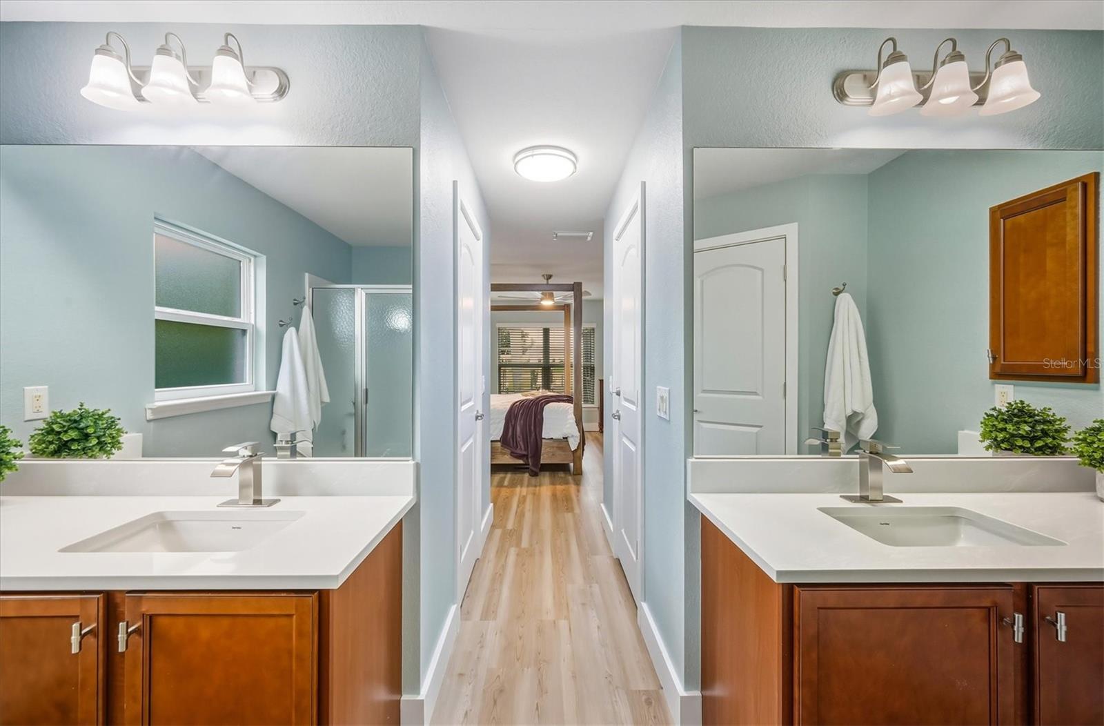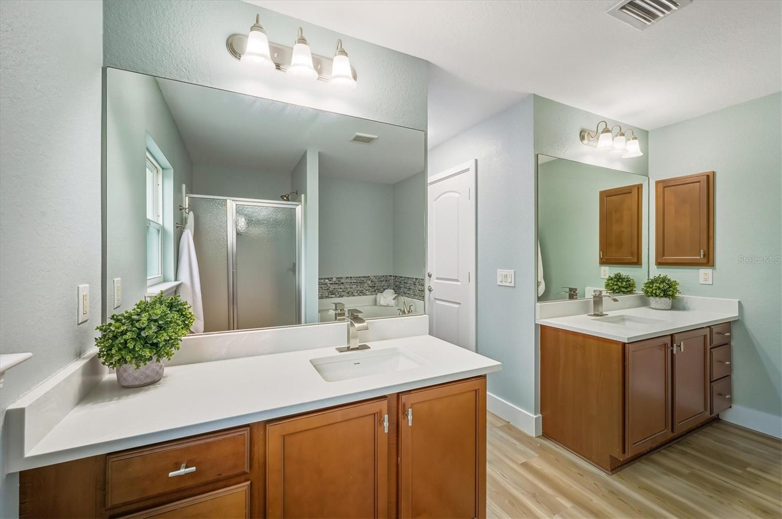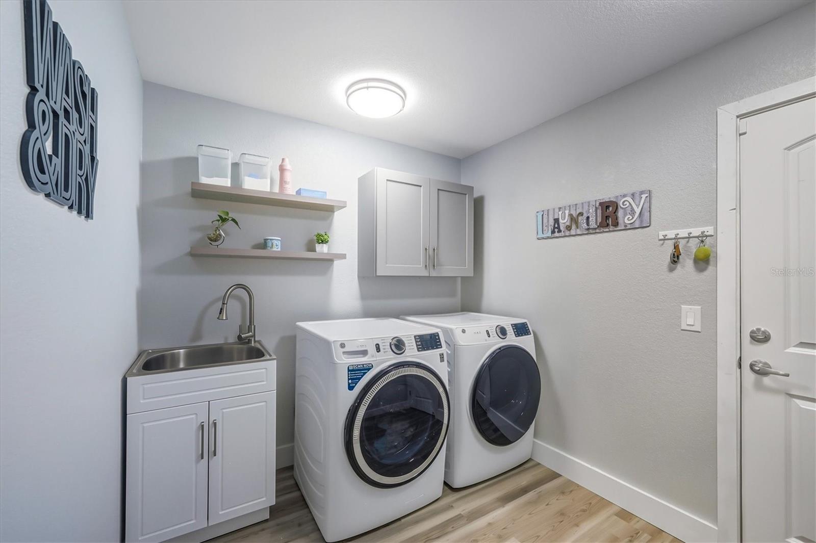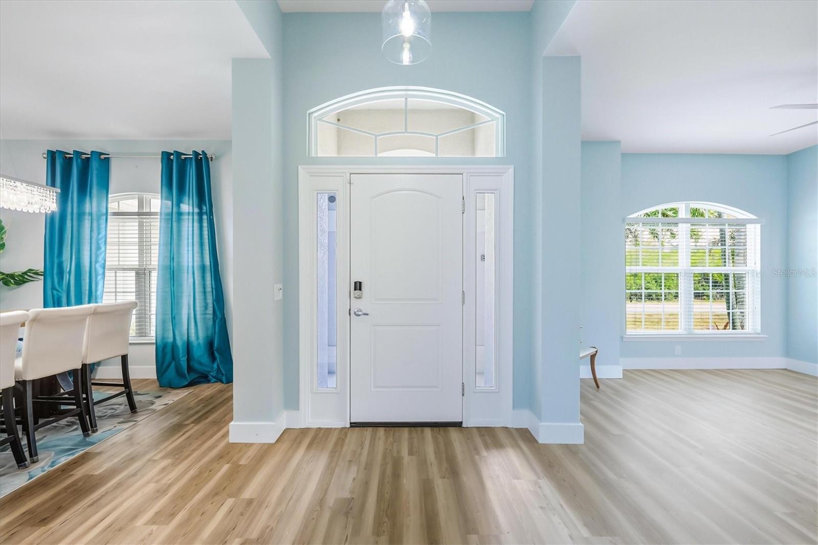Completely reimagined and meticulously renovated, this waterfront residence presents as an entirely new home, where refined design, modern finishes, and serene canal views come together to create an exceptional coastal retreat. Significant improvements include a new roof (2023), fresh interior paint throughout, and luxury vinyl plank flooring installed in 2025. The screened lanai features a new pool enclosure, while the expanded laundry room offers a utility sink and direct access to the two-car garage, adding both function and convenience. The kitchen stands as a striking focal point of the home, curated for both everyday living and elevated entertaining. It features new upgraded cabinetry, all-new appliances (2025), and a dramatic oversized quartz island measuring approximately 15 feet by 4.5 feet. A statement Lefton multi-function sink with custom water controls adds a refined touch. Gas cooking is supported by an on-site propane tank and a pot filler above the range. Hidden behind a sliding barn door, a striking custom pantry wall features expansive shelving and curated lighting, thoughtfully designed to reveal a concealed coffee bar, an elevated detail that speaks to craftsmanship and intention. Upon entry, canal views set an immediate sense of calm and connection to the outdoors. Just off the foyer, a formal dining area is accented by a statement chandelier, while a custom bonus room on the opposite side features a floor-to-ceiling built-in library wall with a rolling ladder, an exceptional space for a private office, study, or flex room. An additional room located near the pantry and laundry offers further versatility as a guest room or secondary office. The living area anchors the center of the home, framed by expansive windows that overlook the lanai and water beyond. At the rear of the residence, two guest bedrooms and a shared bath are positioned on one side, while the primary suite enjoys privacy on the other. The shared bath has been fully renovated, featuring new quartz countertops and updated sinks. The primary bedroom offers direct lanai access, dual walk-in closets, and a fully renovated en suite bath showcasing new vanities, sinks, quartz countertops, updated lighting, and new flooring. Outdoor living is equally compelling, featuring a heated pool with attached spa. Beyond the screened lanai, a composite dock with electricity, pre-wired for a boat lift, extends along the canal and includes a flagpole and canal-fed irrigation system. This is a rare opportunity to own a meticulously renovated waterfront home where the most significant upgrades have already been completed, offering refined interiors, thoughtful design, and an exceptional outdoor lifestyle.