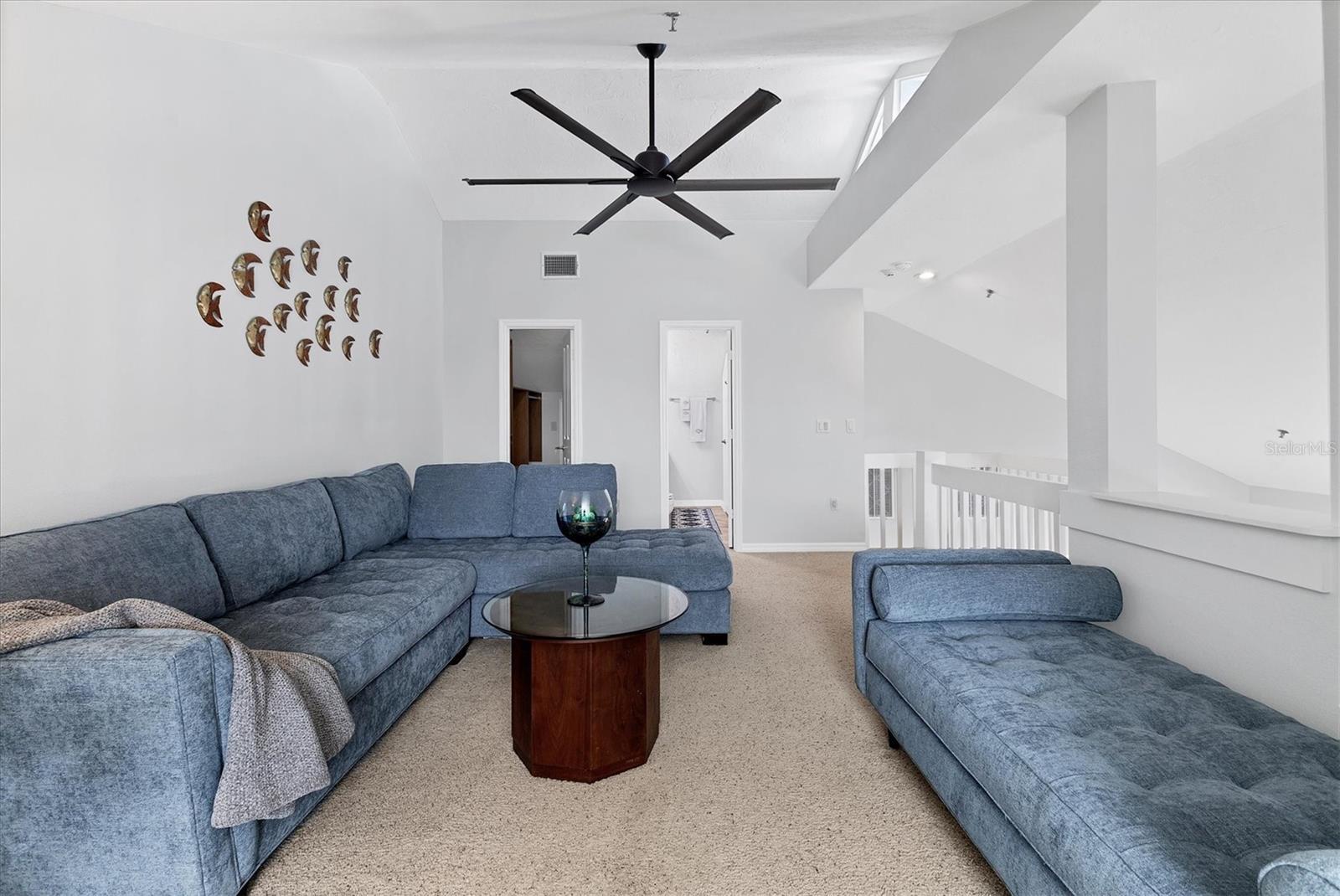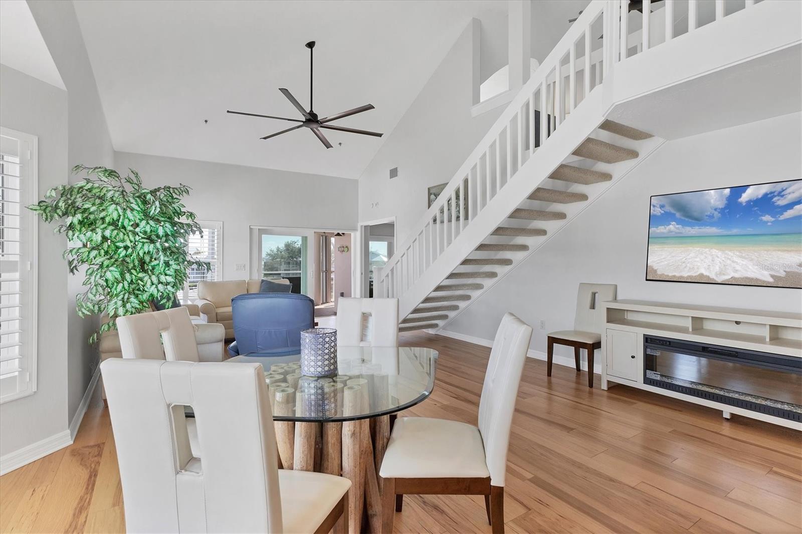 - Cathedral Ceiling(s), Ceiling Fans(s), Eat-in Kitchen, High Ceilings, Living Room/Dining Room Combo, Primary Bedroom Main Floor, Stone Counters, Walk-In Closet(s)