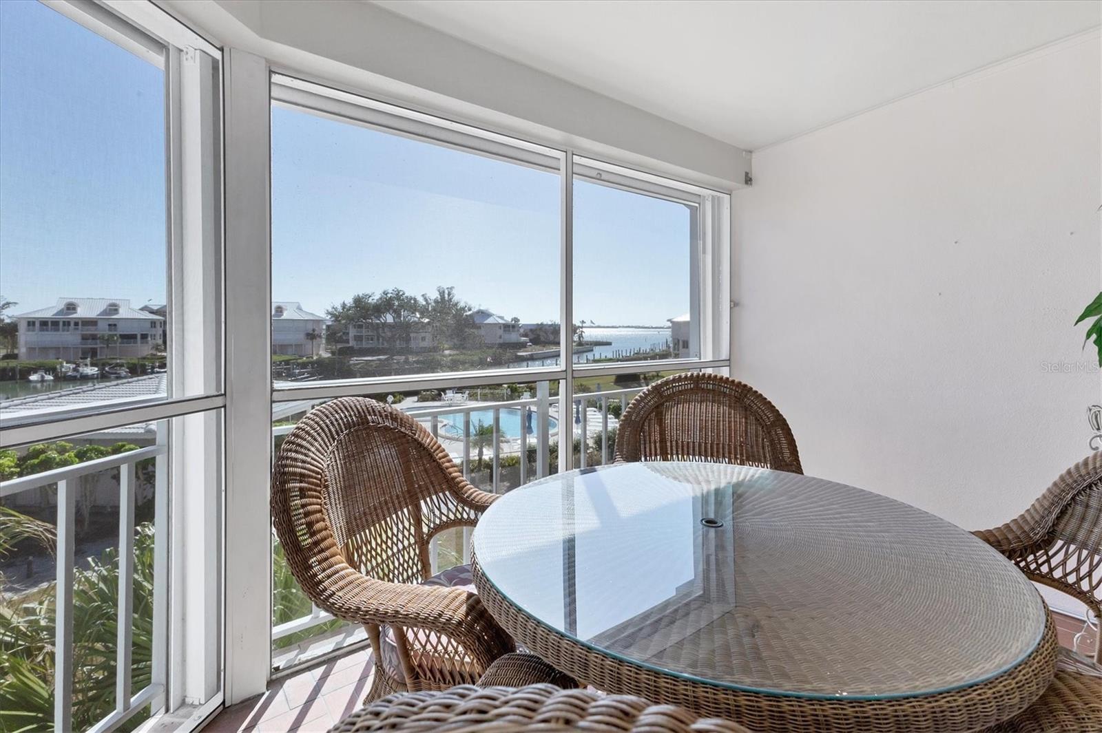 Resort living in comfortable luxury with on-site marina plus beach access provided by a private ferry! This 3-bedroom 3-full bath waterfront condominium in the Placida Harbour Club has 18’ tile in the foyer and entry, wood floors and volume ceilings in the main living areas, and two bedrooms with two full baths. A large loft on the second level has an alcove area, closet, and full private bath, serving as an ideal space for a third bedroom, office or den. This top floor end unit is in a building with only 4 units and has elevator access. The large two car garage has added space for a golf cart or boat trailer plus enclosed locked storage. All hurricane impact windows throughout and electric roll down shutters on the water facing screened lanai plus a brand-new metal roof and air conditioner, both in 2024! The kitchen is open to the dining and living area with lots of natural light from the bay windows. Granite countertops with wine refrigerator and lots of cabinet space including a pantry. All bathrooms have been tastefully renovated with granite countertops and beautifully tiled showers. Watch the manatees who live in the Harbour with ICW views from the large screened and tiled lanai. The marina is on site and in the process of a major renovation with new seawall, docks, electric and dredging. Plans are available to view. There are three pools, tennis and pickleball courts, hot tub, fully equipped fitness center and a clubhouse which is available for special events to owners and their guests. What sets Placida Harbour amenities apart is the ferry to a private beach with day docks and a pool on Little Gasparilla Island. Truly a resort style community! Freshly painted inside as well as the exterior, plus the entire community is in the process of all new landscaping being installed, roads being paved and new and improved gate system for easy and safe access for you and your guests. Offered furnished.