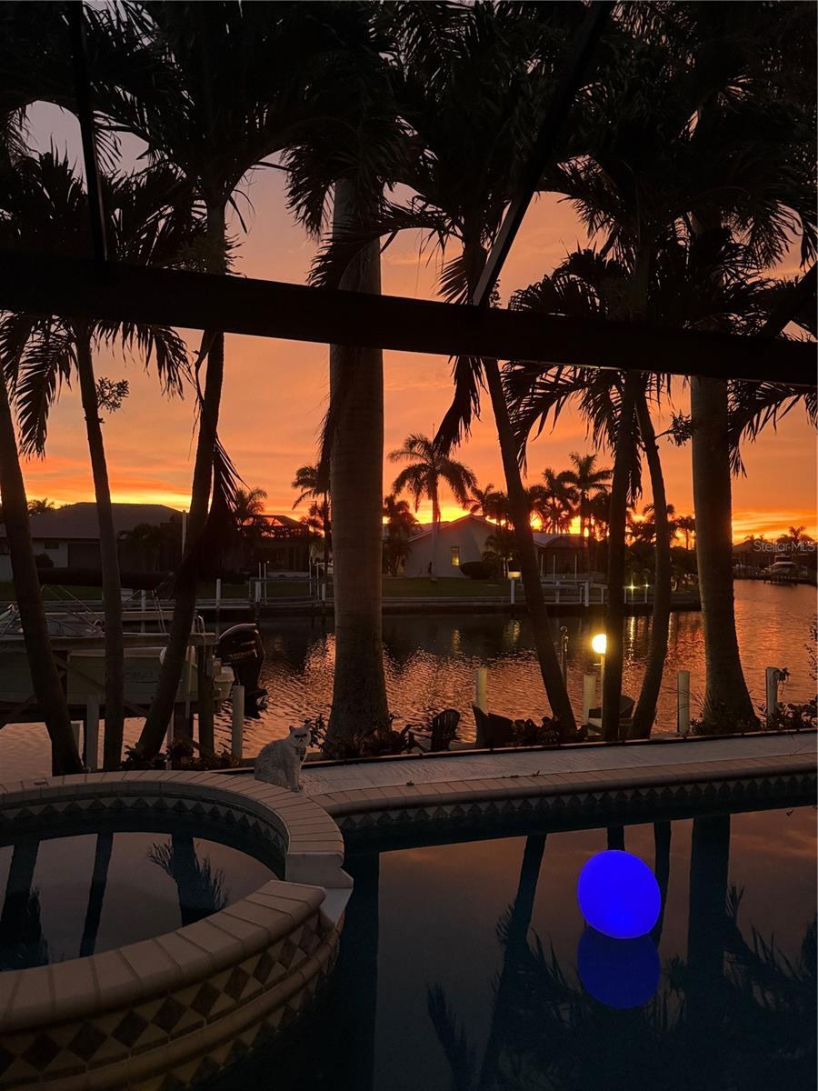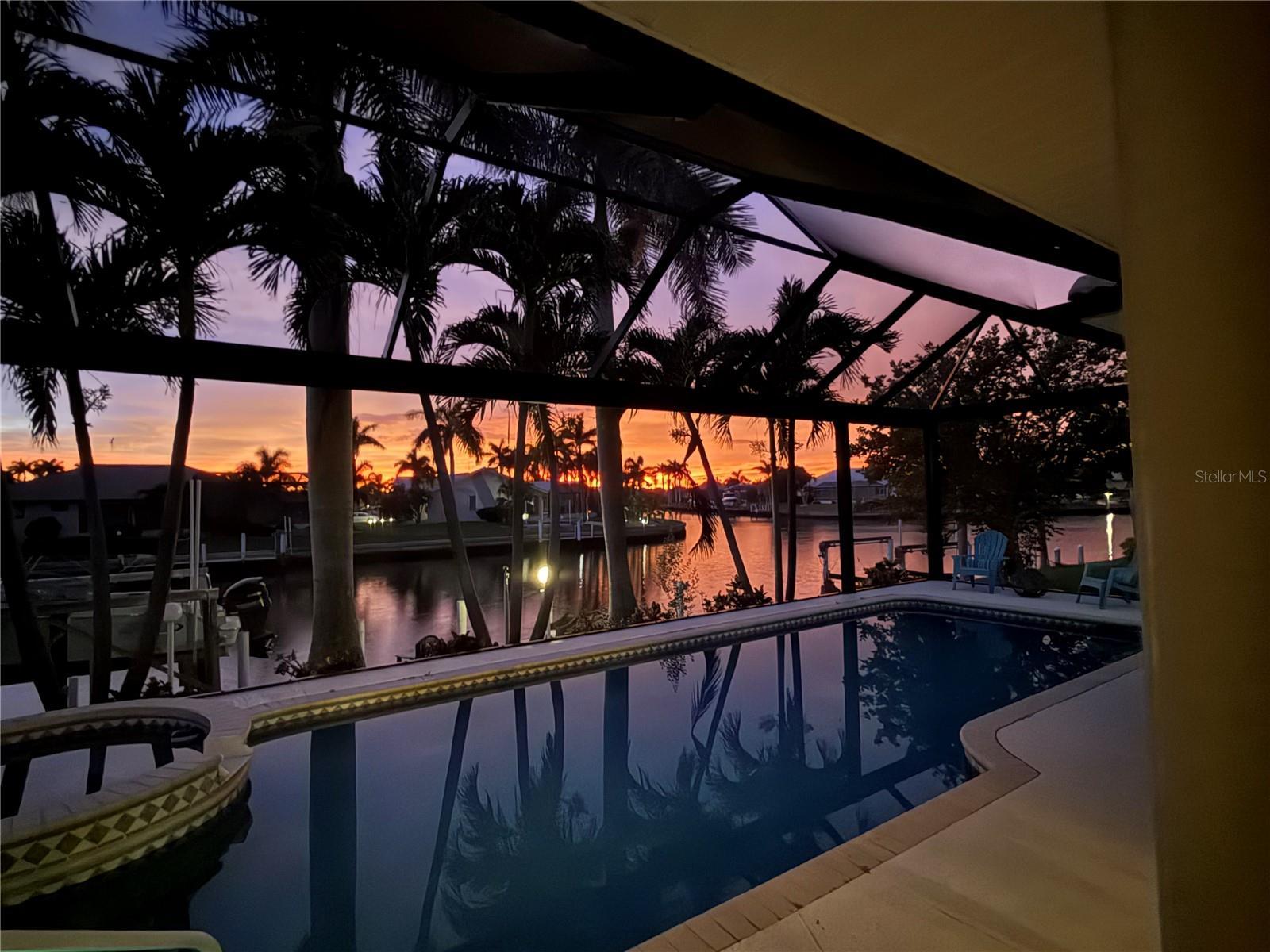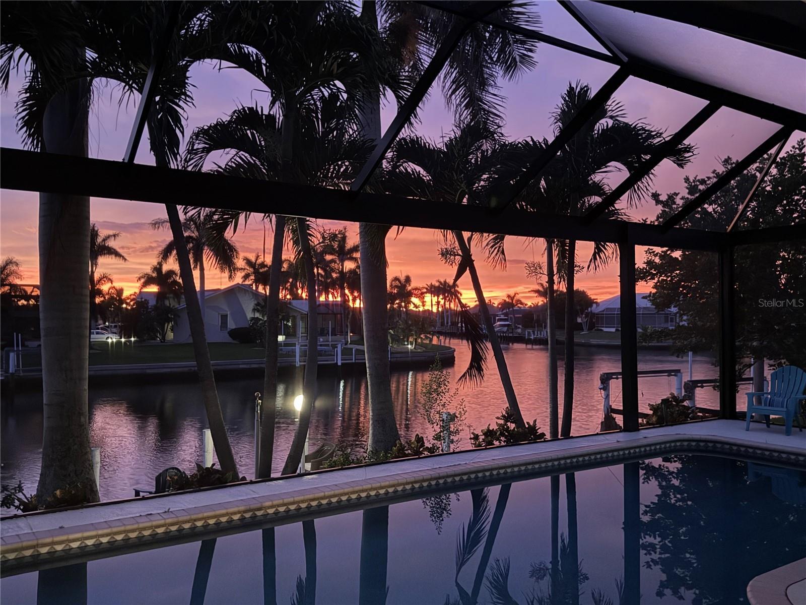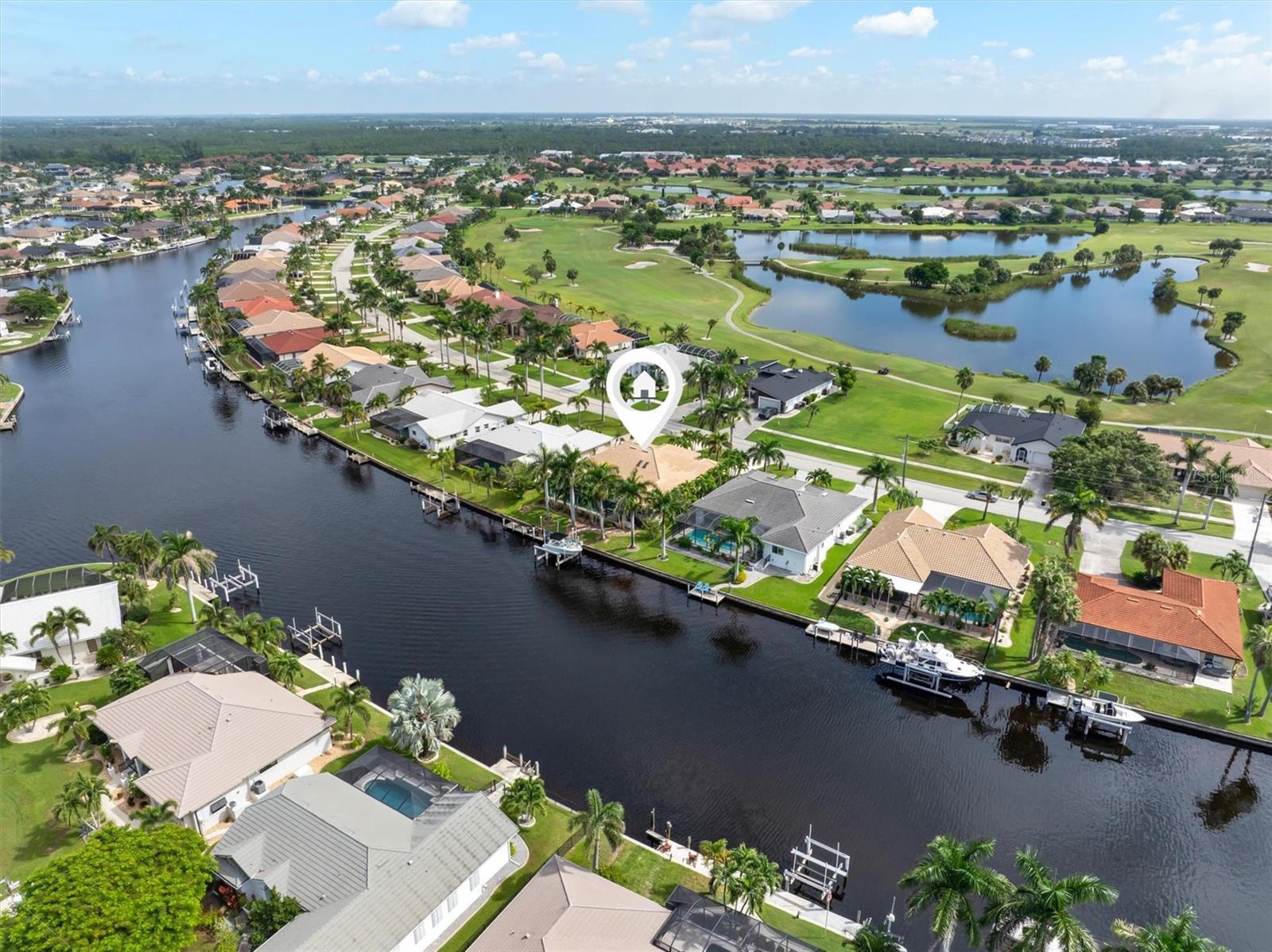 Waterfront living awaits in this beautifully maintained 3-bedroom plus office, 2-bath pool home with an oversized garage and more than 2,700 sq ft of living space in the highly sought-after community of Burnt Store Isles. Perfectly positioned on intersecting canals, this residence captures breathtaking water views, stunning sunsets, and lush tropical landscaping highlighted by stately Royal, Foxtail, and Christmas palms. Designed for both elegance and comfort, the open split-bedroom floor plan features vaulted ceilings, skylights, and pocket sliders that seamlessly blend indoor and outdoor living. Recent updates include a new roof (2023), newer appliances, and fresh interior and exterior paint. A stamped concrete circular driveway provides ample parking and easy access, while the welcoming front porch with French doors and etched glass adds timeless curb appeal. The oversized primary suite offers a private retreat with tray ceilings, dual walk-in closets, and a spa-inspired bath featuring dual vanities, a walk-in shower, soaking tub, and private water closet. Guest accommodations include two bedrooms and a shared bath with convenient pool access. You’ll love spending time outdoors with a covered lanai, heated pool and spa, and a 45-ft concrete dock equipped with electric and water, plus a 10,000 lb boat lift providing direct access to Charlotte Harbor and the Gulf via Alligator Creek (sailboat water). For added peace of mind, the home includes electric roll-down, accordion, and panel shutters for full storm protection. Ideally located near I-75, Punta Gorda Airport, historic downtown Punta Gorda, Fishermen’s Village, and the Yacht Club. Optional membership is available at Twin Isles Golf & Country Club, featuring an 18-hole championship golf course, tennis courts, swimming pool, and a vibrant clubhouse with indoor and outdoor dining plus numerous social activities. Nearby attractions include PicklePlex with 24 pickleball courts, fine dining, and boutique shopping. There’s always something happening—from international art exhibits to weekly farmers markets, music festivals, and holiday celebrations. It’s truly a lifestyle like no other. Easy to show—schedule your appointment today and don’t miss the virtual and 3D tours!