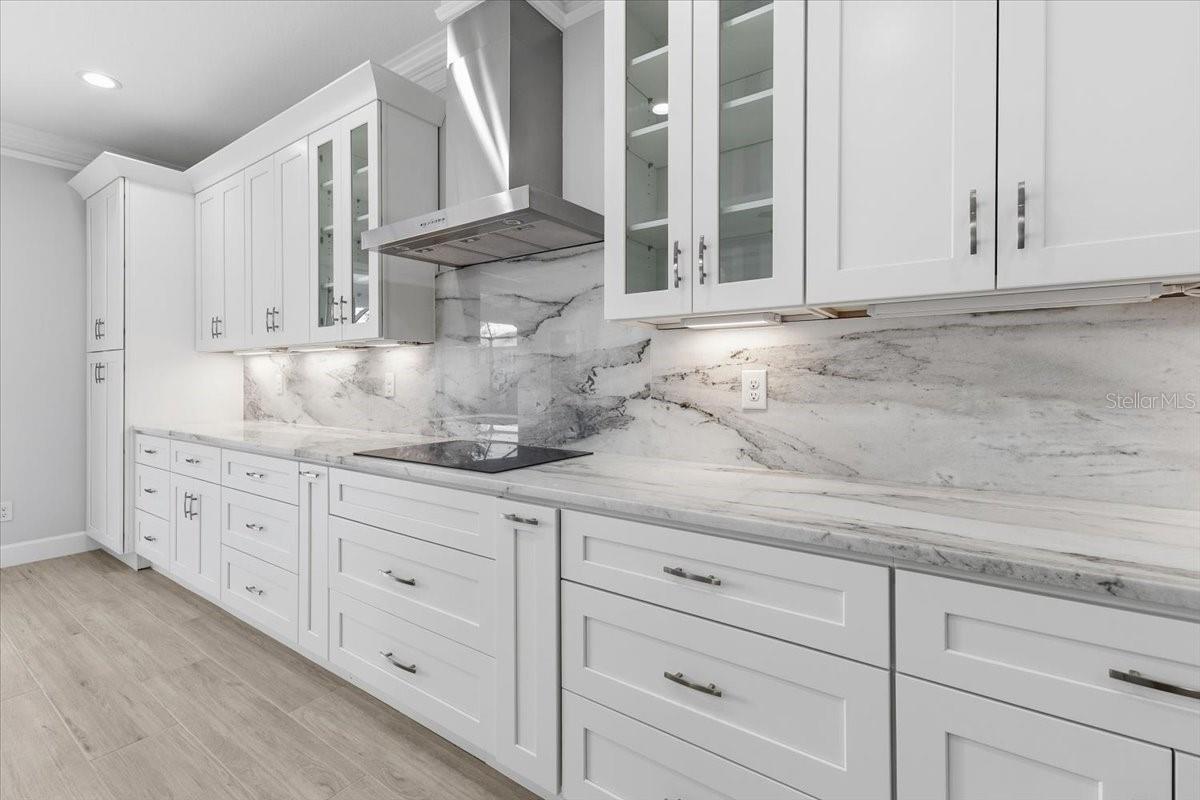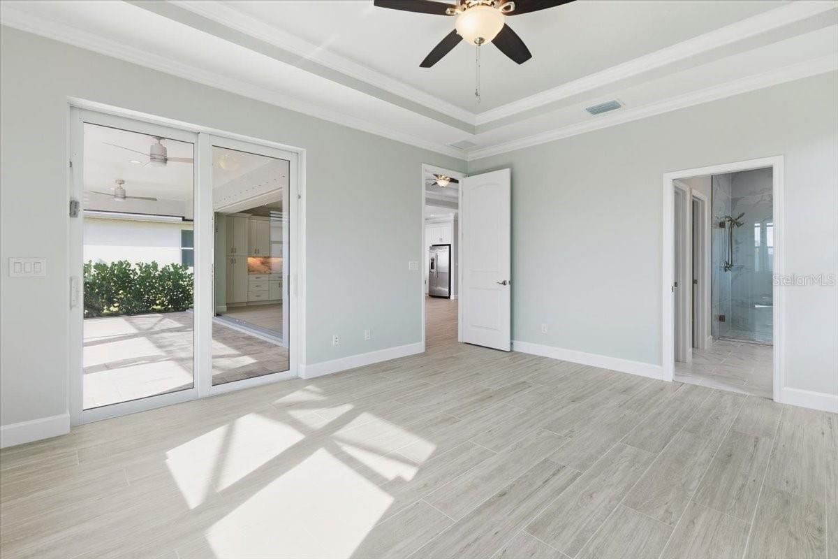 - Ceiling Fans(s), Coffered Ceiling(s), Crown Molding, High Ceilings, Open Floorplan, Solid Surface Counters, Solid Wood Cabinets, Walk-In Closet(s)