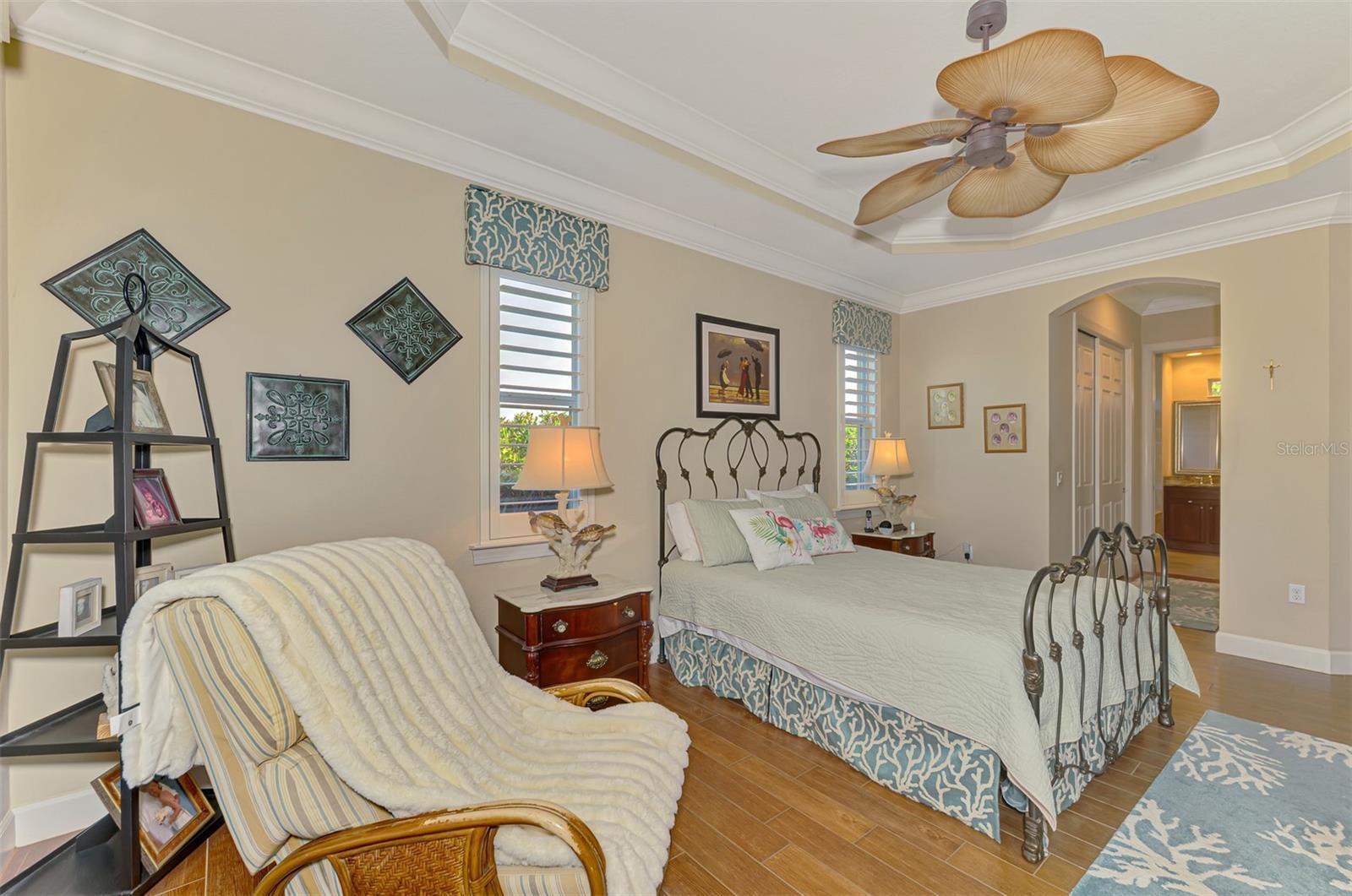 - Crown Molding, Eat-in Kitchen, High Ceilings, Open Floorplan, Primary Bedroom Main Floor, Split Bedroom, Stone Counters, Walk-In Closet(s)