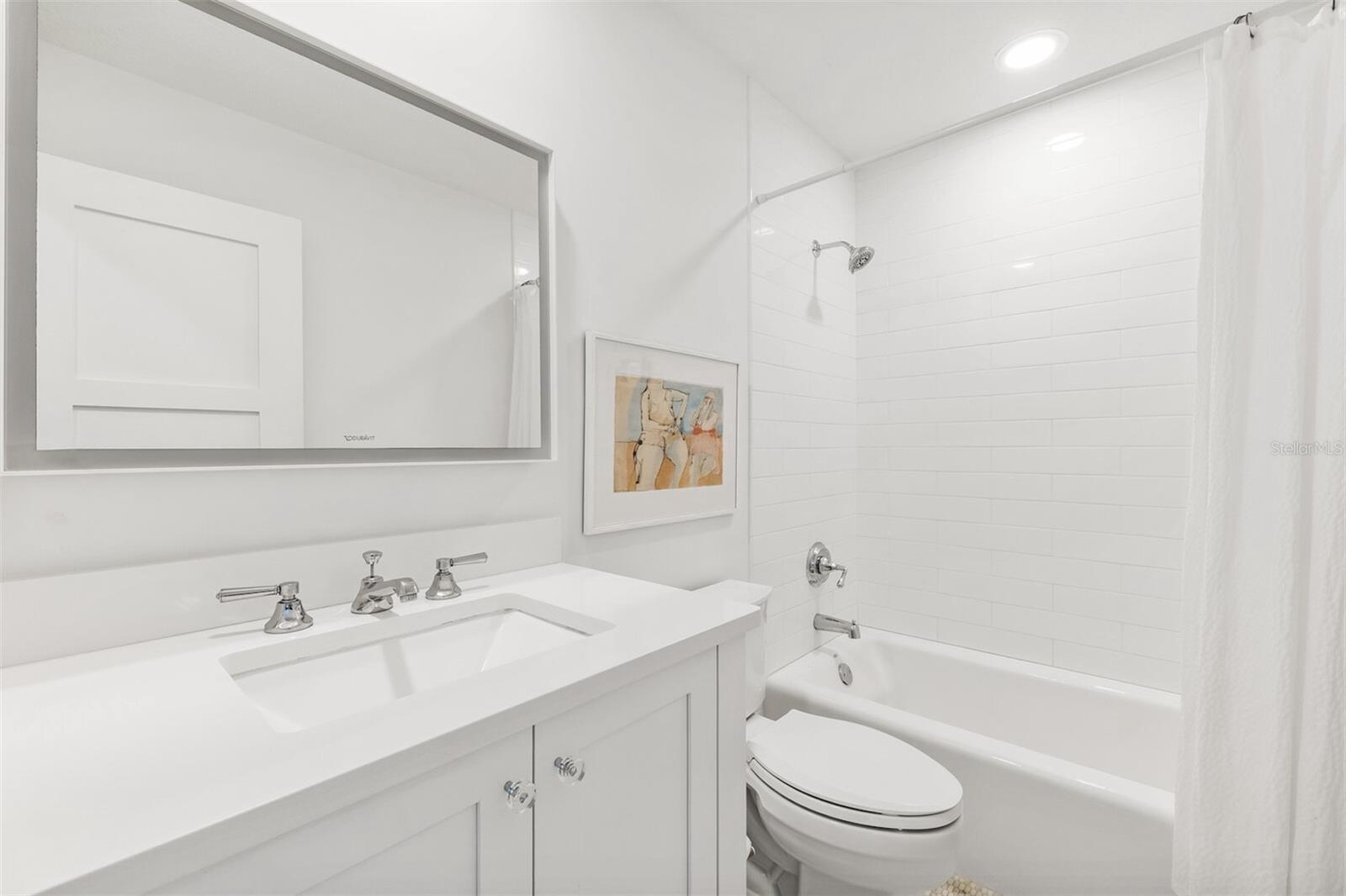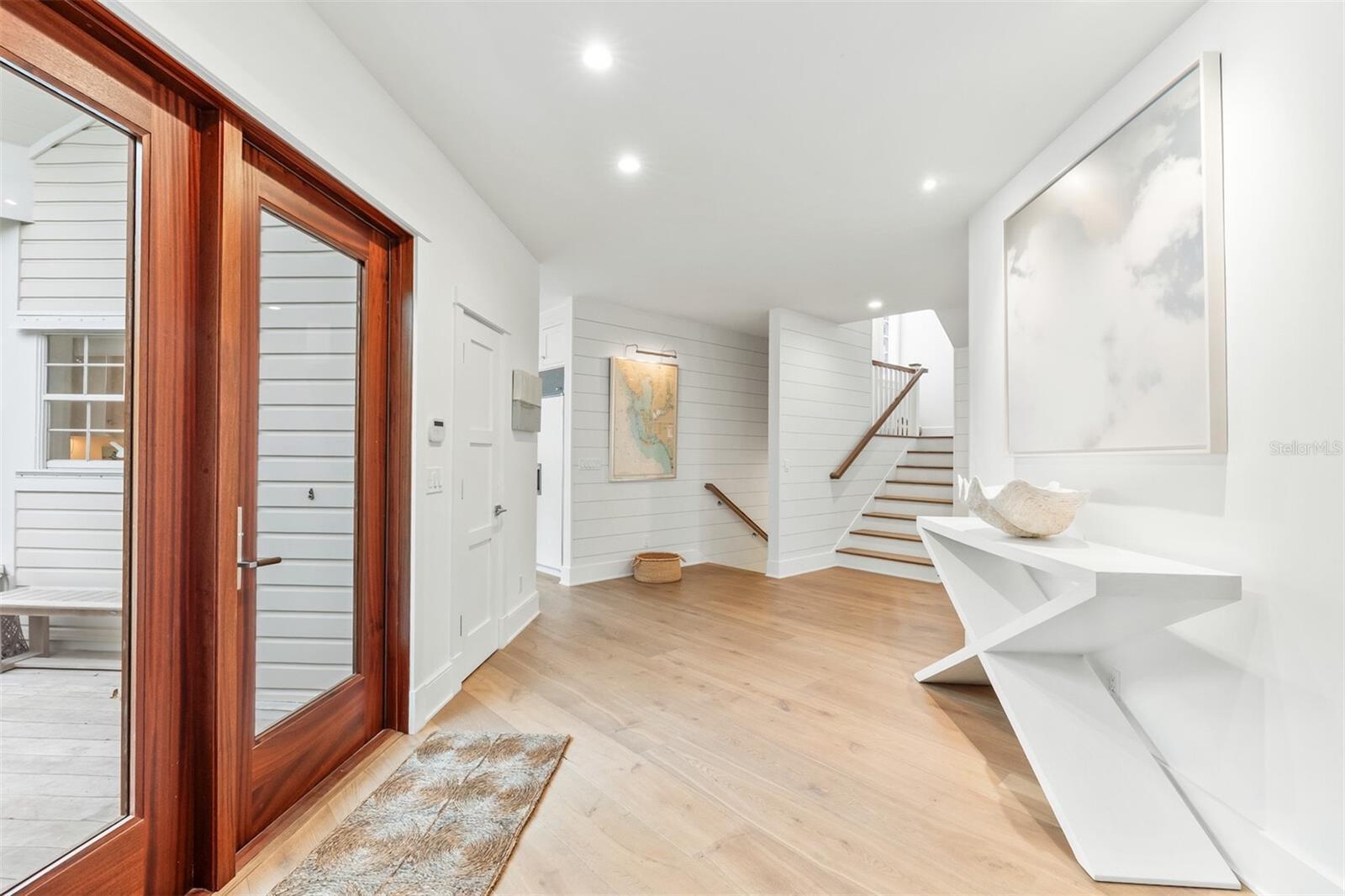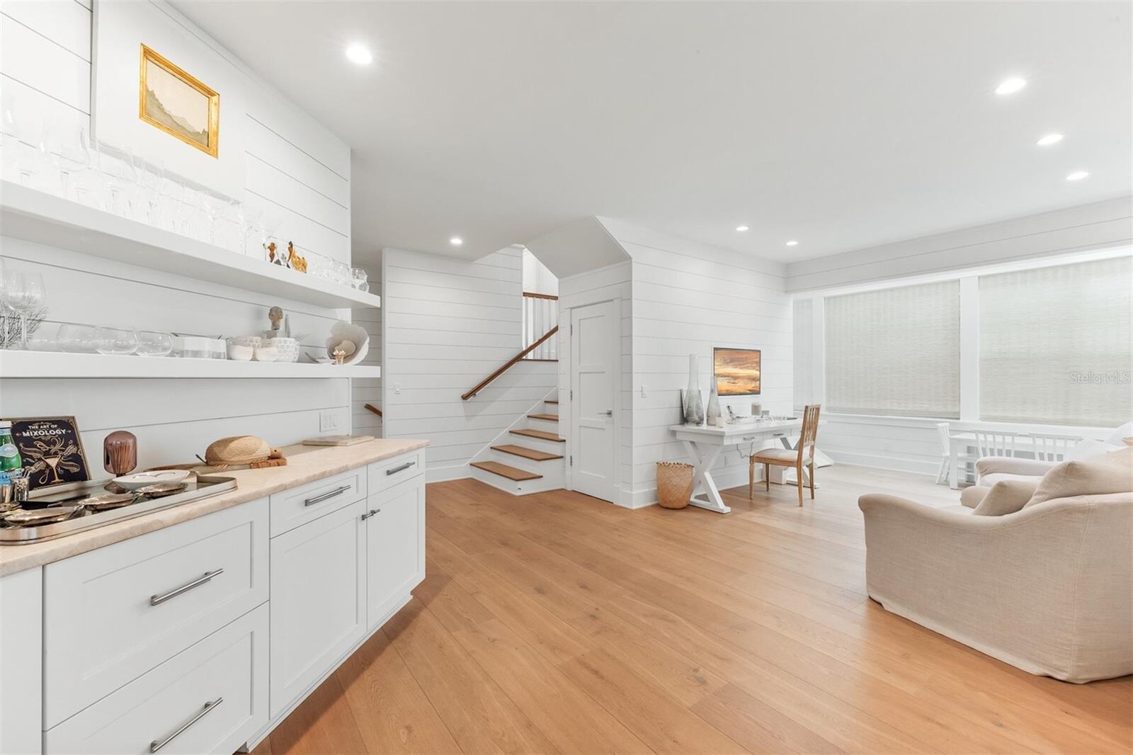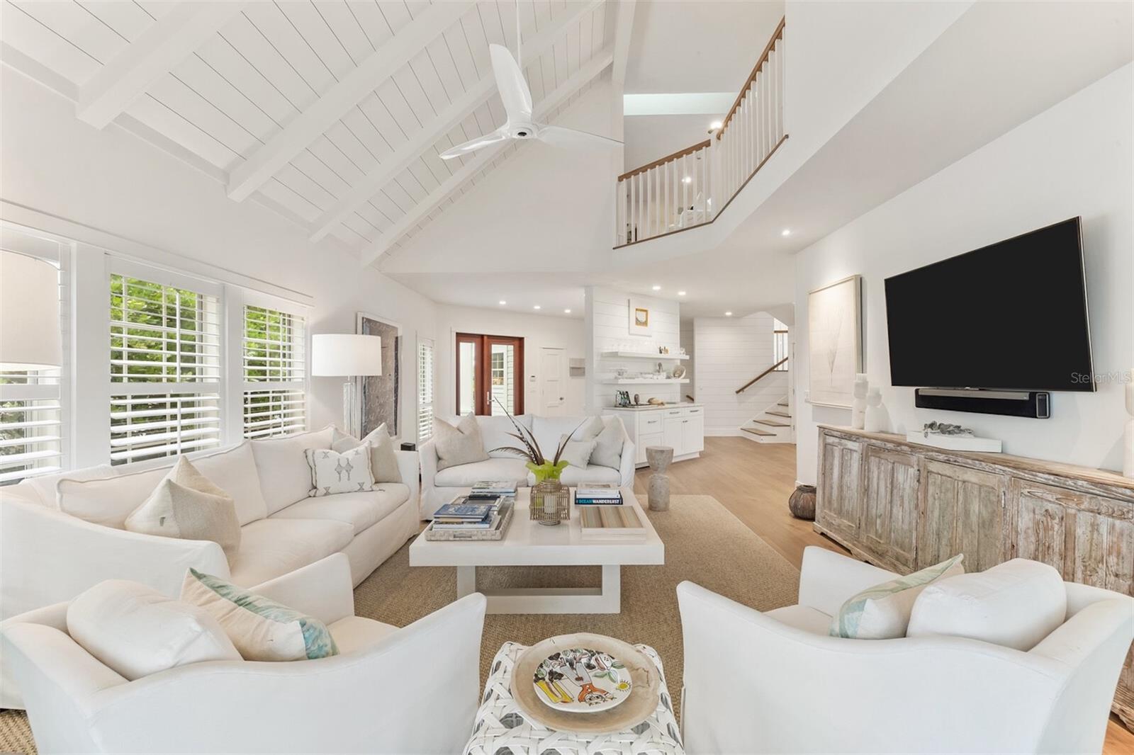 This stunning lake-view corner lot oasis is nestled in the esteemed North Village neighborhood of just 69 residences in the gated Boca Bay Community. You are just a short walk away from both the beaches of the Gulf of Mexico and the charming shops and restaurants in the Village of Boca Grande. Enjoy the luxury of private parking while close to town and directly across the street from the private beach club pool. This completely remodeled home transformed through renovations by Safety Harbor Construction features 4 spacious bedrooms, 4.5 bathrooms and over 3,000 sq. ft. of living space, making it ideal for entertaining. As you enter you'll be greeted by an open-concept living area that is thoughtfully designed to embrace the natural light highlighting the beautiful wide plank engineered-hardwood floors, shiplap walls, vaulted exposed-beam ceilings and elegant finishes throughout. The glass impact sliders off the living room open to your private screened patio overlooking lush landscaping, where you can enjoy serene views of the gulf from across the street. The gourmet kitchen is a chef's dream, equipped with high-end appliances, Christoff countertops, open beam ship lap ceiling, double stainless-steel sink, and custom cabinetry with ample space for all your culinary needs. Also includes an adjoining breakfast area with a wall of windows welcoming the morning light. The layout of this multi-level home is both spacious and inviting. The main level primary en-suite offers built-in closet/cabinetry, two single vanities and a walk-in shower. The second level offers an en-suite bedroom/bathroom. Ascend to the 3rd level to find a sitting/entertainment area, second primary ensuite with a walk-in shower, soaking tub and dual vanities. Also, includes a laundry room with sink and storage. Residents of Boca Bay have access to exclusive amenities, including a membership to the Boca Bay Pass Club that includes a beach front grill room, private formal dining room and a casual pool side bar, 4 community swimming pools, an active tennis program with tennis pros, pro shop and 8 Har-Tru courts, additional courts for pickle ball, a fishing pier, and boat slips for short term dock-age. With its prime location and exquisite design, this home is truly a gem.