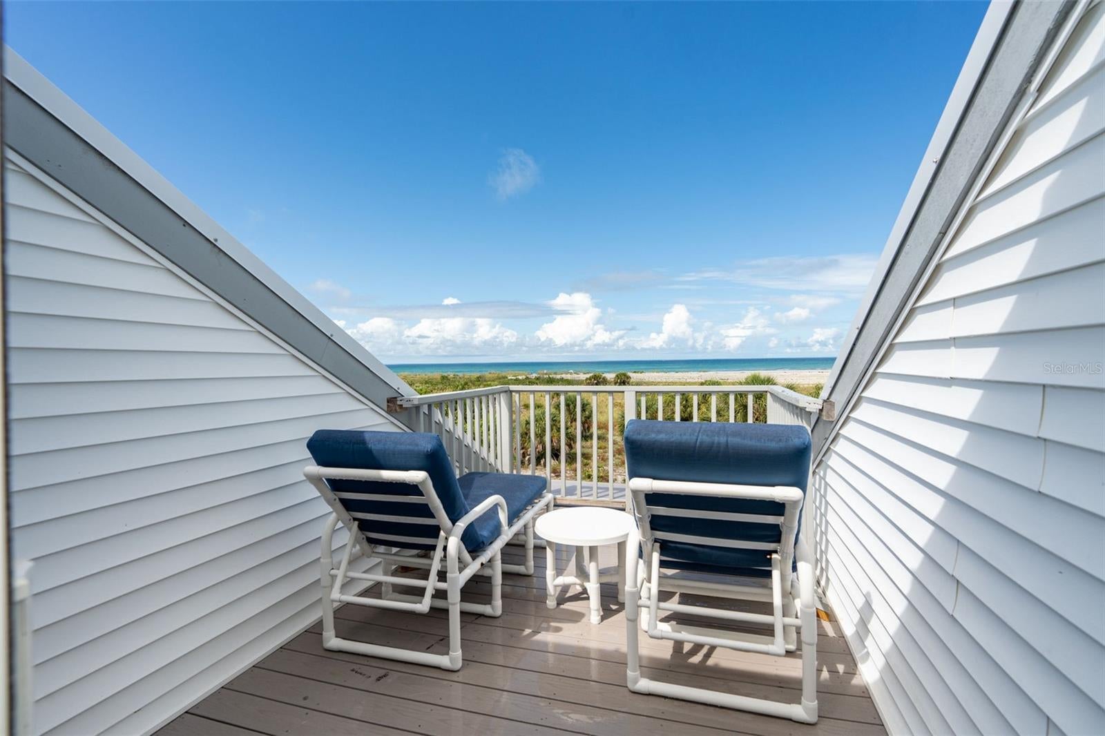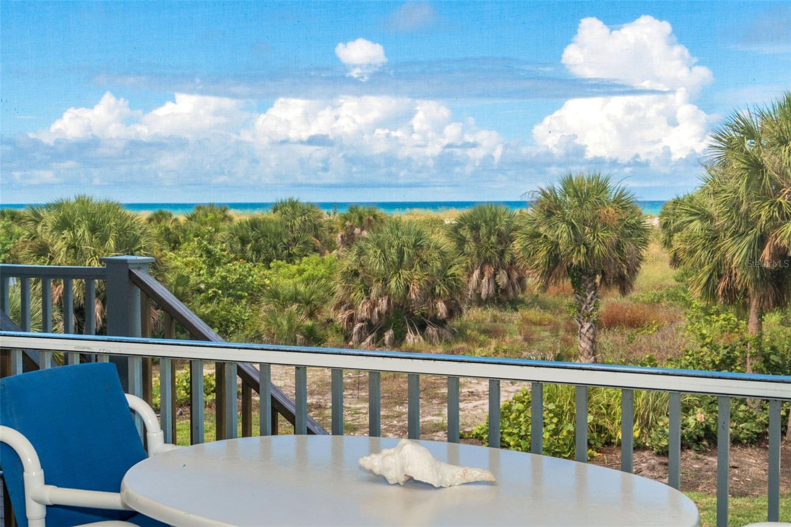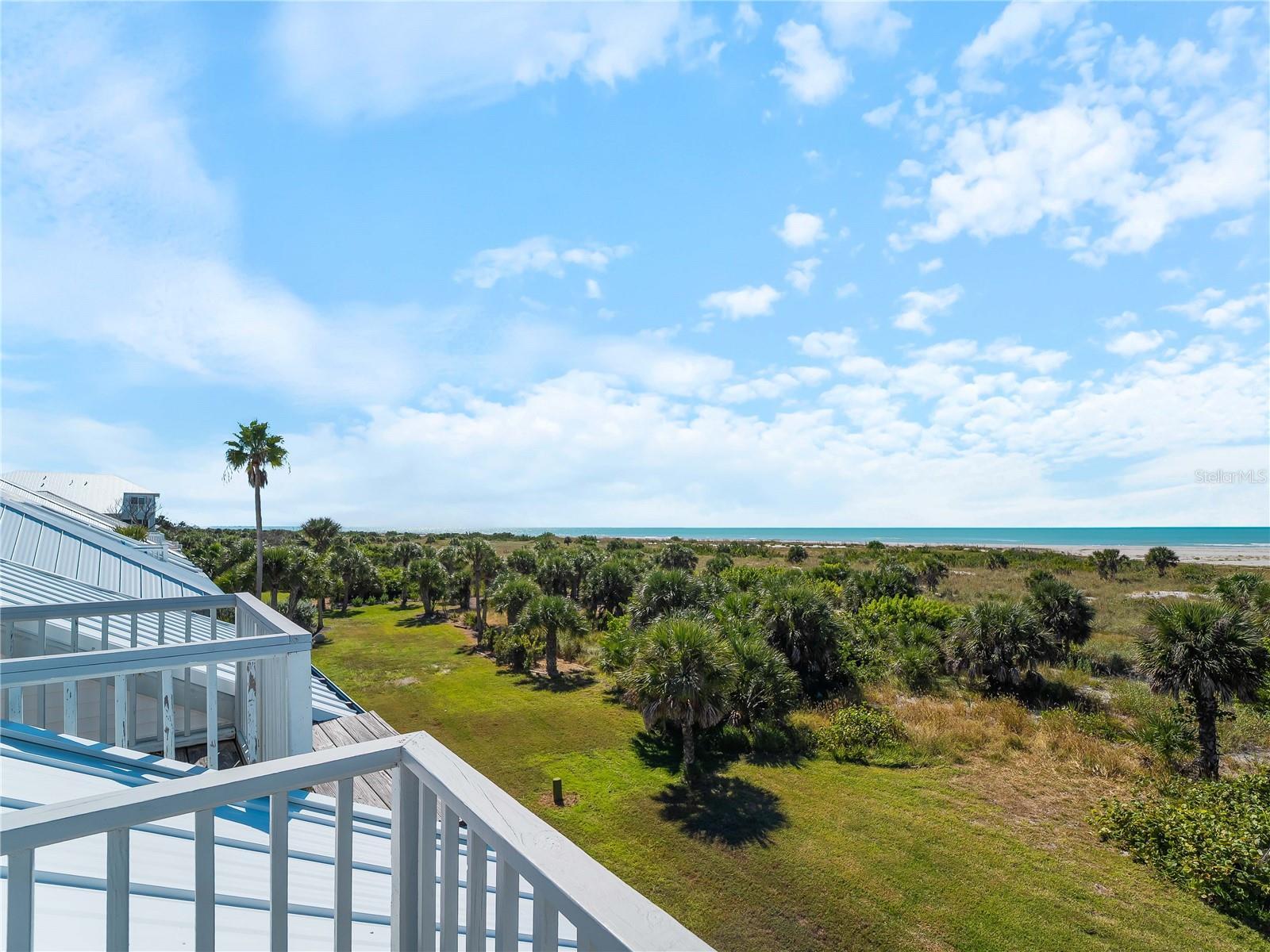 A must see on Palm Island. Duplex island home on Palm Island Resort. Enjoy watching the shore birds, sea life and fabulous sunsets from your choice of 3 decks and all have new decking in 2024. Also new in 2024; metal roof, gutters, lattice, interior and exterior paint. Located in the northern part of the property with a walking path to the beach adjacent to the residence. Safely set behind the natural berm a bit back from the beach this home has back yard space for family fun. The kitchen boasts granite counter tops, stainless steel appliances and new shaker style cabinets. A matching built-in desk under the interior stairs is a great use of space. The primary bedroom has access to the main floor deck and an ensuite with tiled walk-in shower and double sink countertop. Neutral decor throughout this duplex add comfort and allow you to add details to put your mark on it. Upstairs bonus area is currently set up with a desk, yes you could work with a spectacular view of the Gulf! Bask in the sun and take in the view from the balcony off this upper floor. The third bedroom also has a slider out to a deck with a view of the foliage surrounding the property. Spend your day by the community pool, walking the sandy beach or participate in the resort's vibrant tennis and pickle ball programs. Palm Island Resort is a vehicle free community; golf carts, walking and biking are the way to get around. Under the villa is a golf cart sized storage area and space enough for your beach toys. Visit the onsite restaurant, cafe and gift shop or take the car ferry to shop and dine in the surrounding community. Move right in and start enjoying the island life. Between Ft. Myers and Sarasota, if you are in search of all the west coast offers this is a must see turnkey ready beach home!