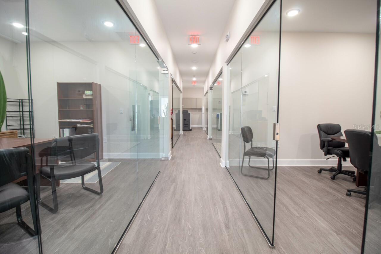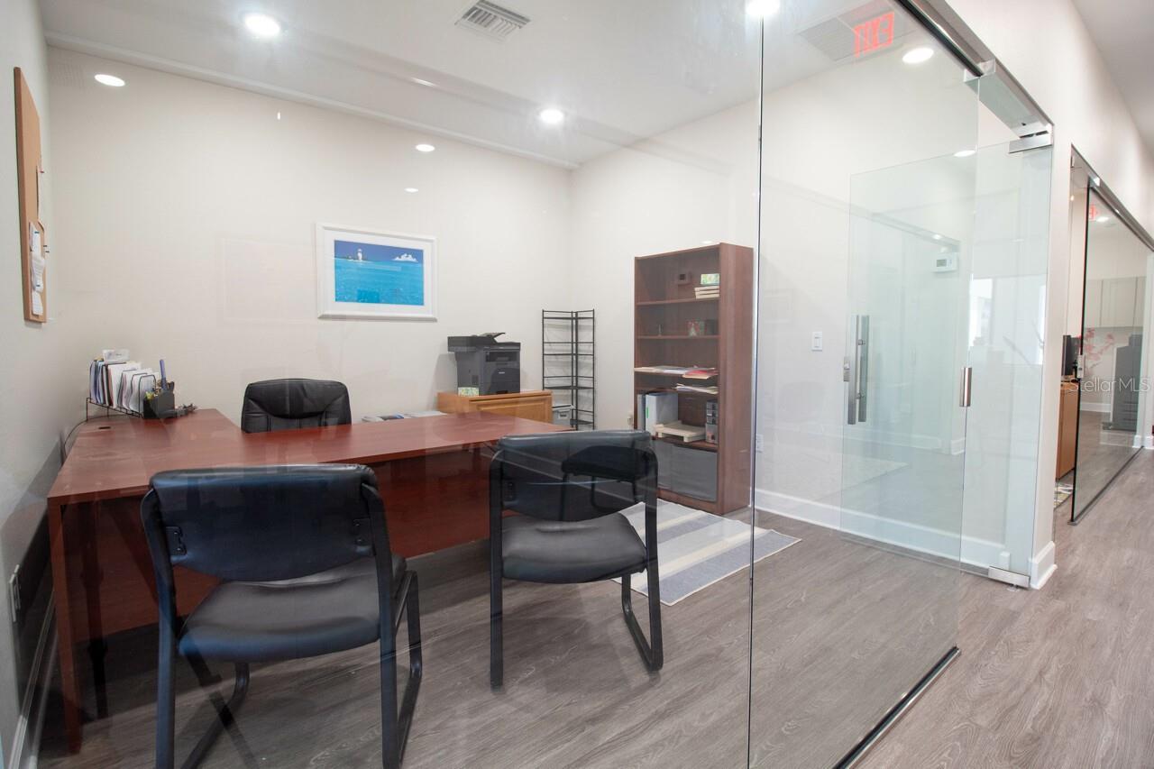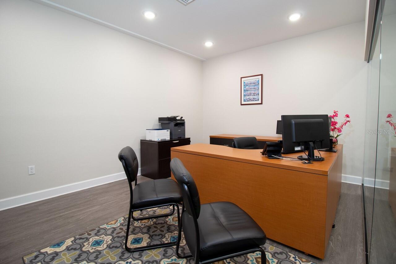 Turnkey Fully Furnished Executive Office Space is Move in Ready, now. This approximately 2000 sq ft under air office is set up with a bright Lobby/Secretary Entry with a long hallway dividing the Five Private Offices. Three Offices are on the right and two offices on the left with one of the two on the left being extra-large for a total of five private spacious rooms. The Two separate bathrooms are located on the left side previously used one for clients and other for private. With parking both in front of the office and shared parking in rear, you will not need to worry about your customers finding places to park. This well-appointed professionally designed space was drafted with updated sound resistant glass throughout. The censored lights automatically turn off when space is not in use along with many more modern features. The rear door has a programable digital security lock on the back and a glass door on the front. The signage for this office is located directly on S McCall Rd and can be lit up during the evenings with a very high traffic count during the day. The owner will also allow you to place a sign on the front of the building at tenants cost. Tenant is responsible for HOA Fee, electric and property tax. No Real estate, title or mortgage brokerages. Total of 5 offices and can be rented separately ranging from $500 per month to $750 per month.