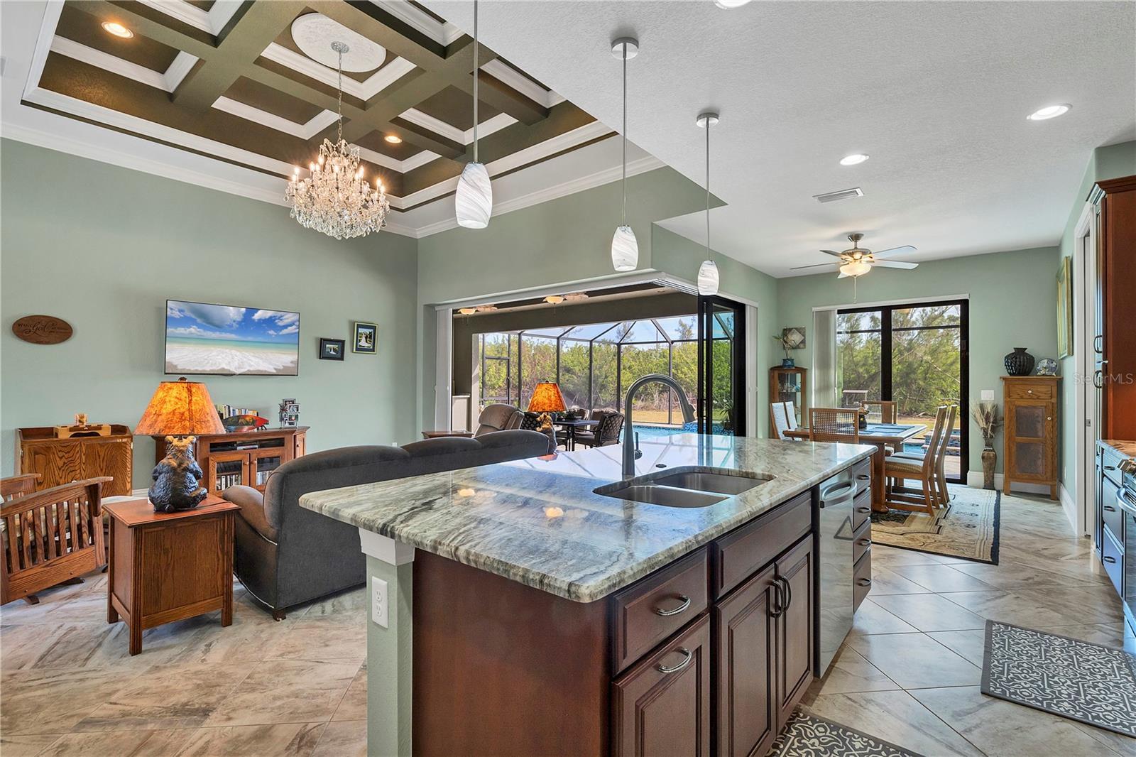 Experience luxury, privacy, and unbeatable value in this stunning custom built 2020 home featuring a brand new roof (May 2025) and exceptional upgrades throughout. Perfectly situated on three spacious lots, this meticulously maintained residence offers 1,818 sq. ft. of thoughtfully designed living space with 3 bedrooms, 2 bathrooms, and elegant finishes at every turn. Inside, you’ll find 12-foot coffered ceilings, a central vacuum system, and a hot water circulation system for everyday comfort. The gourmet kitchen is both stylish and functional, highlighting solid wood cabinetry, granite countertops, a walk-in pantry, and an open layout ideal for cooking and entertaining. The primary suite serves as a true retreat, featuring a spa-like ensuite bathroom with dual vanities, granite countertops, and a walk through shower with multiple shower heads, a perfect blend of comfort and sophistication. Step through the zero-corner sliders into your private outdoor haven. The expansive lanai showcases a wood accented ceiling, heated pool and spa with LED lighting, and a kitchenette, perfect for enjoying year-round Florida living. Additional highlights include a recently updated 4" column irrigation well supplying 55 spigots across the property for effortless maintenance, an oversized garage accommodating 4–5 vehicles with a workshop area and ceilings tall enough for a lift, plus a 40-foot paver driveway and custom hardscaping for exceptional curb appeal. Conveniently located between Sarasota and Fort Myers, you’ll enjoy quick access to world-class fishing, championship golf, pristine beaches, fine dining, and boutique shopping. This move-in-ready home perfectly blends luxury, comfort, and functionality, a rare find in today’s market. Schedule your private showing today. Paradise awaits you!