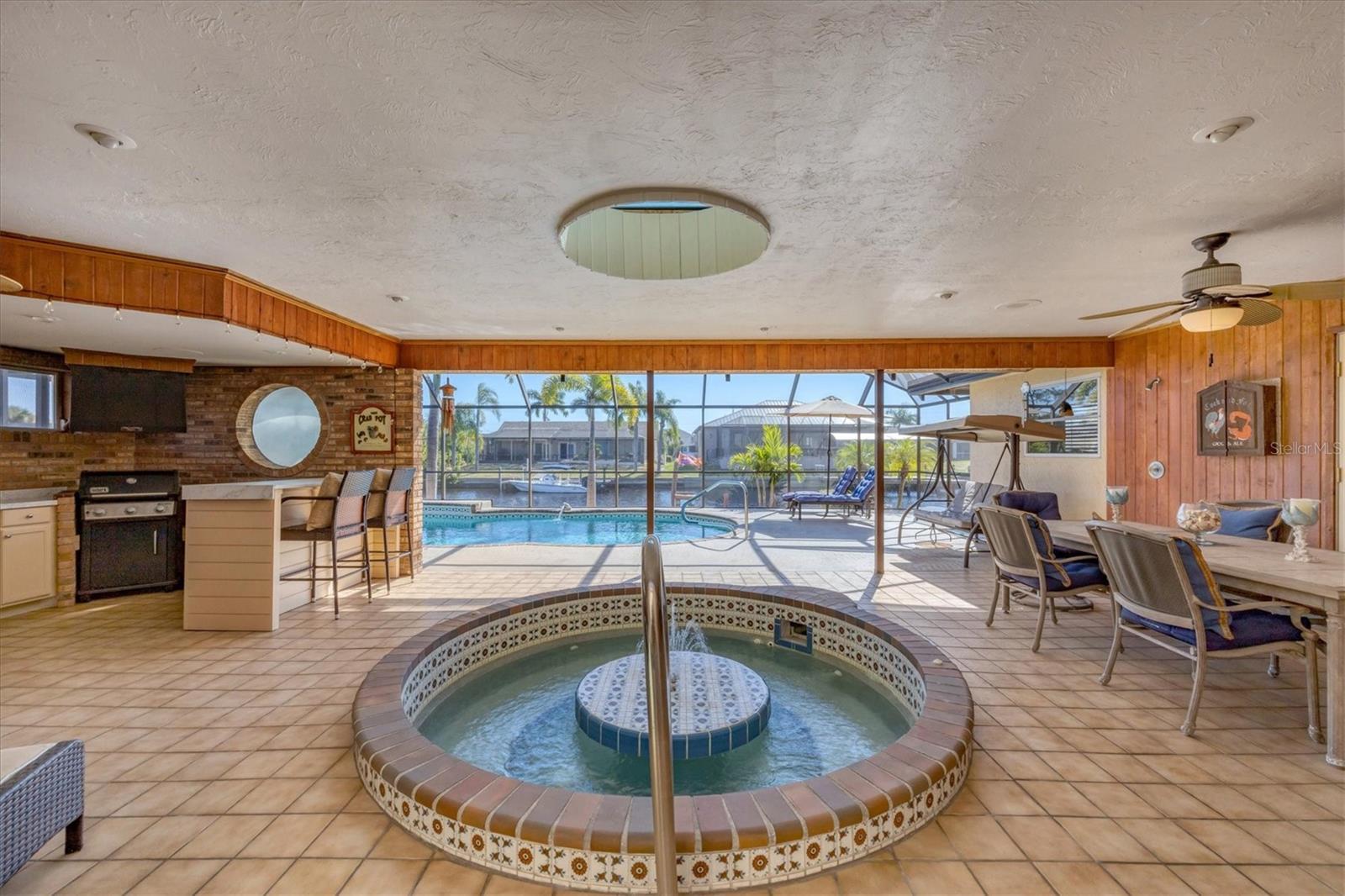 Welcome to your own slice of paradise—an extraordinary waterfront estate that captures the essence of the Florida lifestyle with elegance, comfort, and unmatched versatility. Nestled on two peaceful waterfront lots in one of the region’s most sought-after boating communities, this unique property offers a rare combination of privacy, luxury, and functionality. With 160 feet of concrete seawall and direct Gulf access, it’s a dream come true for boaters, entertainers, and anyone who cherishes life by the water. Inside, the open concept living spaces flow seamlessly, with expansive covered and open-air patios that invite relaxation and connection. The main residence features a spacious 3-bedroom, 2-bath layout with a generous 2.5-car garage, thoughtfully designed for both everyday living and unforgettable gatherings. Enjoy a chilly evening fireside in the spacious great room with vaulted ceilings, and a large kitchen with breakfast bar. Step out back to discover the ultimate social and party haven: a huge-covered patio with an outdoor kitchen, bar, and spa complete with a built-in table, all overlooking a sparkling pool. Whether you're hosting lively celebrations or enjoying quiet evenings under the stars, this outdoor oasis offers the perfect setting for every occasion. The atmosphere is peaceful and serene, yet vibrant with possibility—ideal for those who love to entertain or simply soak in the tranquil surroundings. Adding to the property’s appeal is a fully equipped 1-bedroom, 1-bath guest home with its own garage with workshop & storage, and private screened patio. It’s perfect for extended family, visitors, or rental income, offering comfort and independence without sacrificing proximity or charm. The setting provides easy access for boating adventures, fishing, or simply enjoying the gentle rhythm of the tides. Whether you're launching your vessel for a day on the Gulf or sipping cocktails as the sun dips below the horizon, this home delivers a lifestyle that’s both luxurious and laid-back. From its stunning water views and resort-style amenities to its thoughtful layout and unbeatable location, this property is more than a home—it’s a destination. Come experience the magic of waterfront living, where every day feels like a vacation and every detail is designed to delight.