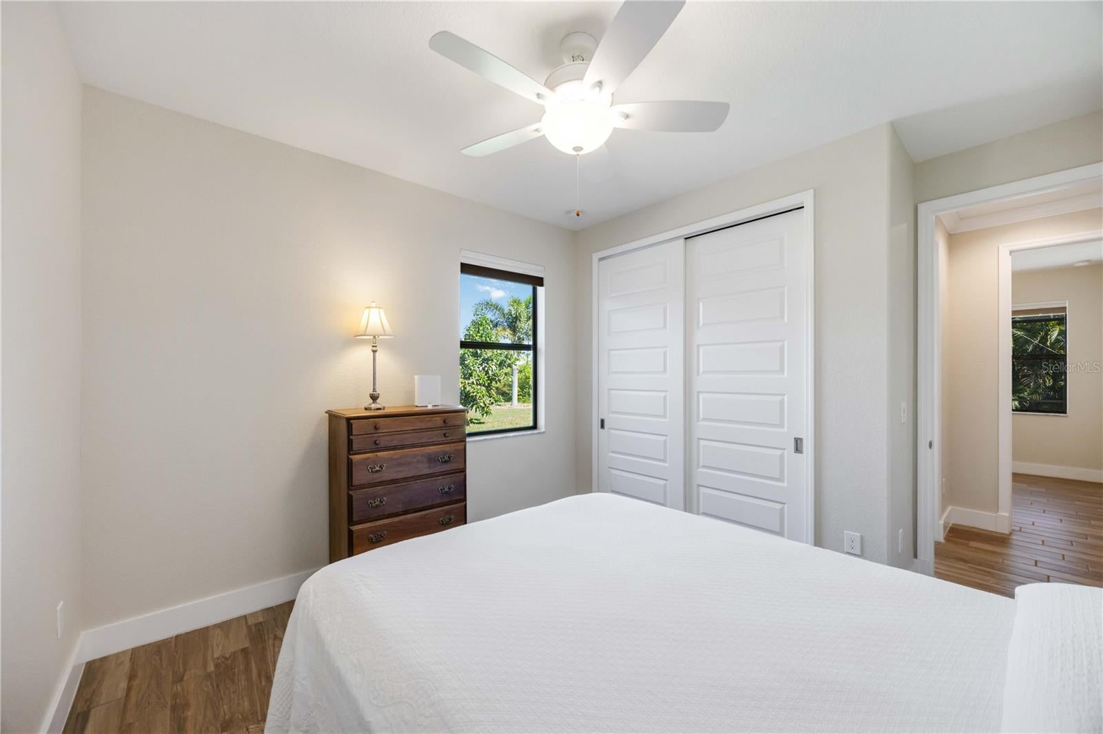 Under contract-accepting backup offers. WHY BUILD? THIS "BETTER THAN NEW HOME" has been meticulously maintained and is ready for YOU! Seated on over half an acre with an additional 580 sq. ft. bonus/flex room, and a new whole-home Generac generator, this custom-built home is a must-see. All you could dream of has been created with a myriad of luxury, quality features, details and finishes! As you view the elegant landscaping and walk up to the 8' high, double glass doors and step into the foyer, a spacious "great room" greets you with 14' high coffered & tray ceiling with diffused lighting, elegant crown moulding and eye-catching ceiling fan. The custom window/door casings, and crown molding throughout the home elevates the desirable open floor plan where you can view the spacious "designer" kitchen accented by a tray ceiling, an extended island with a quartz waterfall ledge, custom designed wood-inlay design and matching wine rack above refrigerator, quality wood cabinetry with “soft close” drawers, under cabinet lighting, elegant tile backsplash, stunning quartz countertops, quality stainless steel appliances including a cooktop, raised oven & drawer microwave, complete with a custom designed coffee area to accommodate your coffee and espresso machines. The roomy dining area, with tray ceiling, is ideally located near the kitchen where you can gather with friends and family. All of this provides eye-catching views of your surroundings through an 8’ high glass “wall” of sliding and pocketing glass doors with a “zero corner” -- opening the house to your amazing personal retreat, including a spacious (35’ x 11’) covered lanai area with wood inlay ceilings, an outside kitchen and large seating area. As if that were not enough, there’s an additional 56’ x 18’ screened enclosure with your private heated pool with nearby pool bathroom, outdoor shower, and air-conditioned storage closet, all of this encompassed by a wall of eureka palms creating your own private retreat! And there is plenty of room inside this home! With a “split” bedroom plan, the primary suite is separate with a spacious bedroom, sliding glass pocketing doors to the lanai area, two roomy walk-in closets, a linen closet and the ensuite, spa-like bathroom with separate vanities featuring correlating wood-cabinetry, diffused lower lighting, large walk-through shower with rain showerhead and an upgraded bidet. On the opposite side of the house, with a barn door to ensure privacy for all, there are two additional bedrooms – one with an ensuite bathroom with a floor to ceiling tiled walk-in shower (also used as the pool bath with direct access to the pool/lanai area) and the 3rd bedroom has a full bathroom & linen closet right outside its door. Both of these bedrooms are roomy with large closets & ceiling fans – with the same beautiful, & easy to maintain, porcelain plank flooring that runs throughout the entire home. Let’s not forget the impressive office/den -- with with french barn doors, 14' tray ceiling, highlighted with crown molding, and large window highlighted with additional window moulding – a perfect place to work or relax, you choose! The oversized 3-car oversized garage features additional storage space, a workshop area, and most importantly, access to the BONUS ROOM. This 26' x 22' flex space is the perfect space for hobbies, an extra office, workout room...the possibilities are endless! – this is a “dream come true” home, there is even a walking path just steps away. Make this luxurious home yours.
