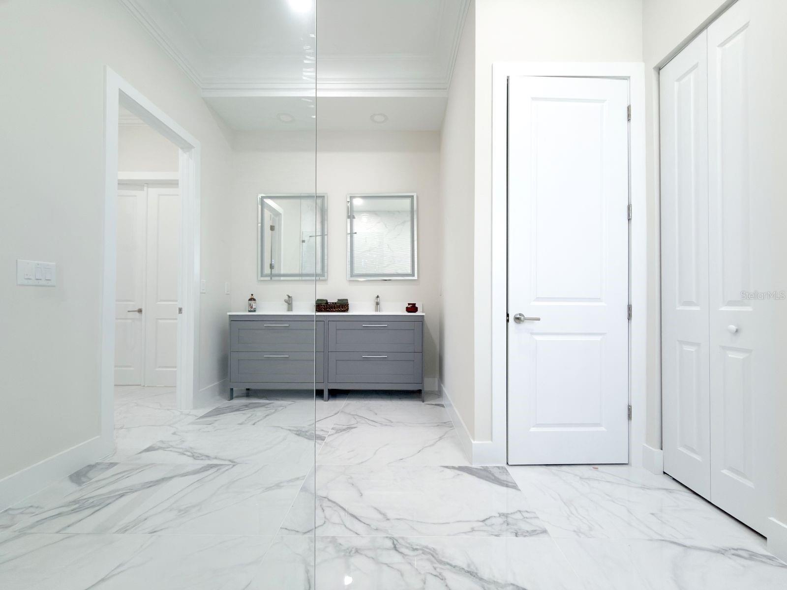 - Ceiling Fans(s), Crown Molding, Dry Bar, Eat-in Kitchen, High Ceilings, Primary Bedroom Main Floor, Solid Wood Cabinets, Split Bedroom, Stone Counters, Thermostat, Walk-In Closet(s), Window Treatments