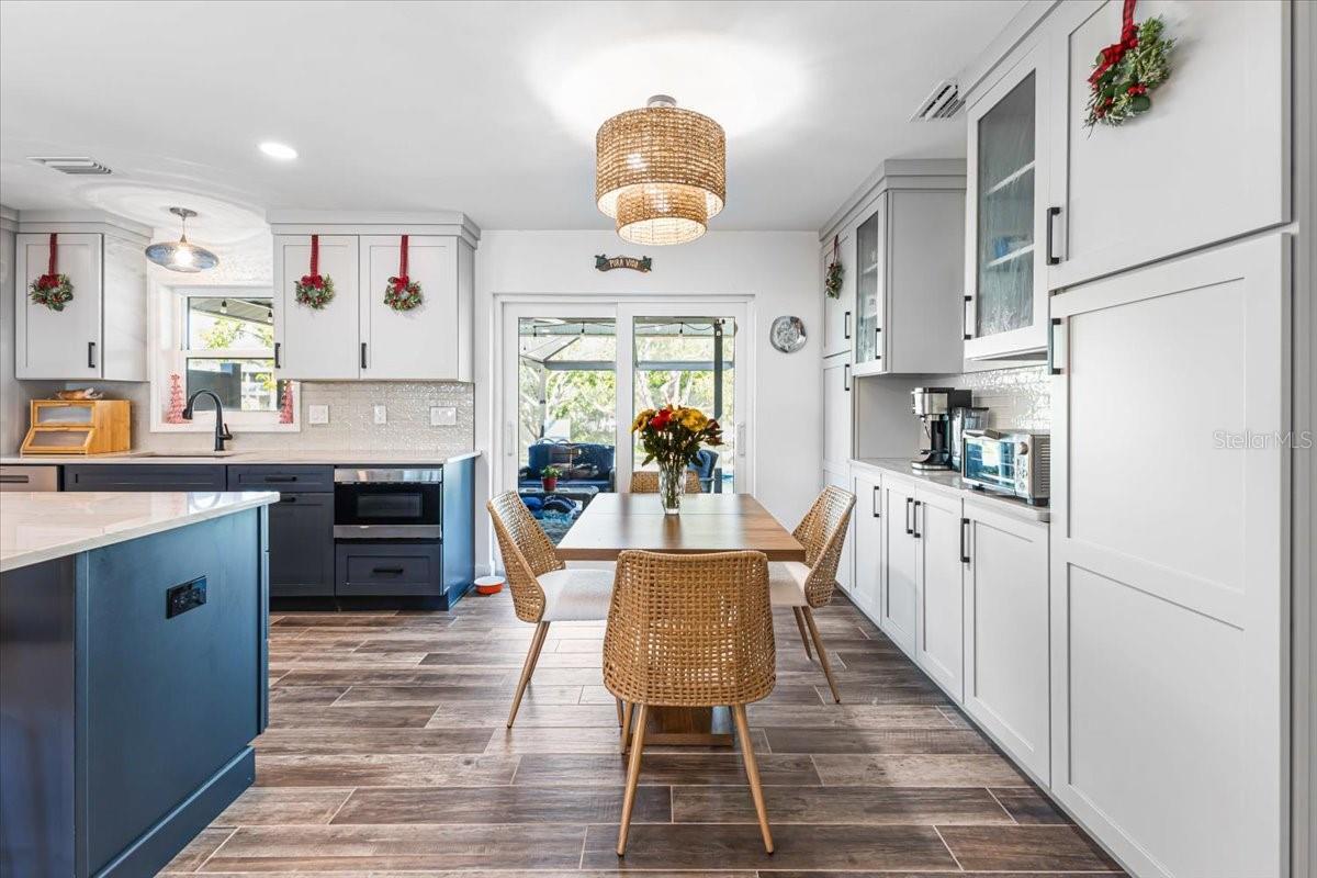 - Ceiling Fans(s), L Dining, Living Room/Dining Room Combo, Open Floorplan, Solid Wood Cabinets, Split Bedroom, Stone Counters, Thermostat, Window Treatments