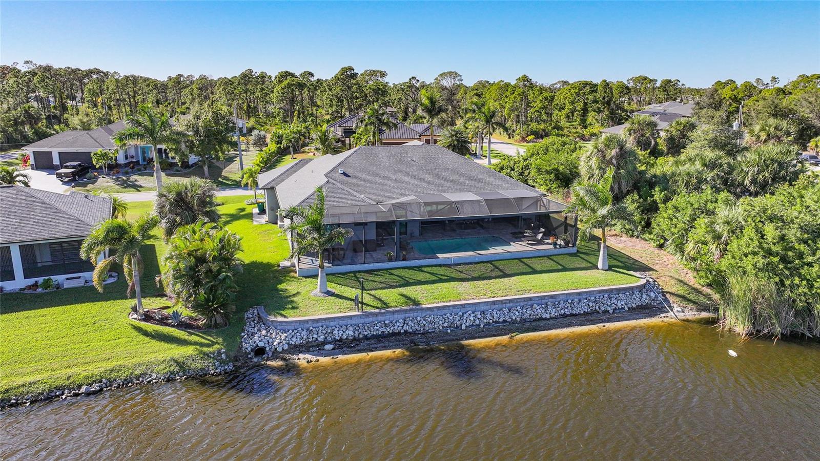 Panoramic water views & Gulf access from this well maintained waterfront residence situated on a wide DOUBLE CANAL. Offering 80 feet of seawall, this three bedroom, two bath split floor plan home is designed to highlight the water and outdoor living experience. A HEATED SALTWATER POOL overlooks the canal, providing a peaceful setting for relaxation and entertaining. The interior features high ceilings and tile flooring throughout, creating a bright and open atmosphere. The kitchen includes granite countertops, soft-close cabinetry, and stainless steel appliances, and opens to the main living area with sliding doors leading to the screened lanai. The outdoor space serves as the focal point of the home, ideal for enjoying canal views, passing boats, and gentle coastal breezes. Boating enthusiasts will appreciate direct access to open Gulf waters and the excellent fishing this area is known for. Additional features include hurricane roll-down sun screens, lanai plumbing in place for a future outdoor kitchen, spray foam insulation, a three-zone A/C system with a transferable 10-year parts and labor warranty, an 18-foot garage door, a new canal-fed irrigation pump, and upgraded landscaping. The property also offers a three-car garage with an additional 11 x 11.5-foot BUMP-OUT GARAGE, suitable for extra storage, a workshop, or golf cart parking. Conveniently located less than nine miles to the Boca Grande Causeway, approximately ten miles to Englewood Beach, and close to marinas, golf courses, dining, shopping, and everyday amenities. An upgrade feature sheet is available in the MLS for additional details.