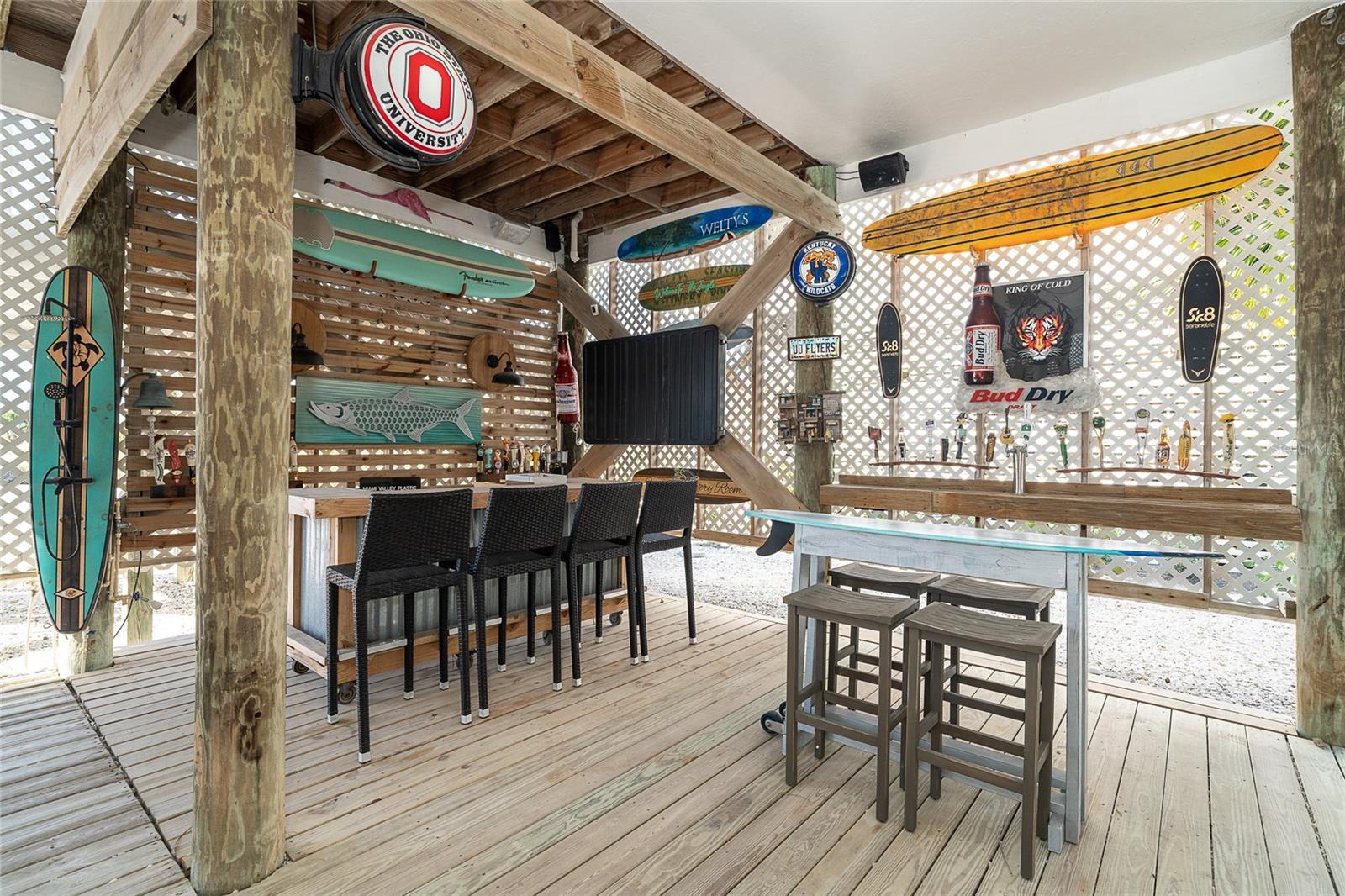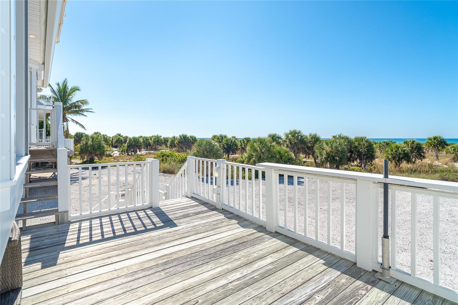 Stunning Gulf-Front Coastal Escape. Discover the rare opportunity to own a premier gulf-front property offering uninterrupted, panoramic views of turquoise waters and sugar sand beaches. Positioned in one of the most desirable stretches of coastline, on a barrier island between Ft. Myers and Sarasota this residence captures the essence of coastal living with its breathtaking sunsets and tranquil ocean breezes. Set amid swaying palm trees and manicured tropical landscaping, this elevated coastal home greets you with a bright, crisp exterior and a classic beach-house silhouette. The wide front staircase leads to a spacious, glass-lined living level designed to showcase natural light and gentle sea breezes. Inside the open concept let's you see the blue water from Living space, Dining and Kitchen. The kitchen boasts countertop bar with plenty of seating Stainless Steel appliances and hard surface counter. Entertain with ease on the Gulf view Lanai or enjoy time below the house. You must see this inviting outdoor gathering area below the home, offering shaded relaxation and a direct sightline through to the sandy path beyond. The property features low-maintenance stone landscaping, elegant potted greenery, and multiple seating areas ideal for entertaining or unwinding after a day on the beach. Find the guest bedroom and den on the main floor perfect for island visitors. The upper floor holds the primary bedroom suite, and it is sweet! Relax in the soaking tub, put your feet up in sitting area or walk out to the balcony with amazing views. With its serene setting, charming architectural details, and effortless indoor-outdoor flow, this gulf-front property offers the perfect blend of comfort, coastal character, and resort-style living. Welcome to an exceptional beachfront residence that perfectly captures the essence of island living.