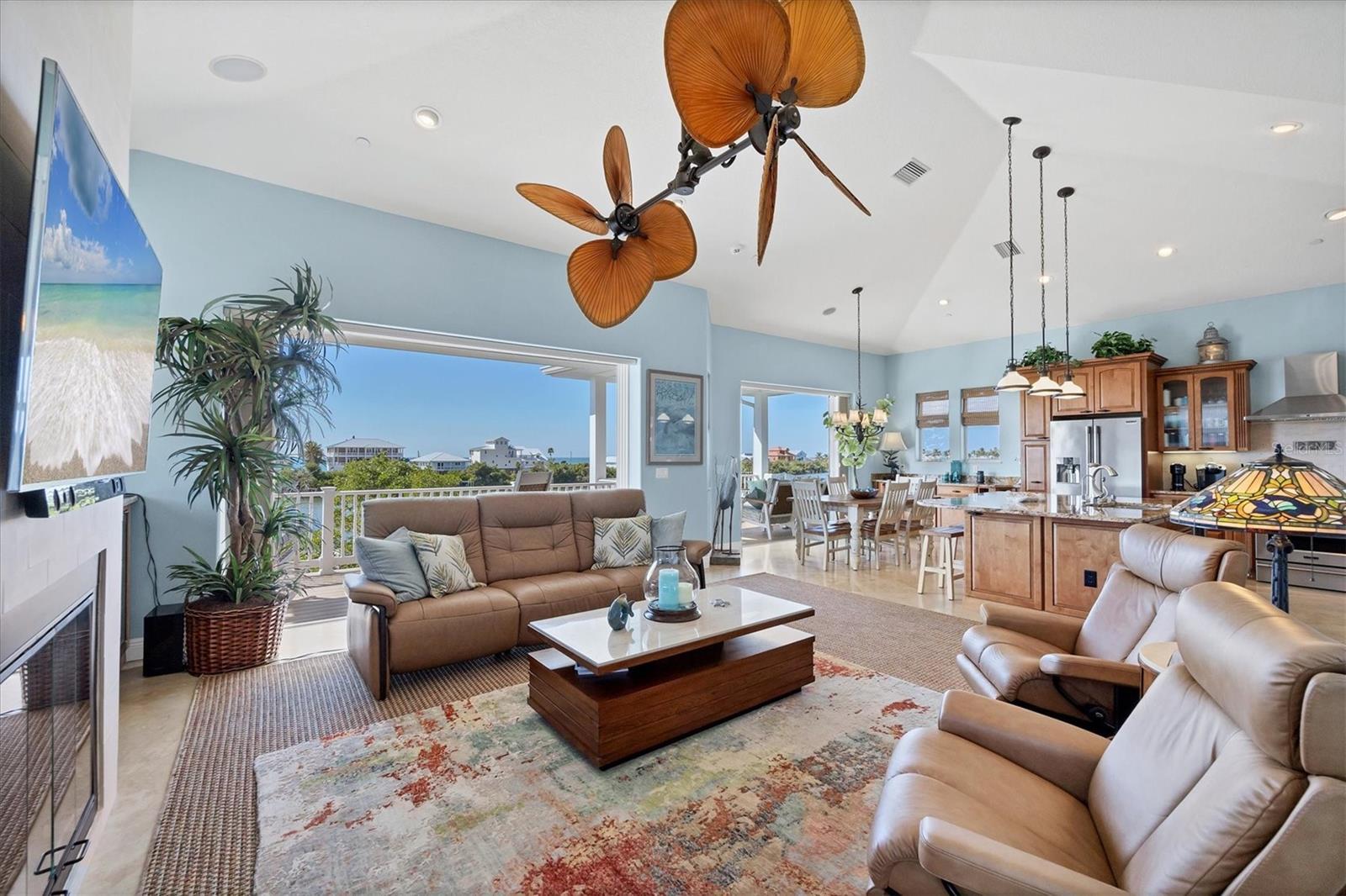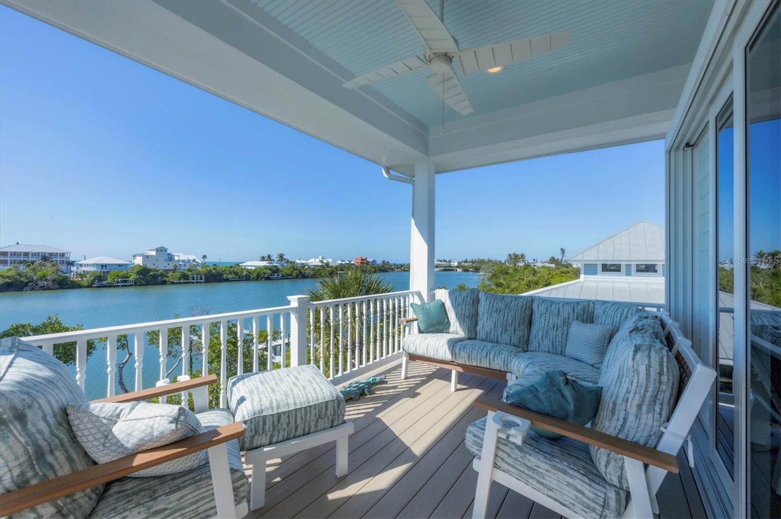 Welcome to Palm/Don Pedro Island. If you've been looking for a resort style living with privacy, you've just found it on this double lot (1/2 acre) with 160' of water frontage located on Bocilla Lagoon. This beautiful 2008 constructed home offers 3 bedrooms, an office/den, 3 full and one ½ baths, with an elevator to all 3 floors. Top floor consists of a kitchen, dining room, living room, office and a 1/2 bath. This level has all travertine floors, volume ceilings and gas fireplace with easy access to top floor open balcony, which offers full lagoon views and partial Gulf views for those beautiful Florida sunsets. Half of the second floor facing the water is a huge primary on suite and a primary bathroom which was updated in 2024, with two custom walk-in closets and access to a screened lanai. The other half consists of two bedrooms, one being waterside, with access to a screened lanai and share a Jack and Jill bath. This floor also offers a wet bar. The home is equipped with PGT Impact Windows, Concrete Siding and Soffits plus a 22 kw Generac Whole House Generator with 500-gallon underground tank (new in 2020), Kinetico Reverse Osmosis Water Filtration & Water Softener Systems, plus many other features and highlights. There is an attached 24’x14’ garage with A/C under the home along with a separate 34’x22’ garage/shop designed for more than just parking your car. Not only would this be great for car enthusiasts, it would make an excellent art studio or even enough space for a golf simulator. Enjoy your private courtyard pool and lanai area with full lagoon views. As an added bonus, there is pool side office/spare bedroom and a outdoor shower/bathroom. All outside decks, dock and fishing pier are constructed of composite decking. The dock offers 2 - 10,000# boat lifts and the fishing pier has kayak storage. Come live the island lifestyle.