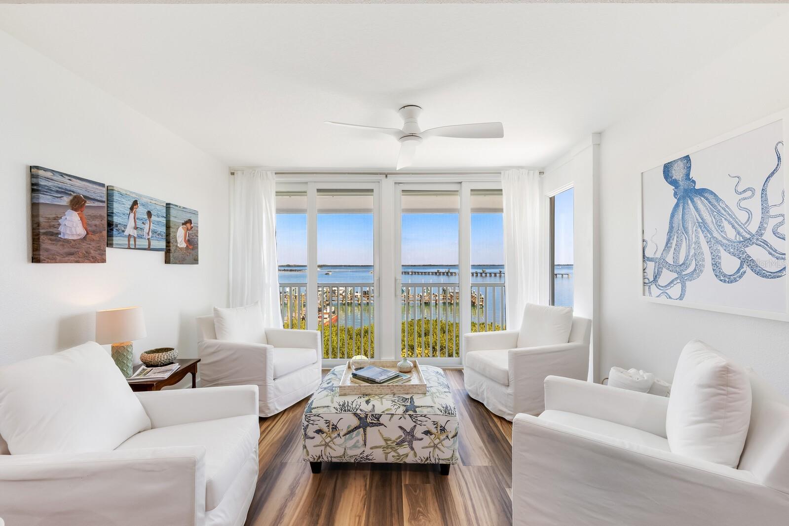 Modern Coastal Luxury with Panoramic Water Views - Turnkey and Reimagined Enjoy coastal living and spectacular sunrises from this fully rebuilt, top floor end condominium at Boca Grande North! Perfectly positioned between the Gulf of America / Mexico and Charlotte Harbor, A-12 offers breathtaking water views from every room, gentle breezes, and the relaxed elegance that defines Boca Grande. This 2 bedroom, 2 bathroom residence was taken down to the studs and completely reengineered with all-new electrical, premium materials, redesigned living spaces. This includes an enclosed lanai for added square footage, and a second seating area/home office with one of the best views on the island. While all buildings feature new roofs, siding, impact windows, spray insulation, and other upgrades; this unit’s owners went far beyond, offering a level of quality and modernization which was built to impress. The kitchen and bathrooms were thoughtfully redesigned, a closet was added, the laundry was relocated for easier living, and every finish was selected for durability and coastal sophistication. The result is a truly turnkey home that surpasses other listings in the community in both design and renovation scope. With stunning landscaping, Boca Grande North is a gated, dog-friendly community with a heated pool/spa, tennis/pickleball courts, clubhouse, gym, unit outdoor storage closet and access to dockage. This unit is priced to sell this season, as the owners simply need more space. Whether you’re seeking a seasonal escape or an investment property, this unit checks all the boxes. Contact me today for a private showing and start your journey into island living!