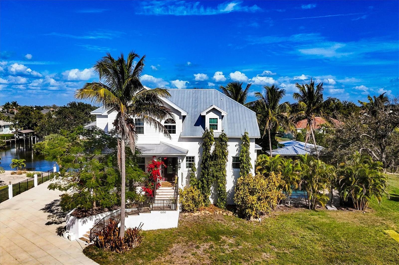 Experience unparalleled coastal living in this 2019 custom-built concrete estate. Situated on a premier half-acre cul-de-sac lot, this residence boasts 170 feet of private water frontage and a state-of-the-art 2020 boathouse. Featuring two 8,000-lb lifts, your gateway to Coral Creek, the ICW, and the Gulf is right in your backyard. Inside, discover over 4,000 sq. ft. of refined living space (8,053 sq. ft. total) accessible by a private elevator. The main level is an entertainer’s dream, featuring 20-foot ceilings, bamboo flooring, and a chef’s kitchen equipped with an 6-burner gas range and custom cabinetry. Retract the sliders to a spacious screened deck to enjoy the salt air or retreat to the second-level den with its own private water-facing lanai. Covered slips with 8,000lb lifts. Concrete construction with all impact windows, sliders, and doors. Metal roof, and stained Cyprus soffits. South side heated pool with spa for all day sun! Spacious 12x31 screened and tiled floor overlooking the water. 3 Bay garage with expansive enclosed storage for cars and water toys! Minutes to Boca Grande beaches, multiple golf courses, the 7 mile Pioneer Trail and world class fishing! Adjacent lot 10060 Creekside Dr, is also available as a separate purchase.