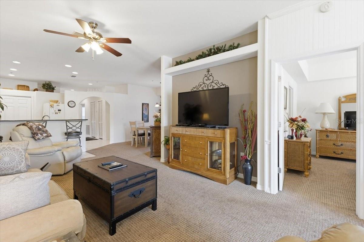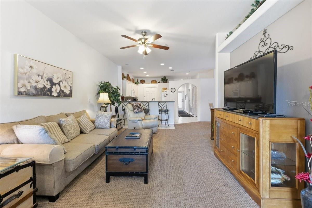 - Ceiling Fans(s), High Ceilings, Kitchen/Family Room Combo, Primary Bedroom Main Floor, Solid Surface Counters, Split Bedroom, Walk-In Closet(s), Window Treatments