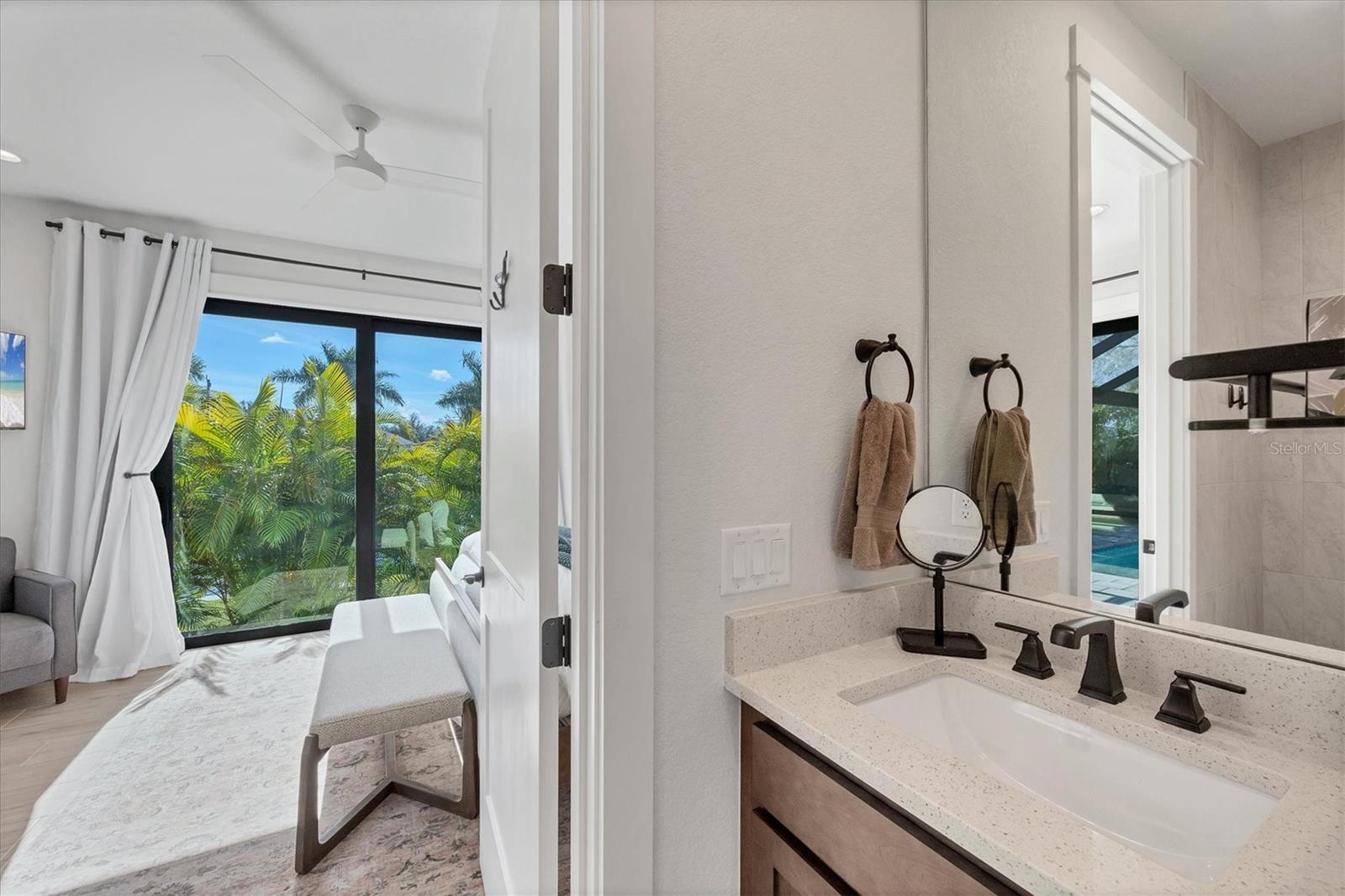 Completed in 2023, this custom DM Dean waterfront canal-front residence presents a refined yet inviting interpretation of Florida coastal living, thoughtfully enhanced well beyond its original build. Purchased new from the builder, the home has since undergone over $200,000 in curated upgrades, including extensive landscaping, outdoor living enhancements, and high-end finishes, resulting in a level of quality and completeness rarely found in new construction. Upon entry, the home opens into a light-filled great room where coffered ceilings, and expansive 90-degree sliding glass doors frame tranquil canal views and create a seamless connection between indoor and outdoor spaces. The kitchen anchors the main living area with a striking waterfall-edge granite island, abundant cabinetry, and open sightlines designed for both everyday living and entertaining. The primary suite serves as a private retreat, featuring coffered ceilings and a spa-inspired en-suite with dual vanities and a walk-through tiled shower with dual shower heads. A secondary full suite offers exceptional flexibility, complete with a private bedroom, en-suite bath, and walk-in closet, ideal for extended guest stays or multigenerational living. A separate den with its own additional A/C zone provides adaptable space for a home office, media room, or quiet escape. Outdoor living takes center stage on the screened lanai, where a cypress wood ceiling adds warmth and architectural depth. The resort-style setting includes a heated pool with sun shelf and integrated spa, complemented by an outdoor kitchen equipped with commercial-quality appliances, including a high-performance grill, power burner suitable for seafood boils or wok cooking that doubles as a griddle, and a powerful exhaust hood. Expansive mature landscaping enhances privacy and visual appeal, while the seawall adds long-term functionality and value along the canal. Foam insulation and modern construction contribute to comfort, efficiency, and durability. An adjacent lot is also under the same ownership and available separately, offering a rare opportunity to expand. The additional parcel provides canal frontage and flexibility for future use, whether for a detached garage or barn to accommodate boats and recreational equipment, a pickleball court, or other customized amenities. The canal frontage also allows for potential seawall expansion or the option to maintain a sloped edge for easy kayak and paddleboard access. Located within close proximity to Manasota Key, Englewood Beach, and Boca Grande, the property offers convenient access to Gulf beaches, waterfront dining, boating, and fishing. This residence delivers a carefully curated balance of contemporary design, privacy, and elevated coastal living, enhanced by thoughtful post-construction investment that distinguishes it from standard new builds.