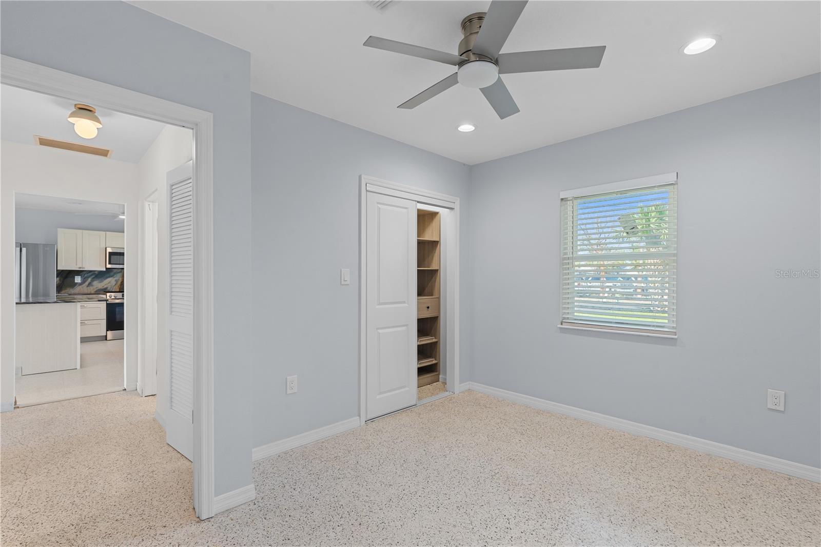 - Ceiling Fans(s), Eat-in Kitchen, Primary Bedroom Main Floor, Solid Surface Counters, Solid Wood Cabinets, Split Bedroom, Stone Counters, Thermostat