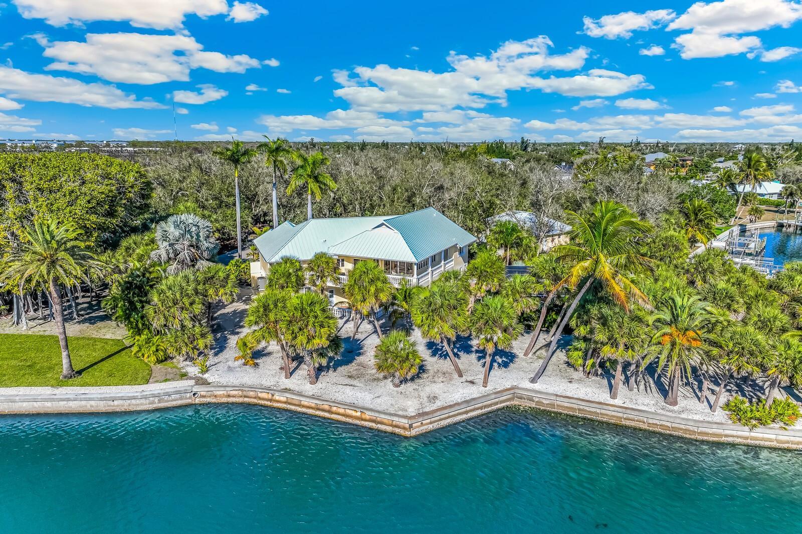 Behind a gated, palm-lined drive, this custom Cape Haze estate unfolds across two expansive parcels totaling 2.62 acres, offering an uncommon sense of scale, privacy, and direct waterfront access on Lemon Bay. Built by J & J Homes for the builder himself, the residence reflects a level of craftsmanship and material integrity rarely found in the market. The main living level is organized around a light-filled great room, where a wood-lined cathedral ceiling and custom built-ins frame uninterrupted views of the bay. Walls of glass open to a covered veranda, creating a seamless connection between interior spaces and the surrounding landscape. The kitchen is both refined and functional, appointed with custom wood cabinetry, granite countertops, under-cabinet lighting, a hand-painted sink, copper range hood, KitchenAid appliances, and a Sub-Zero refrigerator. A breakfast nook enhance everyday ease, while a formal dining room with crown molding and a sculptural niche is designed for more considered gatherings. The primary suite is positioned as a private retreat, featuring a double tray ceiling with layered crown molding, an expansive walk-in closet supplemented by two additional closets, and a spa-like bath with an extended granite vanity, gold-plated fixtures, a walk-in shower, and a Jacuzzi soaking tub. A dedicated office with leaded glass French doors and custom built-in cabinetry offers a quiet, purposeful workspace. A guest suite with water views, balcony access, and an adjacent marble-appointed bath provides comfort and privacy for visitors. A well-placed powder room and a thoughtfully designed laundry room complete the main level. Outdoors, a heated screened pool and spa overlook Lemon Bay, accompanied by a convenient half bath. The property’s 530 feet of concrete seawall supports exceptional boating infrastructure, including a 16,000-pound lift, a separate 10,000-pound covered lift, Trex dock, fishing station with water and electric, and a dedicated launch for kayaks and paddleboards. Deep-water access to the Intracoastal Waterway is immediate, with Don Pedro Island State Park just across the lagoon. Additional features include zoned HVAC, tankless water heater, new electrical panel, an attached side-entry three-plus-car garage, and a 1,500+ square foot air-conditioned detached garage and workshop with epoxy flooring. A composed and enduring waterfront estate, defined by craftsmanship, privacy, and a rare depth of waterfront presence.