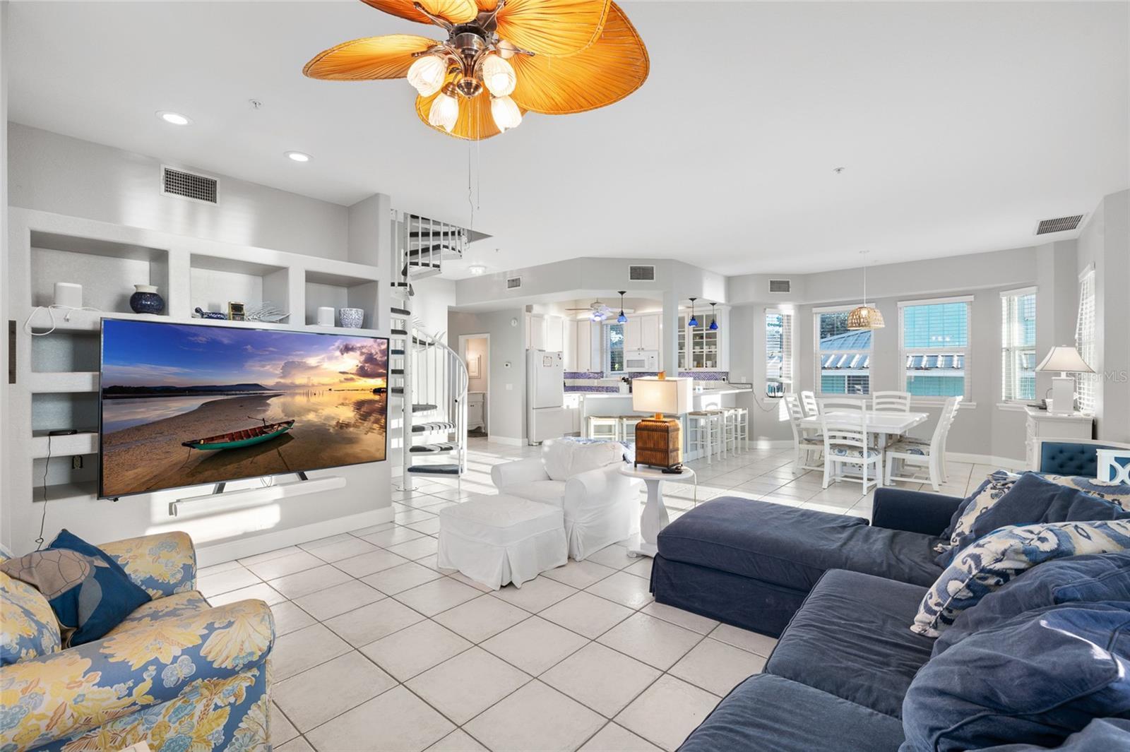 - Ceiling Fans(s), Central Vaccum, Dumbwaiter, Kitchen/Family Room Combo, Living Room/Dining Room Combo, PrimaryBedroom Upstairs, Solid Surface Counters, Vaulted Ceiling(s), Walk-In Closet(s)