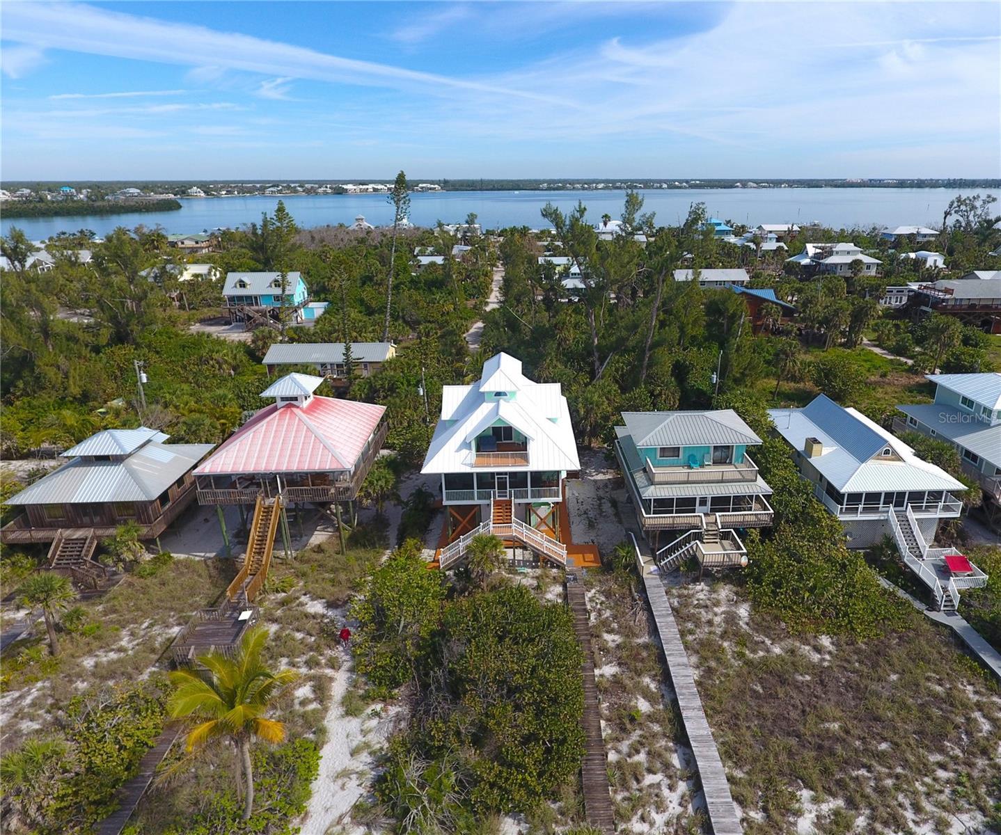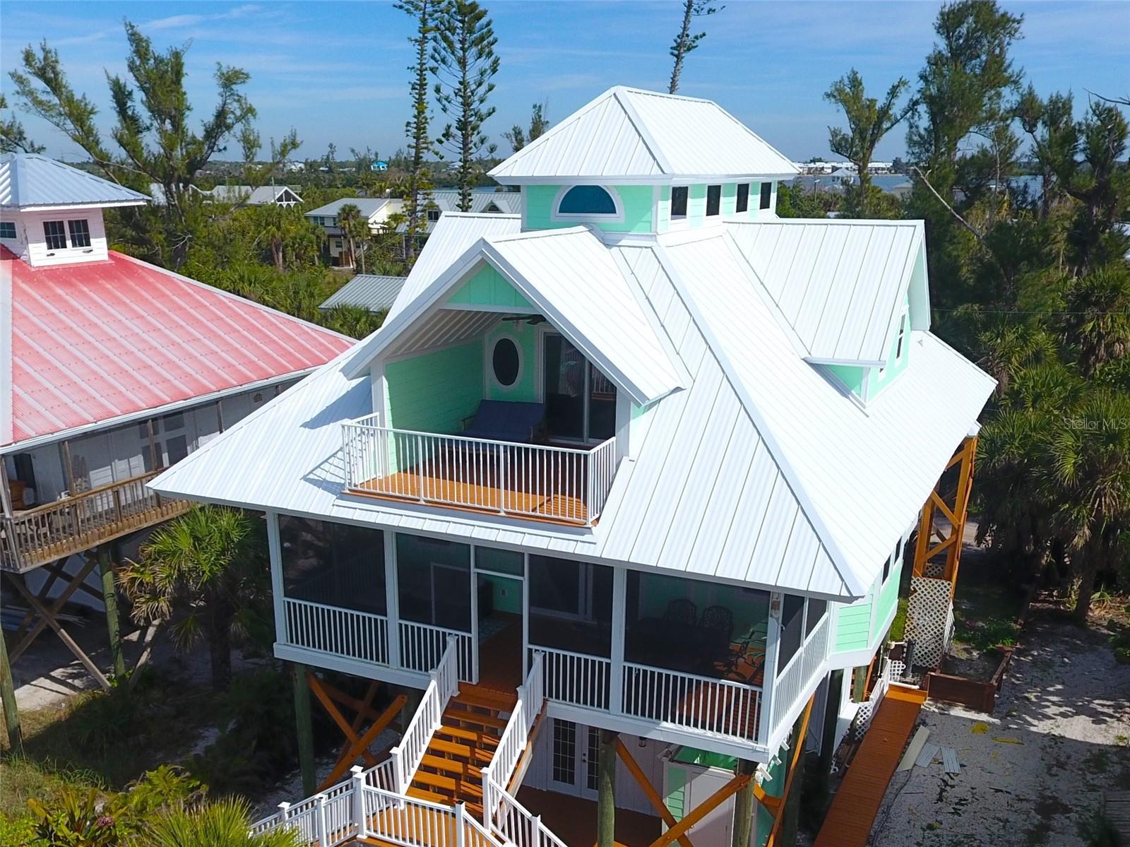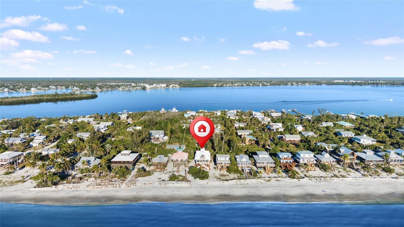 This beautiful gulf front home, located on Little Gasparilla Island, features a custom coastal design, with stunning views and a relaxing atmosphere. Little Gasparilla Island, a bridgeless barrier island off the Cape Haze peninsula, is accessible only by private boat or water taxi only. LGI has a peaceful and friendly atmosphere, with no shops, restaurants, or car traffic. Residents enjoy sandy trails, and lush tropical foliage. Every detail of this home has been carefully considered, creating a lovely living space that combines comfort and style. The metal roof, Hardie board siding and trim, Hardie soffit, and Hardie ceiling in the lanai were installed in 2023, along with impact windows and doors installed throughout the home, ensuring durability and safety. A full list of updated features is available upon request. On the first floor, you'll find a guest bathroom and bedroom, a laundry room, a kitchen, a living room, a dining room, and a large screened-in lanai. The kitchen is thoughtfully designed for those who love to cook and entertain, flowing seamlessly into the dining and living areas. The new windows and sliding glass door offer breathtaking views of the gulf and allow plenty of natural light to fill the space. During spring and fall, opening the windows and doors invites refreshing tropical breezes throughout the home. The spacious screened-in front lanai and the master bedroom balcony are perfect spots to sip your morning coffee or simply relax while watching dolphins and manatees swim by during the day. In the evening, you can enjoy spectacular sunsets over the gulf. On the second floor, the primary bedroom boasts two walk-in closets and an en-suite bathroom with a tub/shower combo, and a walk-in shower, and a double vanity. Each morning starts with a breathtaking view of the water from your bed. The second bedroom, also on the second floor, includes two rooms that make the most of the roof design, serving as storage space and an additional sleeping area. The home is equipped with two central vacuum units, one upstairs and one downstairs. Beneath the home is a storage area for keeping a golf cart, tools, fishing tackle, and beach toys. You can enjoy walking the beautiful 3 ½ miles of beach in search of perfect shells and shark’s teeth, or fishing for redfish, snook, snapper, and more in the surrounding waters. This well-kept beachfront home offers a unique opportunity to enjoy the coastal lifestyle. Once you visit and experience its charm and comfort, you'll never want to leave.
