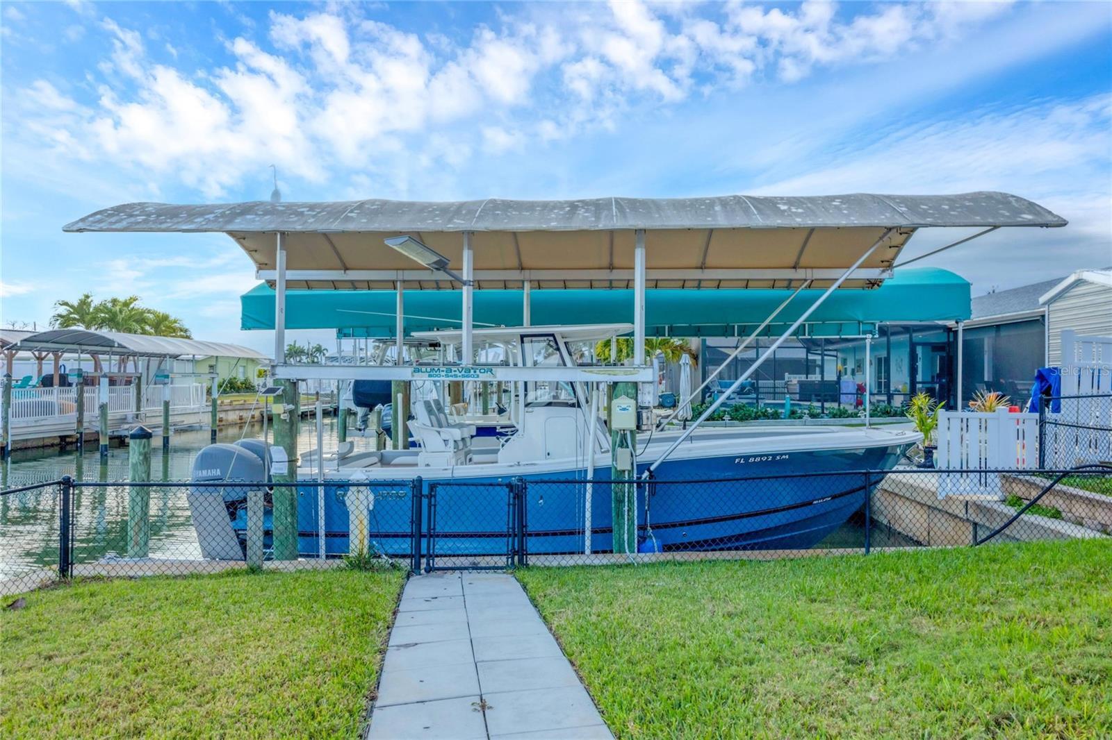 Waterfront living at its finest! This beautifully maintained three bedroom, two bath home has never flooded in any local hurricanes, offering peace of mind along with exceptional coastal lifestyle appeal. The home features, new roof, new water heater, and impact rated windows throughout for an added protection and efficiency. Inside, you’ll find fresh paint, durable and stylish tile flooring, elegant plantation shutters, and solid surface countertops in the kitchen, perfect for both everyday living and entertaining. Step outside to your private retreat, featuring an elevated pool (9.5 ft) with the relaxing waterfall, complete with a new pool pump, creating a true resort style atmosphere. The property is fully equipped with the lawn irrigation, keeping the landscaping lush year-round. The home comes with furniture negotiable, making this an easy move-in opportunity or ideal turnkey investment. Boaters will love the 10,000 pound boat lift with a brand new cover, providing direct access from your backyard. The 25 foot 2020 Regulator Center Console with twin 250s is also available as an optional purchase, making this a rare opportunity for a complete boating package. Situated on a scenic canal with direct access to Lemon Bay, you’re just a short, no-bridge ride to the Gulf of Mexico. Offering world-class fishing, boating, and stunning Coastal Waters. Don’t miss this exceptional waterfront opportunity. Schedule your private showing today!