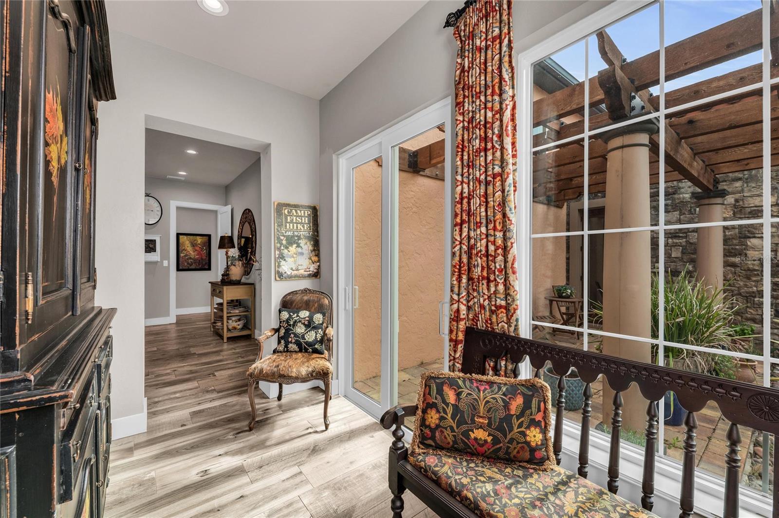 - Courtyard, Dog Run, Hurricane Shutters, Lighting, Other, Outdoor Shower, Permeable Paving, Private Entrance, Rain Gutters, Sidewalk, Sliding Doors, Sprinkler Metered