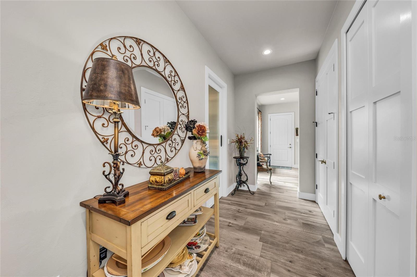 Tucked away within the deed-restricted, secluded enclave of Herons Cove, this exceptional estate offers refined waterfront living amid 4.13 acres of pristine native landscaping. Encompassing 4,976 square feet, the residence is thoughtfully designed to balance luxury, privacy, and functionality, with four bedrooms and three bathrooms crafted to the highest standards. A private boat dock with a 10,000-lb electric boat lift and canopy provides effortless access from the Peace River to Charlotte Harbor, while the meticulously maintained grounds feature a full irrigation system and landscape lighting, creating a serene ambiance day and night. Peace of mind is ensured with a whole-home generator supported by a 500-gallon underground gas tank, hurricane impact windows and sliding glass doors, and an electric hurricane shutter protecting the double front entry featuring gas lantern lighting. The exterior is complemented by a paver driveway leading to a three-car garage with tile and metal roof. The third garage bay includes air-conditioned holiday storage and an additional climate-controlled room, ideal for specialty storage or flexible use. At the heart of the home, the gourmet kitchen is a chef’s dream, featuring a Wolf six-burner gas range, double ovens, a Wolf built-in microwave, and an extra-large Sub-Zero refrigerator. An expansive granite center island with prep sink and abundant under-counter cabinetry anchors the space, while a large pantry offers shelving, custom cabinets, a wine refrigerator, and a built-in wine rack. Adjacent living areas are warmed by a gas fireplace, creating an inviting atmosphere for both everyday living and entertaining. The private owner’s suite on the main floor is a true retreat, offering separate his-and-hers custom walk-in closets and a designer master bath with a spacious walk-in shower, separate soaking tub, and dual custom vanities. Throughout the home, custom draperies and wood louver blinds add a timeless elegance. Outdoors, a custom saltwater pool completes this remarkable estate, providing a resort-style setting surrounded by natural beauty. This rare Herons Cove property delivers exceptional craftsmanship, thoughtful amenities, and unparalleled privacy—an extraordinary opportunity to experience elevated waterfront living.