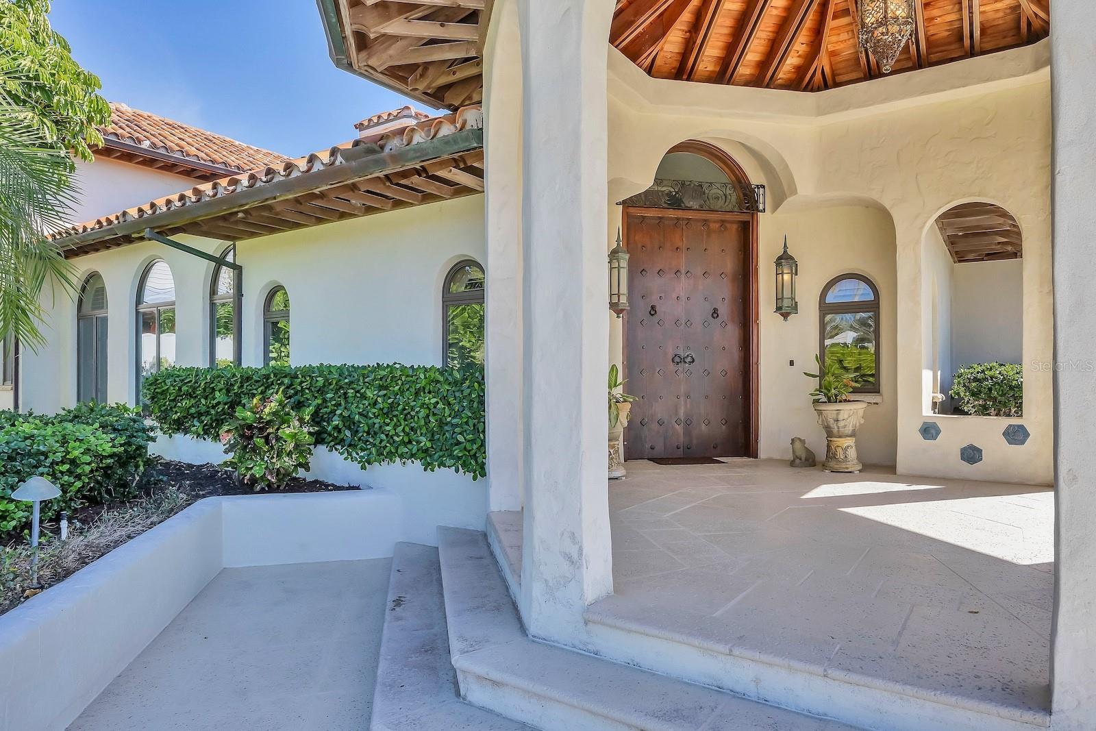 Rarely available and in a prime location, this majestic distinctive Mediterranean 4-bedroom, 5-bath, 2-half-bath waterfront home offers an opportunity to own a remarkable estate with striking character and serenity. Sitting on .88 acres along the deepwater Boca Grande Bayou. This residence is introduced by a two-gate entry on a circular driveway with a tranquil fountain and tropical landscaping. This 4,435+ square foot residence captures the essence of timeless architecture with a design that transcends throughout an atmosphere for a warm welcoming. Custom built in 1993, with Spanish barrel tile roof, the front entry showcases a large stunning covered turret style portico with custom double mahogany doors leading to a dramatic two-story foyer. The grand living area anchored by a double-sided fireplace, offers cypress wood beam ceiling, arched windows with inside shutters, rich finishes, and superior craftsmanship. Triple sets of French doors overlook the custom designed pool and bayou. The main living area presents a formal dining room, wet bar, and office. The primary suite forms a private wing, a spacious family room, and office. The kitchen is centrally located, offering ample storage, built in counter seating with an opening to the living room. The upper level is ascended by a custom designed spiral staircase accessing the three en-suite guest bedrooms offering comfort and privacy with multiple open terraces and walkways. The ground level is enhanced by indoor/outdoor wrap around shelled walkways connecting to multi-level spaces and storage. Water enthusiasts will enjoy the deepwater dock, covered boat slip with lift, a small floating dock for kayak launching and direct access to the Intracoastal Waterway. Car collectors will appreciate the garage space underneath the main living area. Built to withstand the elements, this home features a rare drive-in garage and full basement with a proven track record of resilience to past hurricanes. This exceptional estate combines architectural beauty and an enviable waterfront setting.
