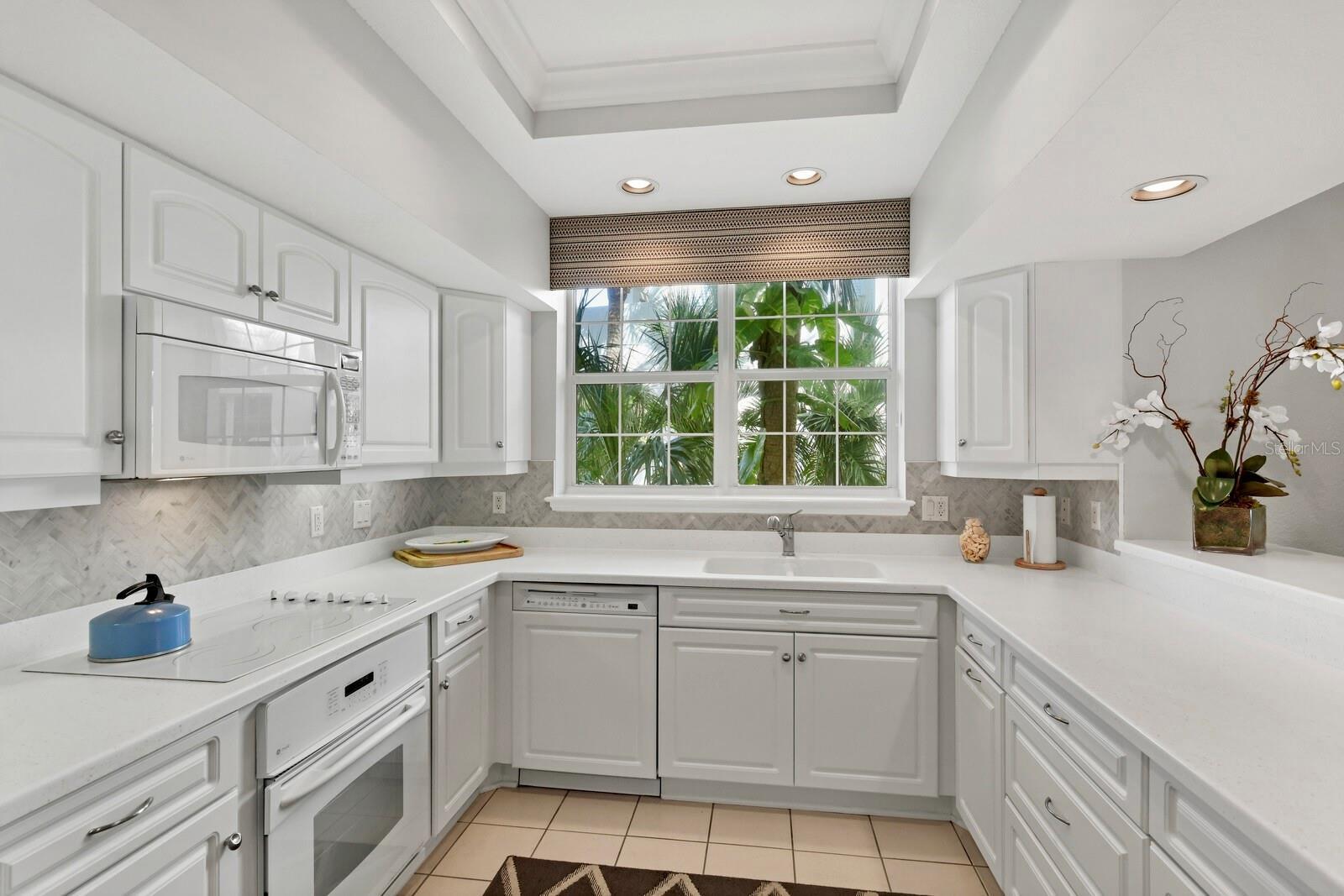 Enjoy serene bayside living in this beautifully appointed 3-bedroom, 2-bath Harborside condominium in Boca Bay. Framed by lush natural surroundings, the spacious screened lanai offers a front-row seat to tranquil water views and coastal wildlife, an ideal setting for morning coffee or sunset unwinding. The interior blends classic elegance with thoughtful craftsmanship, featuring generous ceiling heights, custom millwork, and charming glass transoms above interior doors. Plantation shutters adorn the windows, complementing the impact glass windows and doors throughout the residence. Designed for ease and comfort, revel in the convenience of single-level living, complemented by the inclusion of a private garage, a separate storage room, and effortless elevator access—offering the epitome of a 'lock the door and leave' bayside retreat. Just outside your door, Boca Bay’s resort-style amenities invite you to relax and recharge. Enjoy multiple community pools, a bayside beach, and a fishing pier only steps away. The private Gulf-front Boca Bay Pass Club offers beachfront dining in an exceptional setting, while seven Har-Tru tennis courts and a fully equipped fitness center support an active island lifestyle.
