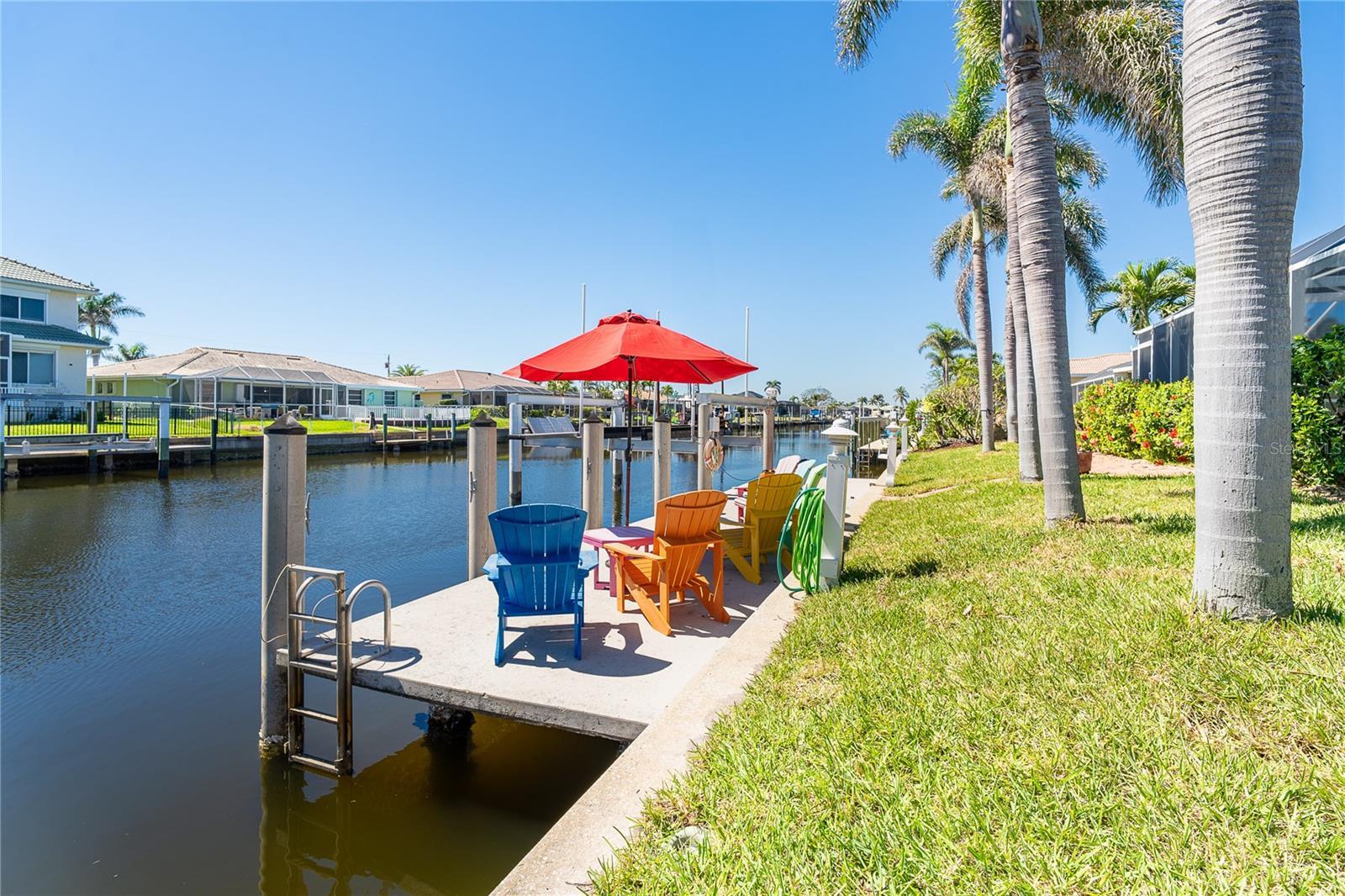 Welcome to Your Waterfront Sanctuary! Must see to appreciate this exquisite, quick access canal-front home which is a masterpiece of luxury, comfort, and coastal elegance. Completely remodeled in 2007 to meet modern building codes, this home seamlessly blends timeless charm with contemporary upgrades. From the moment you arrive, the meticulously landscaped grounds and circular paver driveway set the stage for the beauty that lies within. Step inside to discover a bright and spacious open floor plan bathed in natural light, creating an inviting and airy ambiance. The expansive living area flows effortlessly into the lanai, where indoor-outdoor living comes to life. Beyond the sparkling pool, the tranquil canal awaits your private gateway to Charlotte Harbor and the tropical waters of The Gulf. Designed for both style and functionality, the kitchen boasts premium KraftMaid maple cabinetry with custom built-ins, striking granite countertops and an oversized breakfast bar-perfect for casual dining and entertaining. This thoughtfully designed home features three spacious bedrooms, plus a versatile flex room ideal as a den, home office, or fourth bedroom with an ensuite, enclosed by elegant double hardwood pocket doors. With three well-appointed bathrooms, every space is crafted for both comfort and convenience. Outdoor enthusiasts will love the professionally built 10’ x 45’ Concrete Dock, constructed on Concrete Pilings and equipped with a 24,000-lb Golden boat lift, Shore Power, Water, Dock Lighting and three MAC-CAP lighting power pedestals—ideal for larger boats and deep-water use. Additional upgrades include a new Decra Villa tile roof (2024), seamless gutters (2024), Interior and Exterior Paint (2025), Pebble Tec Resurfaced Pool (2025), new AC, new Pool Heat Pump (2023), new Pool Filter (2025) and full hurricane protection with Impact Windows, Doors, and Electric Hurricane Shutters for the lanai, providing peace of mind and effortless coastal living. Whether you're relaxing by the pool, entertaining guests, or embarking on a waterfront adventure, this home embodies the best of Florida living in one of SW Florida’s most desirable boating communities. BOATERS, don't miss the opportunity to make this stunning coastal retreat your own.