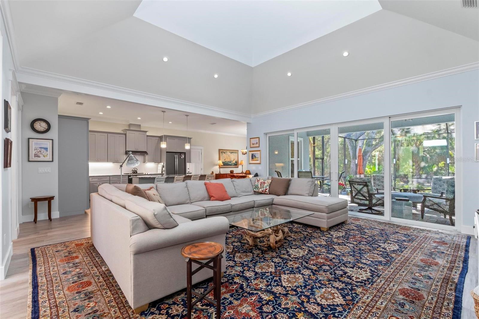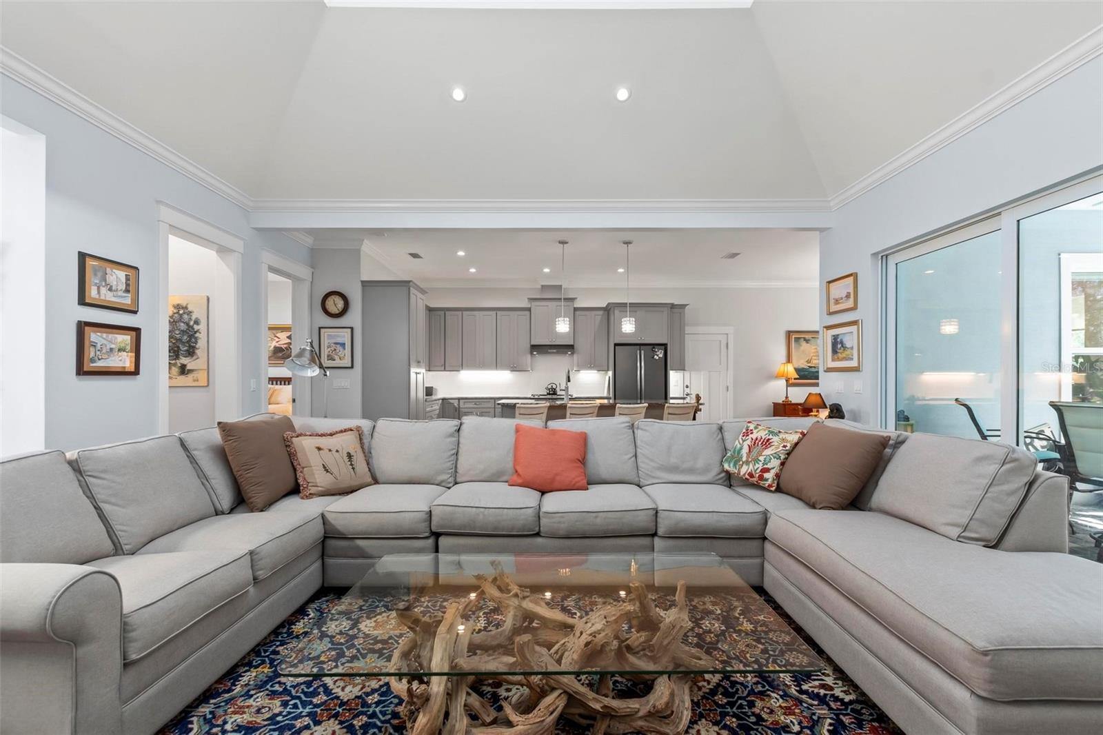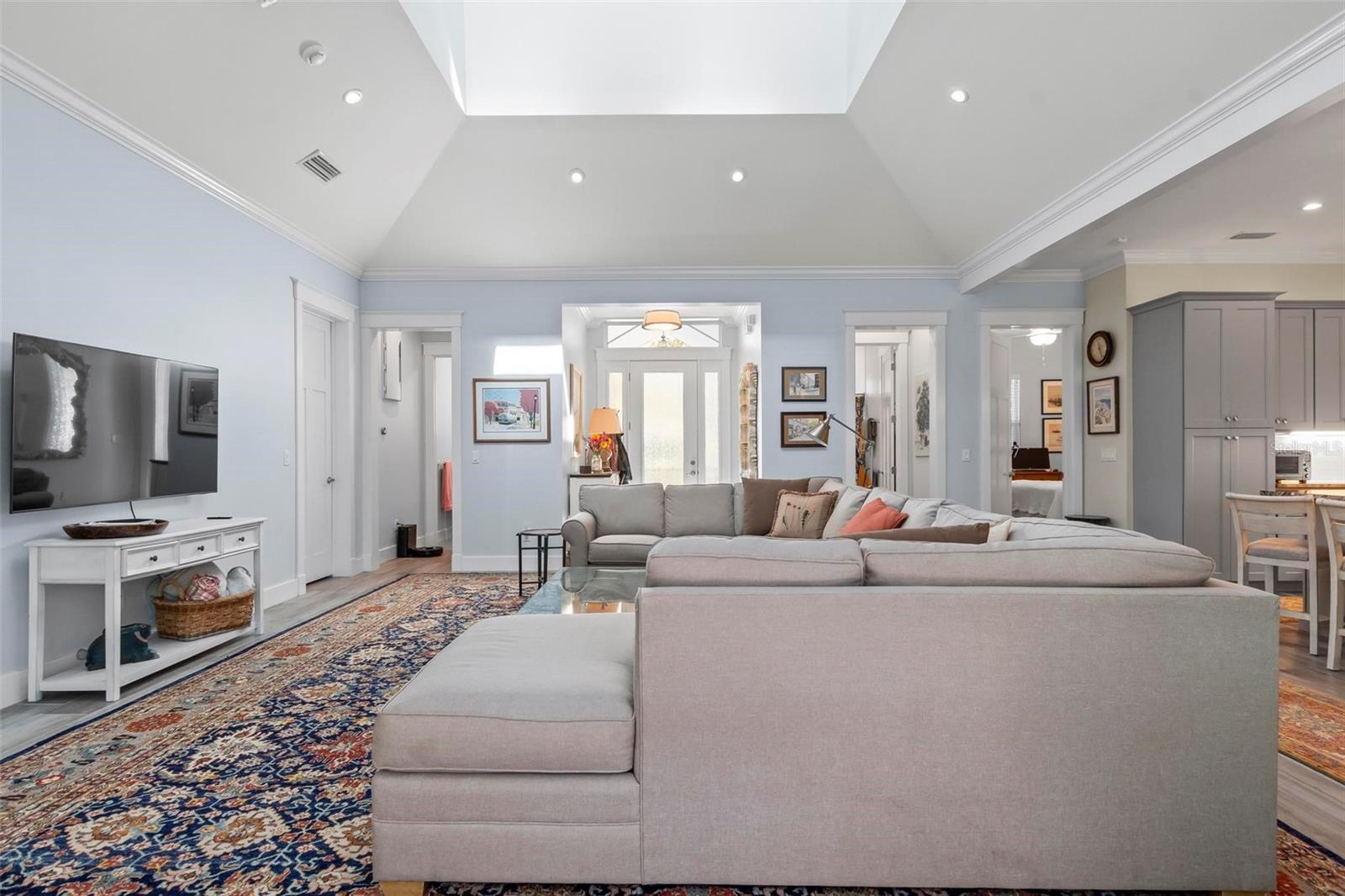 Gorgeous heated, salt water pool home. Nestled in the back of the neighborhood with privacy. Serene setting on oversized lot that backs to wooded privacy with nothing to be built behind it. Block construction home with high impact doors and windows, in a no flood zone. Community has even built a 4 foot stem wall for added protection. Key west style golf cart community with private beach access. 10 foot ceilings with 23 foot cupola in family room that is freshly painted. Home has beautiful outdoor living space overlooking salt water, heated pool with variable speed pool pump, high efficiency. The front of the home has a gated front porch that looks across to open green space that will never be built on. The home is Nest hardwired to every outlet. The oversized two car garage comes with a 300 lb freight elevator to make access to the floored attic that is tall enough to walk around. This is truly a stunning property priced to sell.