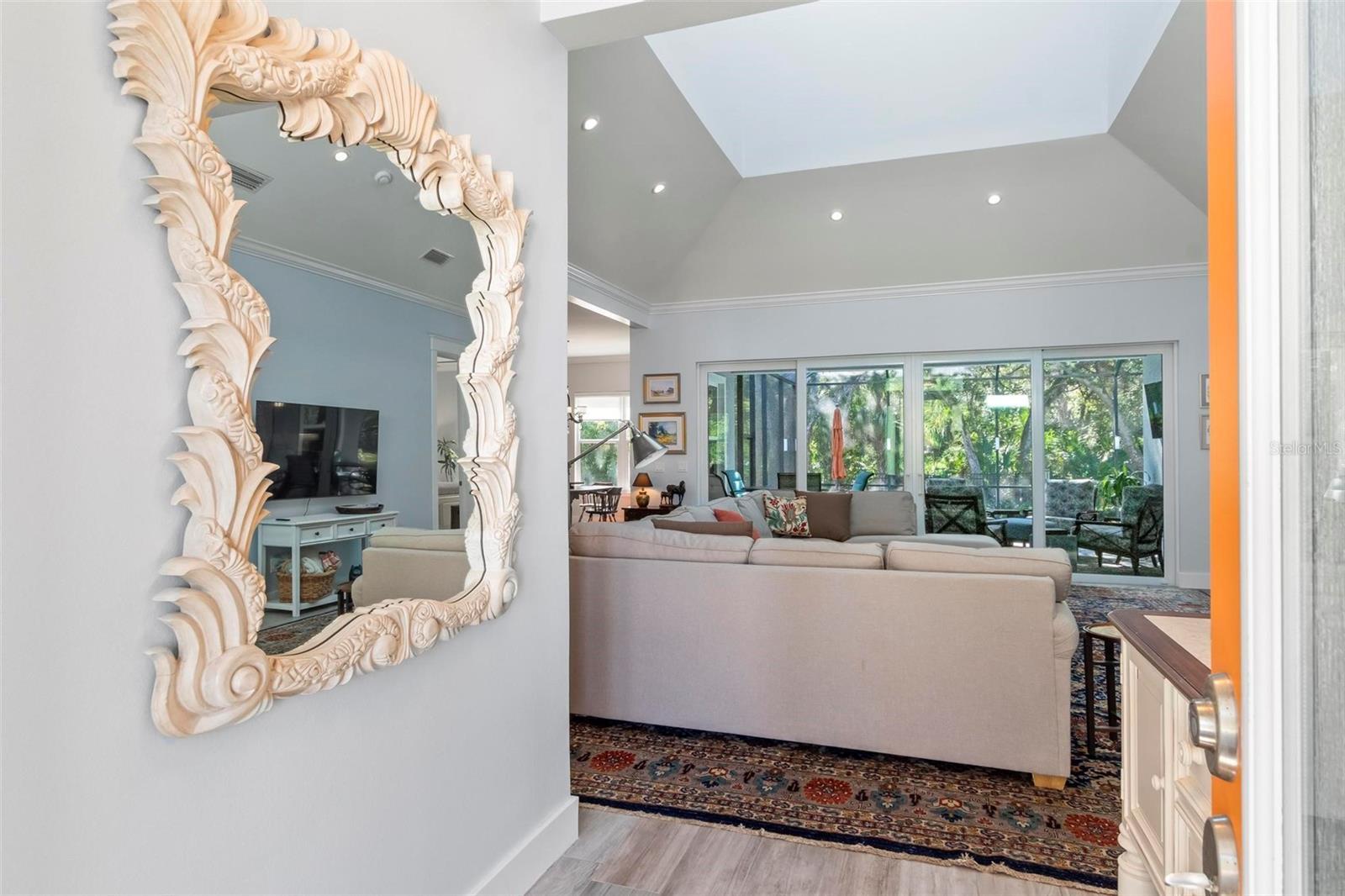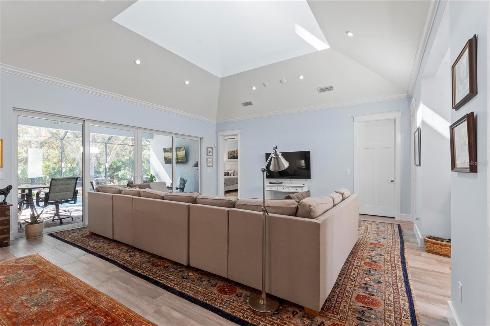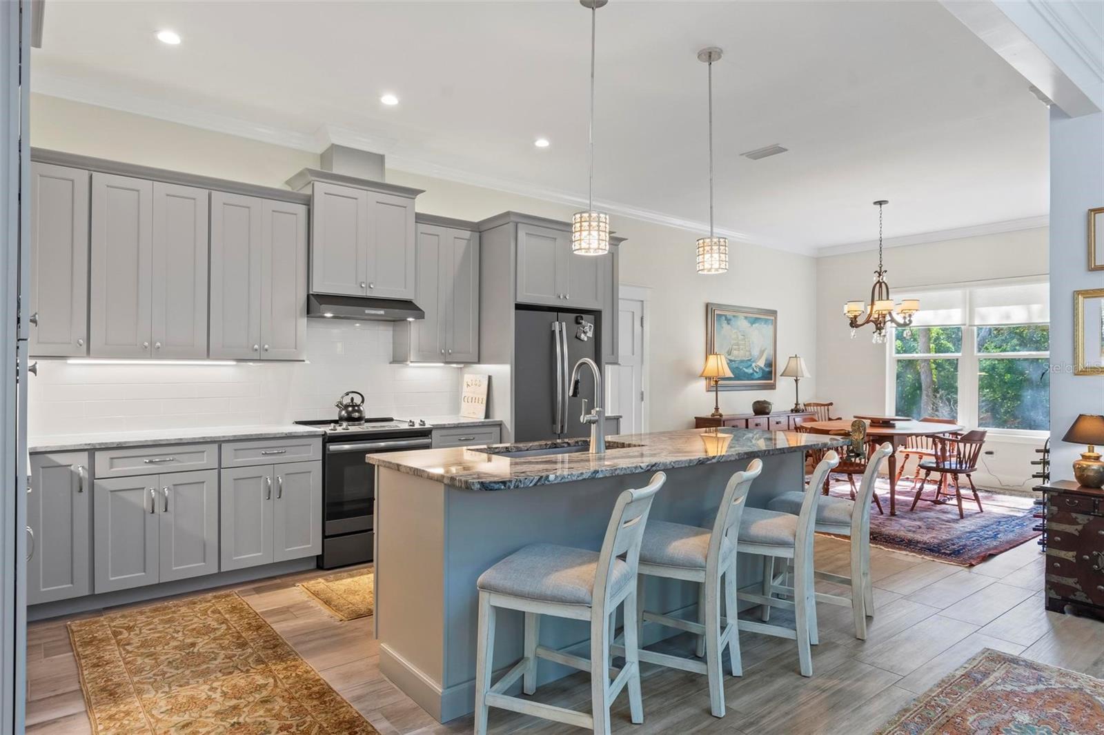 Gorgeous heated, salt water pool home. Nestled in the back of the neighborhood with privacy. Serene setting on oversized lot that backs to wooded privacy with nothing to be built behind it. Block construction home with high impact doors and windows, in a no flood zone. Community has even built a 4 foot stem wall for added protection. Key west style golf cart community with private beach access. 10 foot ceilings with 23 foot cupola in family room that is freshly painted. Home has beautiful outdoor living space overlooking salt water, heated pool with variable speed pool pump, high efficiency. The front of the home has a gated front porch that looks across to open green space that will never be built on. The home is Nest hardwired to every outlet. The oversized two car garage comes with a 300 lb freight elevator to make access to the floored attic that is tall enough to walk around. This is truly a stunning property priced to sell.
