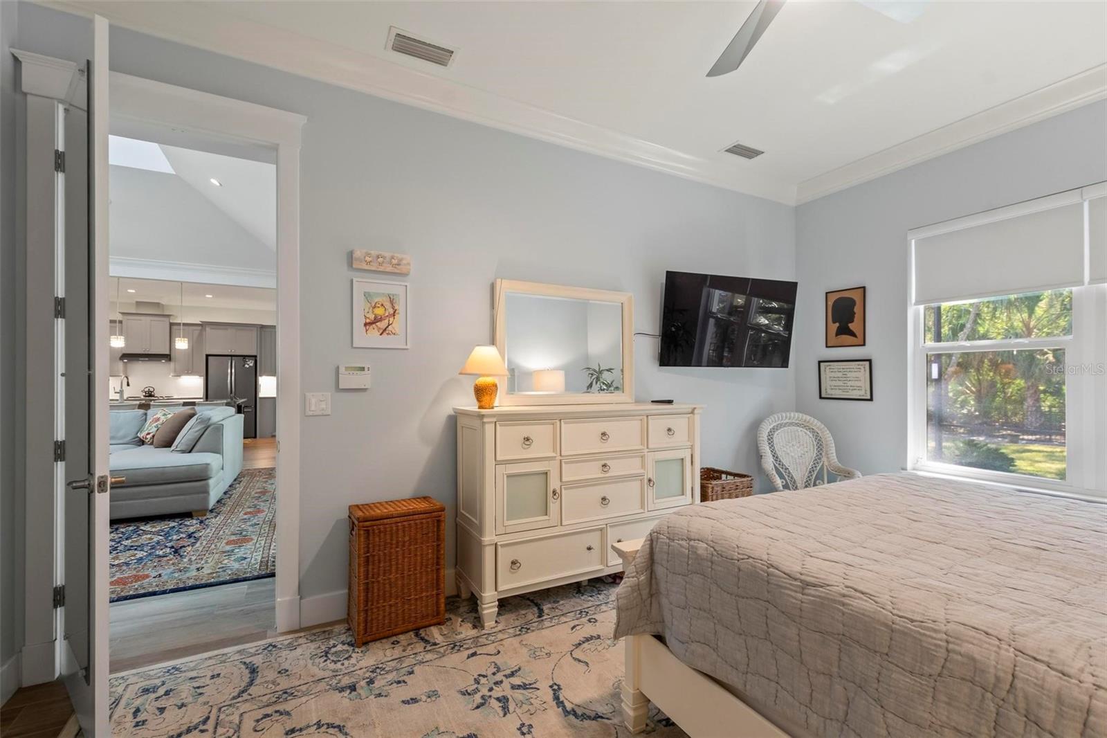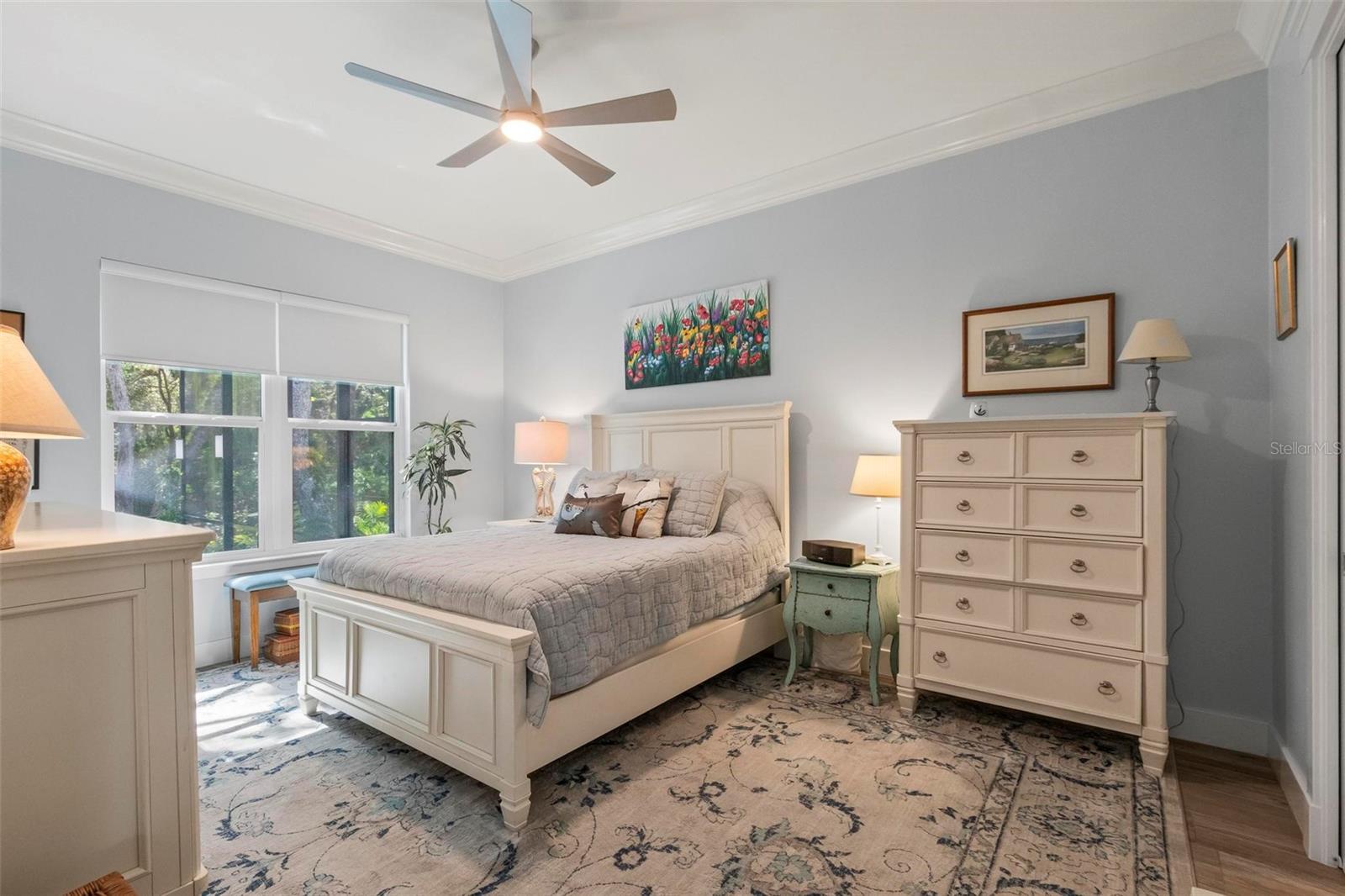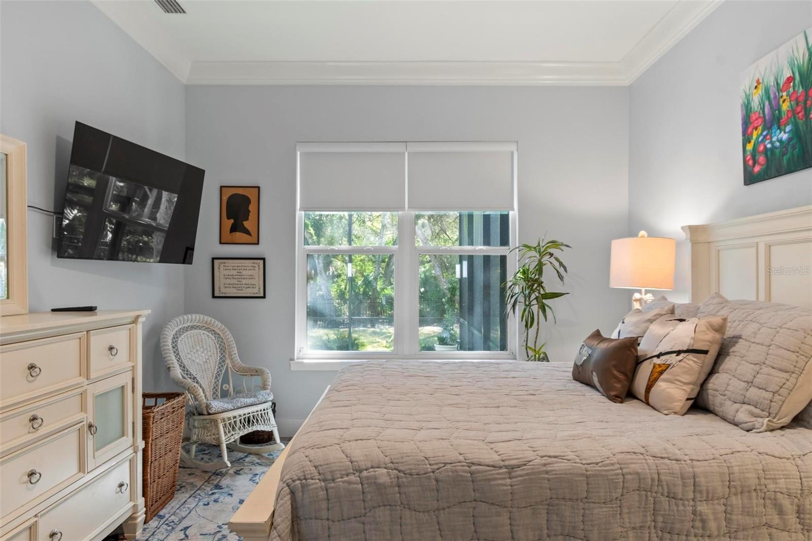 - Ceiling Fans(s), Crown Molding, Eat-in Kitchen, High Ceilings, Kitchen/Family Room Combo, Open Floorplan, Primary Bedroom Main Floor, Smart Home, Stone Counters, Thermostat, Walk-In Closet(s), Window Treatments