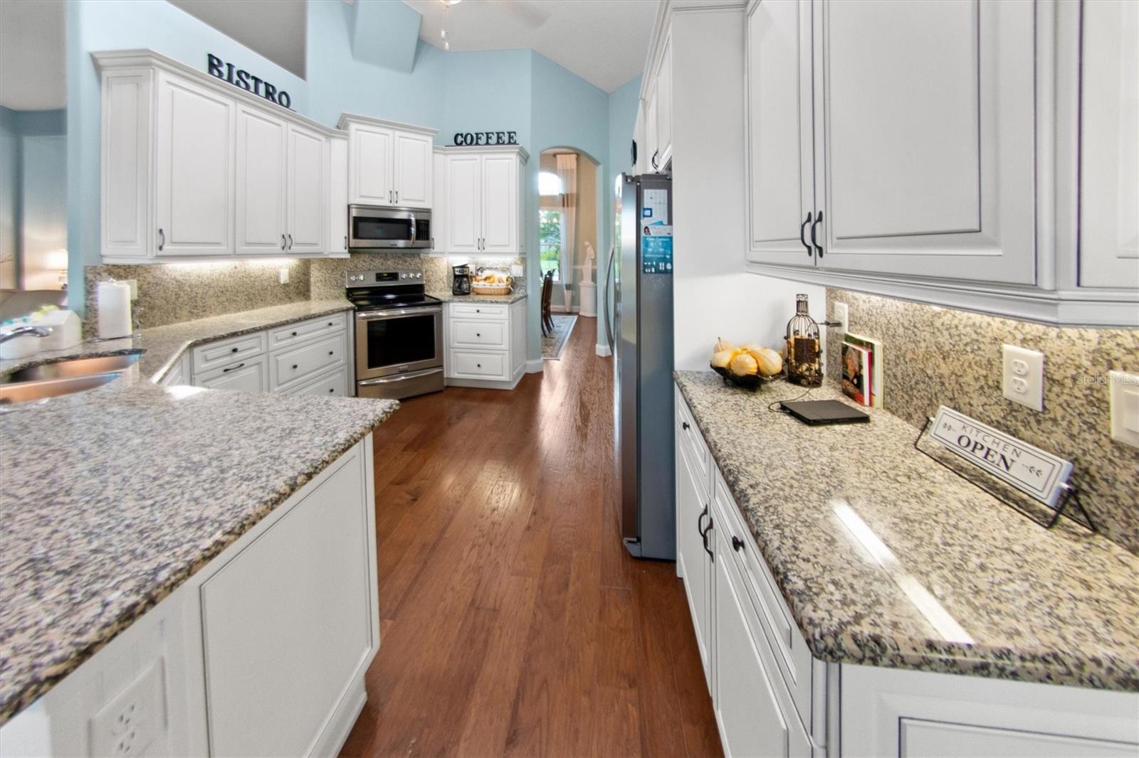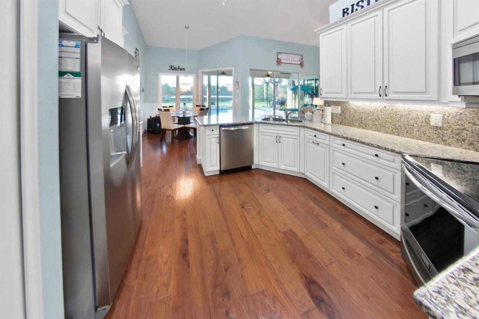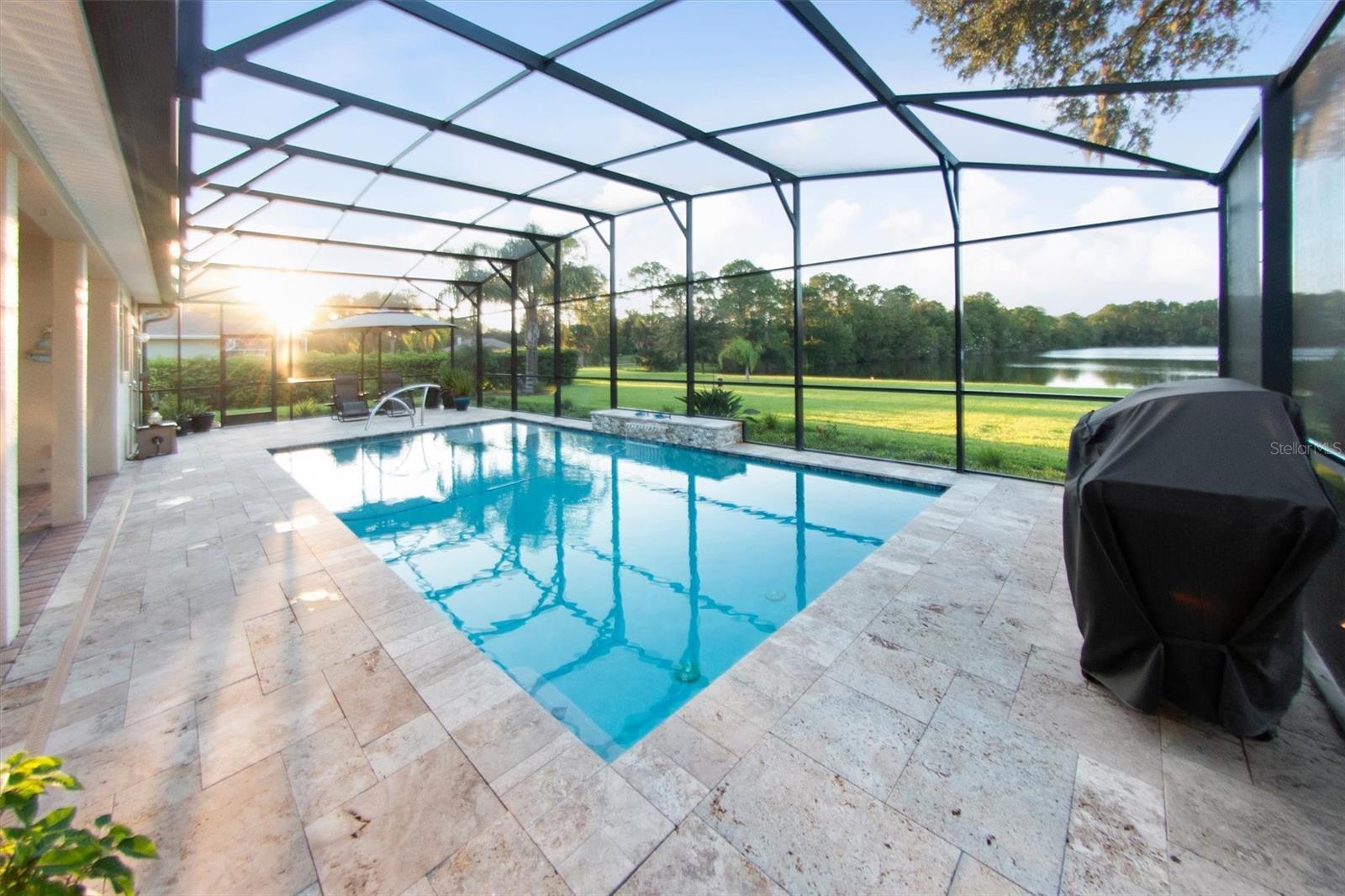 Vanacore Custom Built in 2017 with a tile roof, this beautiful pool home is situated on a lake that backs up to a preserve. From the moment you walk in you will be in love! This home has a breathtaking view of the lake and the pool area. Upgrades floors throughout this 3 bedrooms and 2 baths home, with an open, split floor plan of over 2,400 SQ FT. It has a heated saltwater pool (2019) with LED lighting plus a waterfall overlooking a calming lake. Elevated ceilings throughout, in the Great Room you are welcome by a wood burning fireplace, custom stone counters throughout the home as well. The Lanai in screened in and comes already connected with electricity. Home comes with a water softener system, Smart-Grid water heater, custom blinds and drapes throughout. All wood floors with tile. Did I forget to mention you can walk right outside your back door and instantly go for a ride in your kayak or grab your rod and reel and fish in the lake. Take in the sun and indulge in the oasis. Oversized garage 21 by 20.10.