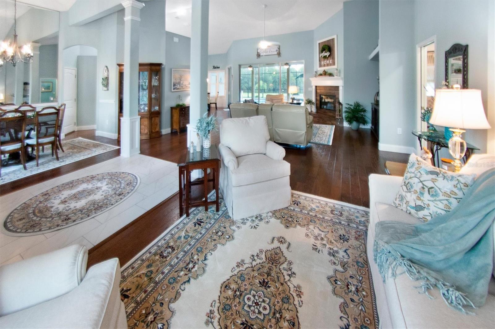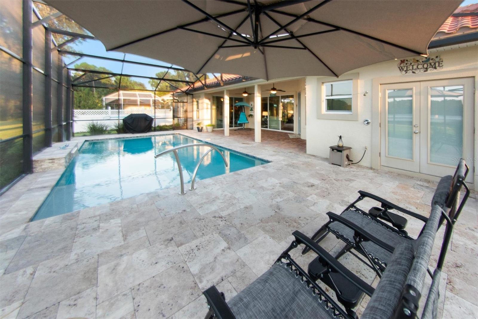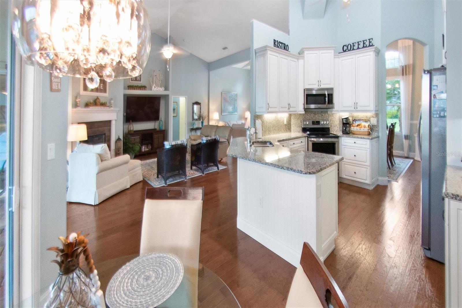 Vanacore Custom Built in 2017 with a tile roof, this beautiful pool home is situated on a lake that backs up to a preserve. From the moment you walk in you will be in love! This home has a breathtaking view of the lake and the pool area. Upgrades floors throughout this 3 bedrooms and 2 baths home, with an open, split floor plan of over 2,400 SQ FT. It has a heated saltwater pool (2019) with LED lighting plus a waterfall overlooking a calming lake. Elevated ceilings throughout, in the Great Room you are welcome by a wood burning fireplace, custom stone counters throughout the home as well. The Lanai in screened in and comes already connected with electricity. Home comes with a water softener system, Smart-Grid water heater, custom blinds and drapes throughout. All wood floors with tile. Did I forget to mention you can walk right outside your back door and instantly go for a ride in your kayak or grab your rod and reel and fish in the lake. Take in the sun and indulge in the oasis. Oversized garage 21 by 20.10.