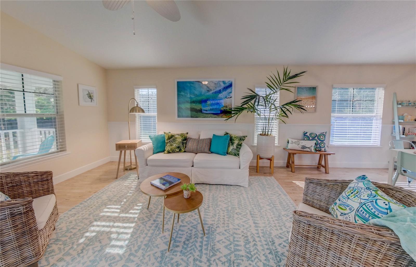 Cozy and newly renovated 3 bedroom, 2 bathroom home with completely fenced front & back yard with new heated in ground pool located in the unique oceanside community of Malacompra @ Hammock in Palm Coast. This charming home is nestled amongst the old oaks, and is located short walking, biking or golf carting distance to the beach and almost across the street from Bing's Landing state park & boat launch. Besides a beautiful sandy beach, there are miles Bike Trails and a park down the road as well as children play ground, basketball, valley ball, pickle ball & tennis courts where you can put your sportsmanship to the test! It is within walking distance to the beach (golf cart is provided for ease of going to the beach) and Bings Landing Marina where you can enjoy fishing, dining, kayaking and launching your boat on the ICW, and more when you are out exploring. You can also bring your RV or Camper there is a parking on the side with electric hook up to 50Amp. Master bedroom has a King Sized bed and in suite master bath. Guest Rooms 1 has a queen sized bed and guest room 2 have 4 twin beds, to sleep 4. This property sleeps 8 people comfortably.